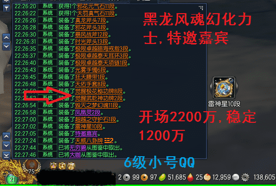 11237,无日峰力士,邪花元气石11段,天罚真气石11段,真龙斧头7段,邪花斧头3段,暴风战斧12段,时光斧头13段,卓越暗海戒指3段,卓越泰天耳环3段,卓越泰天项链1段,光雾手镯6段,狂天腰带1段,天佑手套8段,极花秘功牌8段,武乾神功牌2段,毁灭梦幻魂11段,凤凰灵2段,超越守护石1段,雷神星10段,衣服120件,《黑龙风魂特邀嘉宾》3500R,
