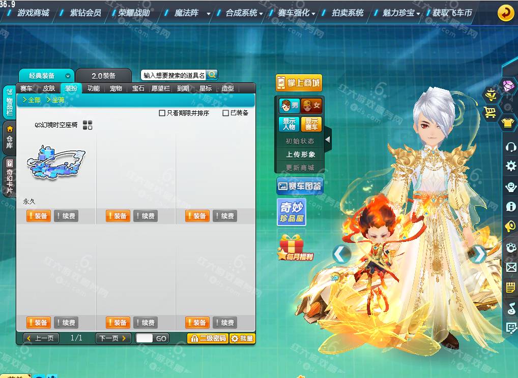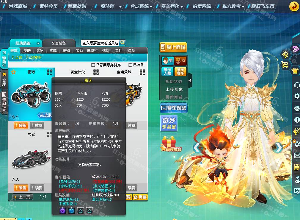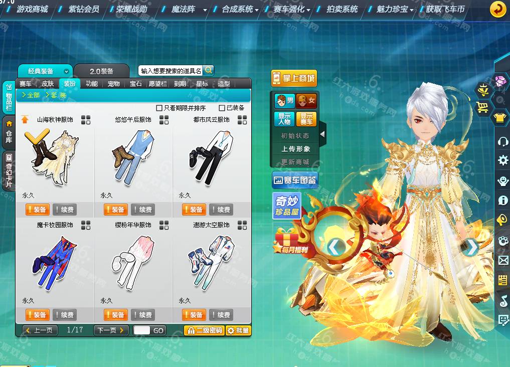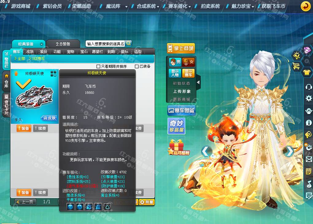 DS3531,红六更号裙762771576【电信一区】,魅力5194,荣誉149w,S车:银天使蓐收,A车*5:单四雷诺幻夜8级+29,骑宠*6:哪吒三太子+6,坐骑*1,套装男17页:山海秋神,套装女8页,1320R,