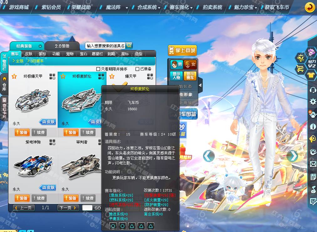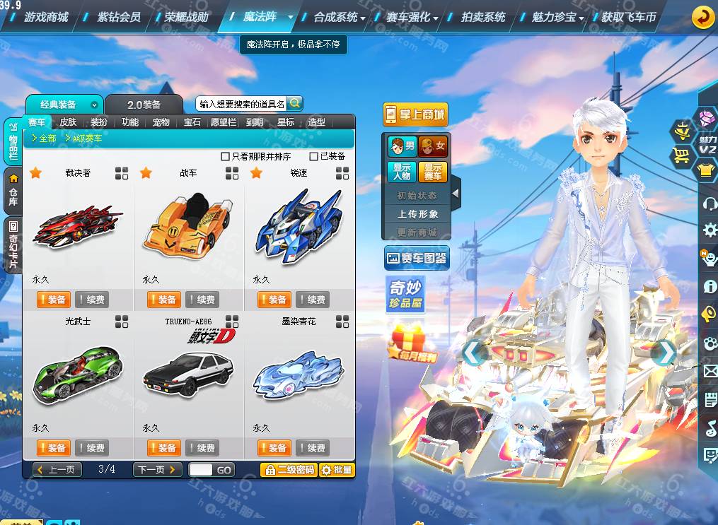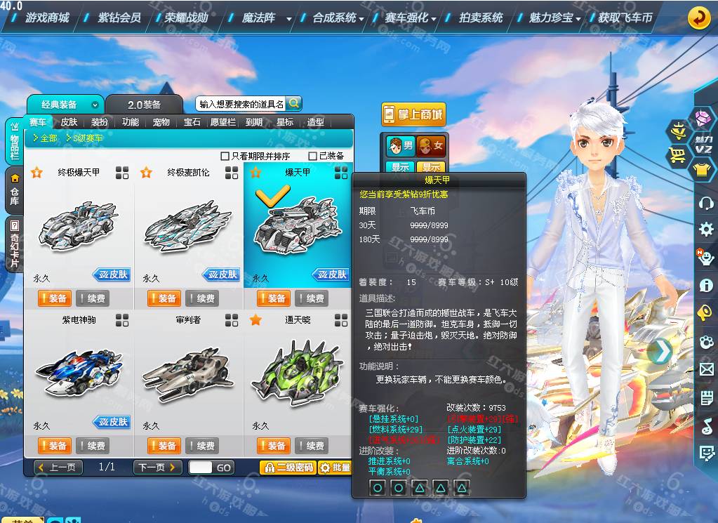 DS3538,红六更号裙762771576【电信一区】魅力3.1W,荣誉106W,紫钻3,皇族4,S车:爆天甲黄忠/奥丁+29,终麦天行10级+29,终极爆天甲刘备,紫电神驹梅,通天晓,审判者,T2:擎天战神,A车*20,T1*3,骑宠*14:幻海之莹+6,坐骑*5,套装男25页:浪漫苏打,套装女10页,5500R,