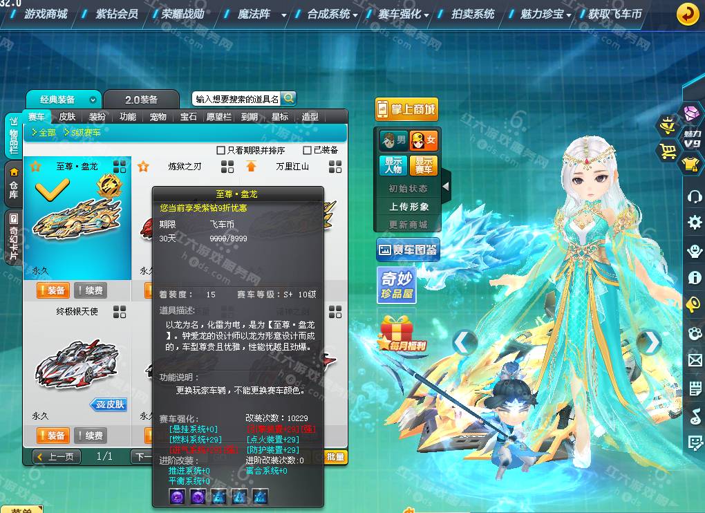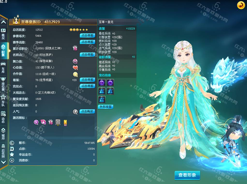 DS1599【电信一区】悬浮:苍穹麒麟/女(皇族精英肩饰/皇族精英手杖)等级149级,魅力1w,荣誉76w,紫钻2级,皇族3级,S车*6:双四至尊盘龙+29,炼狱之刃,万里江山,终极银天使,,终极烈焰新星,诸神之剑,T2:纪元武神,暗黑牛魔王,T1*4,A车*16:天数雷诺,月影,黑骑士等,骑宠*8:小赵云+8,宠物*10,套装男6页,套装女6页,6888R(夺宝碎片还有6000个)
