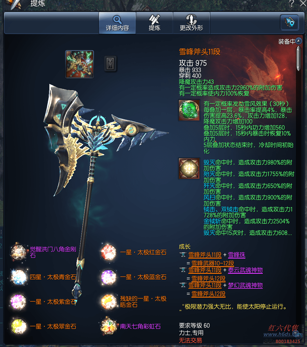 11411,无日峰力士,侠义团119段,四星太极石,一星太极石x4,雪峰元气石15段,征伐真气石15段,雪峰斧头11段,卓越蟠桃戒指3段,卓越邪花耳环3段,卓越邪花项链3段,极凰手镯1段,光雾手镯12段,狂天腰带8段,天佑手套1段,齐天手套12段,极花秘功牌8段,无藏神功牌8段,武乾神功牌8段,毁灭南天魂11段,黄龙灵15段,不灭守护石1段,晨晖星15段,《号主备注:秒伤(起手和稳定):降魔2826 单刷蟠桃园打完2300,全功力橙色功力地光已出,附大量辉石狗粮 630多神秘水 70多本刻印书 细节号)》衣服212件,19000R,