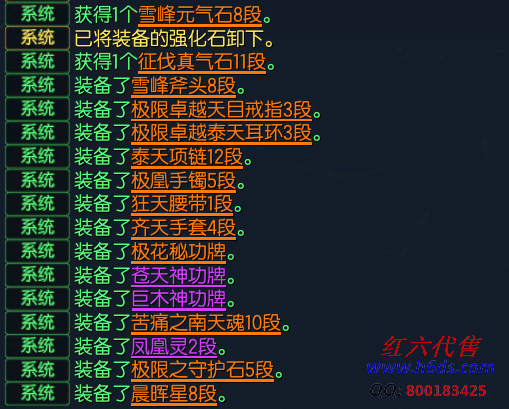 11417,无日峰力士,侠义团71段,雪峰元气石8段,征伐真气石11段,雪峰斧头8段,卓越天目戒指3段,卓越泰天耳环3段,泰天项链12,段,极凰手镯5段,狂天腰带1段,齐天手套4段,极花秘功牌,苍天神功牌,巨木神功牌,苦痛南天魂10段,凤凰灵2段,极限守护石5段,晨晖星8段,衣服47件,《金币材料不送》3000R,