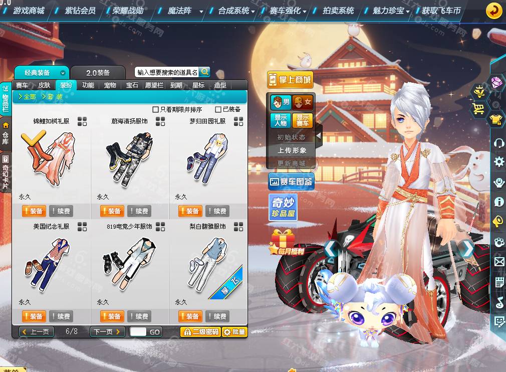 DS2617【电信一区】等级201级,魅力3513,荣誉190W,紫钻4级,A车*2;双四天数雷诺+29,单四赛博销魂+29,T1;双四圣枪+29,宠物*4,骑宠*4;白金神兽+8,坐骑*2,套装男7页,套装女2页,888R,