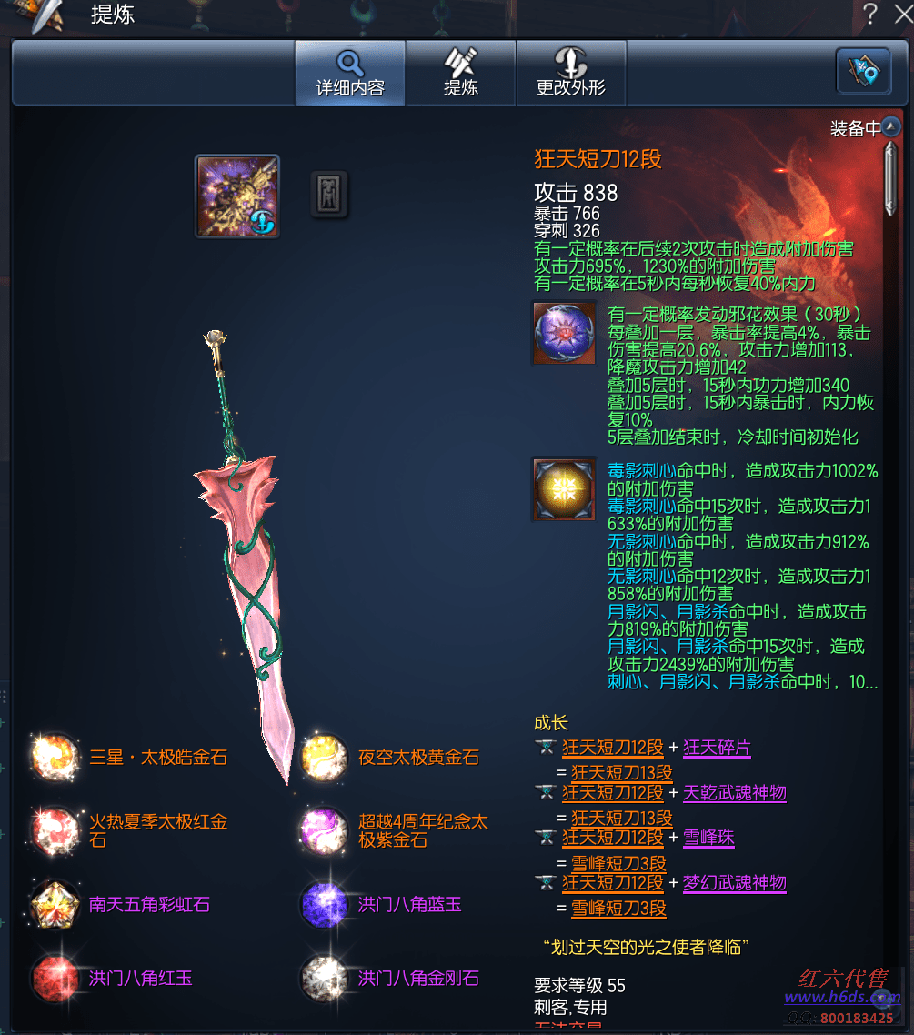 11435,无日峰刺客,侠义团68段,邪花元气石10段,天罚真气石11段,狂天短刀12段,天目戒指1段,卓越暗海戒指3段,卓越泰天耳环3段,卓越泰天项链3段,极凰手镯1段,光雾手镯5段,狂天腰带1段,天佑手套8段,极花秘功牌5段,苍天神功牌,皓火神功牌,毁灭梦幻魂9段,凤凰灵2段,超越守护石1段,晨晖星7段,衣服102件,《起手1850w稳定800w》2500R,