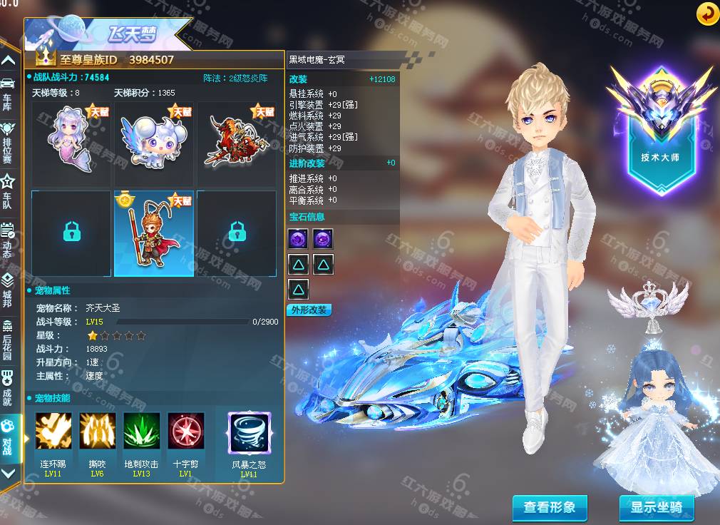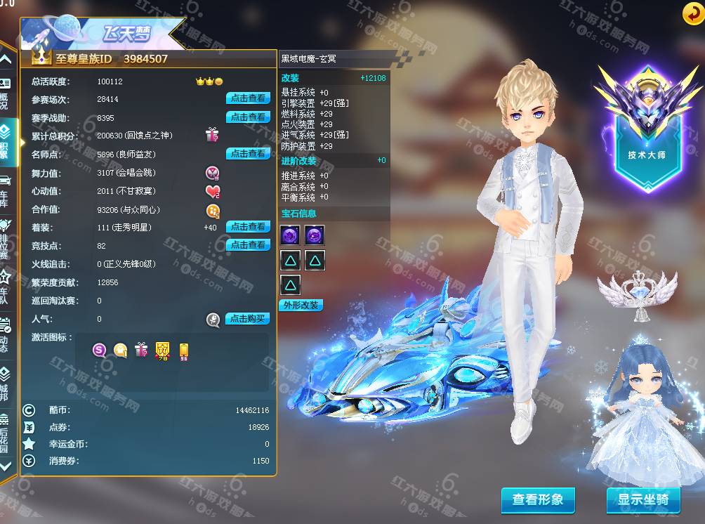 DS3534,红六更号裙777584596【电信一区】,魅力1.9w,荣誉958w,紫钻5级,皇族5级,S车:双四爆天甲+29,双四黑域电魔玄冥+29,终极银天使,A车:蓐收雷诺,天数雷诺,骑宠:雪凝公主+10,小吕布+10,坐骑6个,套装男20页(浮生世语/赤焰战警/罗曼蒂克发饰/山海冬神),套装女12页,(赤焰战警/绘梦天鹅),2000R