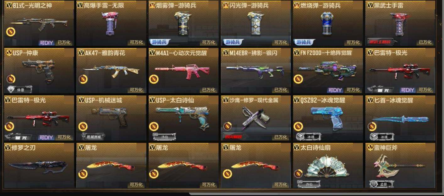 PX_2288943-38苹果Q-V1-113V-101V,SCAR-文远,AWM-妙才,KSG-孟获,81式-光明之神,M4A1-雷神,AK47-火麒麟,王者之心,M4A1-死神,加特林-堡垒,AK47-血武士,AK47-轮回,M4A1-雷神,M4A1-死神,M4A1-机械迷城,M4A1-运输船,M4A1-夏清觉醒,AK47-黑鲨,M4A1-玫瑰精灵,MA41-太白诗仙,SCAR-文远,SCARLight-白虎,AN94-赳赳秦师,XM8-湮灭,FAMAS-湮灭,9A91-诛仙四剑,AK12-天启,QBZ03-金色蔷薇,AWM-天使,AWM-指南神,巴雷特-毁灭