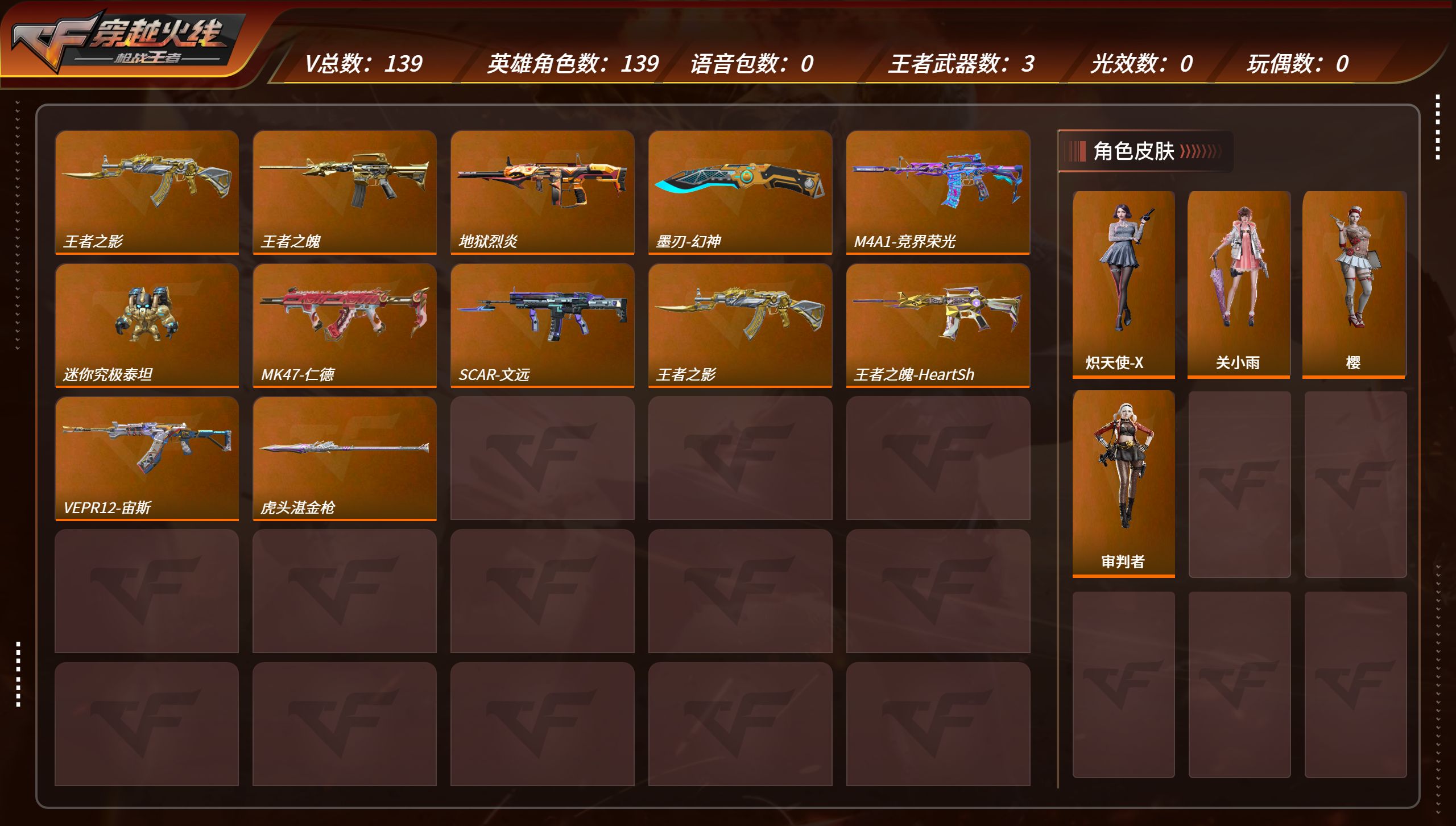 PX_2001397-6【V7/109V/3王者6角色/王魄女团/王影/王翼烟雾/仁德/文远/宙斯/孟获/境界荣光/81光明/冰魂/变色龙/风神翼龙/岚舞/巴雷特枪娘/晴舞】安卓Q-V3-139V-102金V-6角色,关小雨,审判者,炽天使-X,葵,零-新生,樱,王者之影,王者之魄-Hear,王者之翼烟雾弹,KSG-孟获,47-仁德,SCAR-文远,VEPR12-宙斯,M4A1-竞界荣光,AK47-无影-枪皇之影,QBZ03-金色蔷薇,,81式-光明之神-三足金鸟,,AK47-火麒麟-白虎,AK47-火麒麟,,AK47-冰魂,,AK47-樱斗士-一觉,AK47-无影-葵,AK47-变色龙,AK47-泰坦破坏者,AK47-雷麒麟-火锅,AK47-心动次元,AK47-血武士-甲骨文渊,AK47-心动次元,AK47-血武士-甲骨文渊,AK47-华夏传说-起源,AK47-黑鲨,AK47-凤神翼龙,AK47-春雅觉醒,AK47-木兰-霓裳铁骑,AK47-轮回,AK47-塔罗牌觉醒,M4AI-雷神一时空幻境,M4A1-雷神-英雄战甲,M4A1-黑骑士-LGD,M4A1-黑龙-苏城钰,M4A1-死神-能量核心,M4A1-赛博雷神,激光毁灭者,M4A1-海骑士,M4A1-太白诗仙,SCAR-幽暗骑士,SCAR,Light-白虎,SCAR-印刷术觉醒,AN94-赳赳秦师,,M14EBR-天神,MI6-恶魔,47-机械纪元,47-鼓龙,G3A3-五色琉璃觉醒-千变,QBZ97-岚舞-千变,巴雷特-毁灭-RGB骇客,巴雷特-极光-重型机甲,巴雷特-枪娘,巴雷特-冬灭觉醒,M200-心动次元觉醒,09式狙-天神,左轮-竞界荣光-蜂鸟,柯尔特-仲达,USP-神罚,,USP-机械迷城,USP-仁德,USP-太白诗仙,沙鹰-修罗,沙鹰-神兵修罗,沙鹰-宇航兔免,蟒蛇-火力竞放觉醒,改装GL0CK-木兰,墨刃-幻神,蝴蝶刀-天神,尼泊尔-竟界荣光,龙啸-魔神,手斧-机械迷城,秋逸觉醒,太白诗仙扇,星芒,麒麟剌-堕天神,鹰爪-谜城虹光觉醒,马来剑-毁灭,马来剑-毁灭-不屈老兵,马来剑-毁灭-暗月,虎头湛金枪,雷霆权杖-宙斯,擎天觉醒-能量核心,丛林匕首-火力竞放觉醒,迷你究极泰坦,地狱火,地狱烈炎,地狱烈樱·一觉,地狱烈·二觉,毁灭征服者-超越Max,AA12-火药,AA12-火药觉醒,KSG-火力竞放