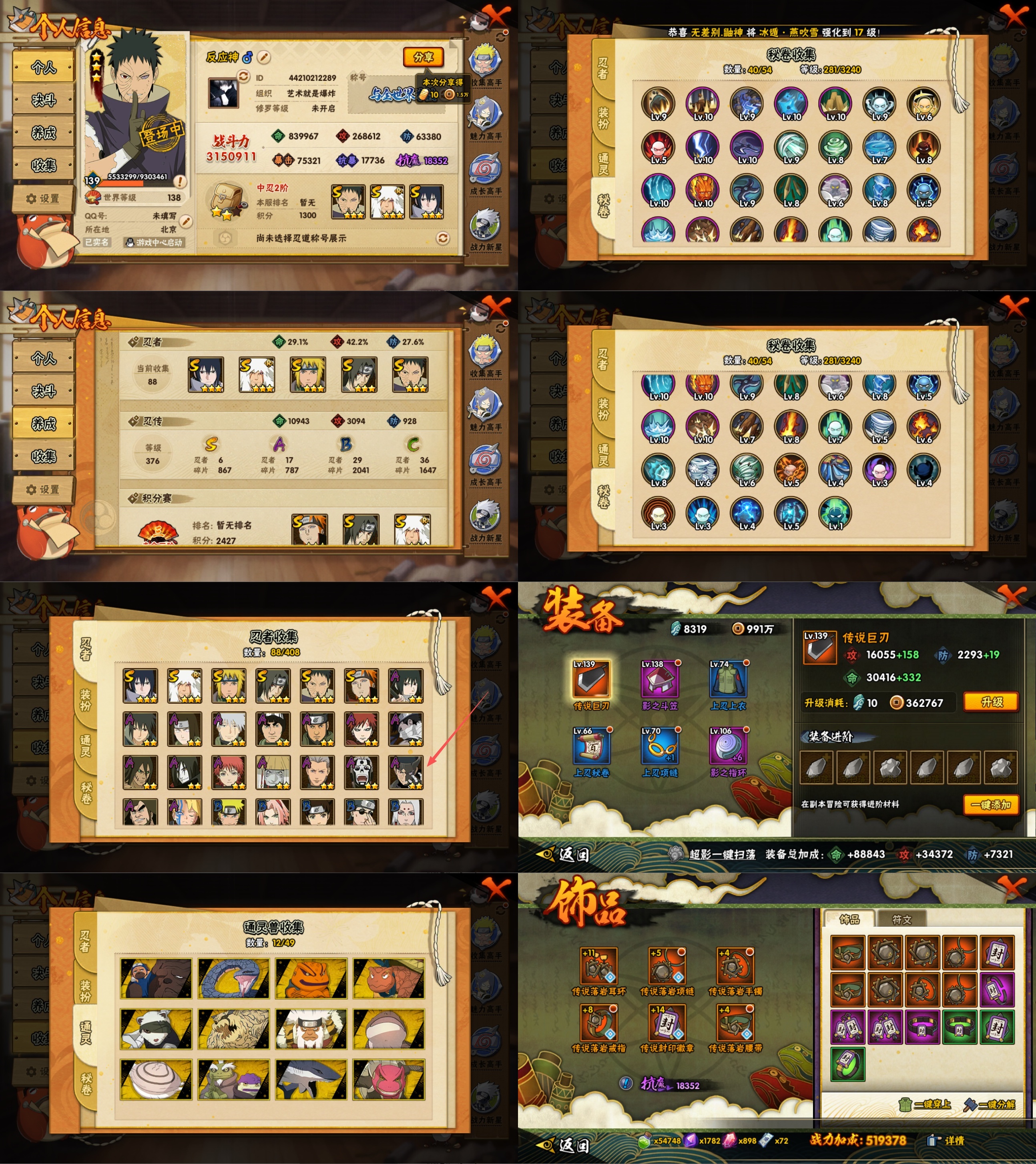 PX_2189683-20S忍/44A忍/战力1194W/V11/区服669 【S忍者】,漩涡鸣人「九喇嘛连结」,大野木「忍界大战」,迈特凯「死门」,自来也「舞之豪杰」,宇智波鼬「秽土转生」,药师兜「仙人模式」,宇智波斑「秽土转生」,艾「三代目雷影」,宇智波斑「白面具」,半藏「秽土转生」,千手扉间「秽土转生」,纲手「百豪」,波风水门「秽土转生」,无「二代目土影」,金角银角「秽土转生」,千手扉间,宇智波鼬「须佐能乎」,佩恩「天道」,大蛇丸,自来也, 【A忍者】,旗木卡卡西「幻之真容」,李洛克「忍界大战」,蝎「绯流琥」,宇智波泉奈,宇智波止水,长门「青年」,艾「青年」,达鲁伊「五代目雷影」,波风水门「青年」,奇拉比「忍界大战」,宇智波止水「新春限定」,宇智波佐助「须佐能乎」,迪达拉「秽土转生」,小南「新春限定」,旗木卡卡西「忍界大战」,宇智波带土「暴怒」,漩涡鸣人「九尾查克拉」,药师兜「半蛇斗篷」,宇智波鼬「新春限定」,我爱罗「忍界大战」,秋道丁次「忍界大战」,大蛇丸「晓」,春野樱「百豪」,照美冥「五代目水影」,三船,猿飞日斩「火影继承人」,宇智波佐助「万花筒写轮眼」,奇拉比,漩涡鸣人「仙人模式」,旗木卡卡西「万花筒写轮眼」,角都「地怨虞」,飞段「死司凭血」,角都,小南,飞段,迪达拉,我爱罗「疾风传」,蝎,干柿鬼鲛,宇智波鼬,猿飞阿斯玛,迈特凯,