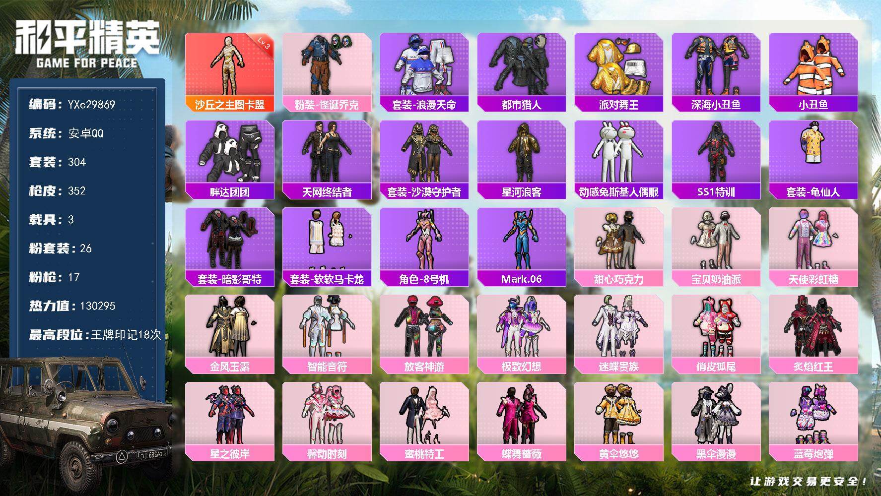 PX_2563085-图卡盟,都市,天网,金鞋,赵灵儿,巧克力,怪诞,放客,6级M4女娲,马卡龙,黑丝,胖达,国宝头,灰熊包,满地铁天赋】YXc29869-【可二次】【因赛季更新游戏段付以上号为准!】 ,安卓Q-1红装5稀有3载具25粉装16特效枪40热门304套装352枪皮,,18印记,历史传奇王牌18星, 【1红装】,沙丘之主-图卡盟,(3级), 【5稀有】,都市猎人,浪漫天命,派对舞王,天网终结者,派对舞王(金靴子), 【3载具】,仰望U9(赤霞丹朱),护世瑞兽,星梦玉骢, 【25粉装】,圣堂之誓,赵灵儿,宝贝奶油派,天使彩虹糖,甜心巧克力,金风玉露,雪月幻音,怪诞乔克,精灵娃娃,垂柳戏鸭,星月云朵,智能音符,放客神游,极致幻想,迷蝶贵族,俏皮狐尾,炙焰红王,星之彼岸,馨动时刻,蜜桃特工,蝶舞蔷薇,复仇流浪者,黄伞悠悠,黑伞漫漫,蓝莓炮弹, 【17特效枪】,SCAR-L-锦绣绵绵,(5级),M416-心之恋语,(5级),M416-墨龙九天,(1级),M416-女娲灵识,(6级),P90-沙丘之主,(3级),Kar98K-巳巳如意,(5级),M762-电糖天使,(7级),DP-28-豹影疾电,(5级),AUG-许七安,(1级),M762-甜心娃娃,(1级),UMP45-量子极限,(5级),Mk14-盛世惊鸿,(3级),MK12-雪月幻音,(1级),AUG-星之彼岸,(7级),AKM-梦之光华,(7级),烟雾弹-丁香清露,(5级),AKS-74U-千仞雪(5级) 【40热门】,8号机,Mark.06,小丑鱼,龟仙人,青涩年华,雪山精英,动感兔斯基,软软马卡龙,梦魇先生,呆萌铁蟹,万圣娃娃,鹰眼刺客,激萌罗小黑,沙漠守护者,迅捷狂鲨,深海小丑鱼,胖达团团,RSG追光队服,TT战队服,梦起落英,暗夜契约,暗影哥特,SS1特训,团圆交子,瑞龙福将,星河浪客,纯白誓言,水银刺客,狂沙舞者,漫步者,冰爽海盐,韶华初心,玄武圣者,娴静芝兰,破蛋小黄鸡,风华少年志,白月香洋装,极速红龙,M762-瑞龙福将,M24-香水柠檬, 【4飞行器】,龙翔九天飞行器,梦幻火箭飞行器,齐天大圣飞行器,天之羽翼飞行器, 【9头盔】,国宝胖达头盔,童趣迷兔头盔,九霄头盔,甜心宝贝头盔,深海小丑鱼头盔,金羽特工头盔,甜蜜誓约头盔,马卡龙头盔,夏日绵绵冰头盔, 【4背包】,酷熊伴侣背包,甜心宝贝背包,心之恋语背包,花间之火背包,