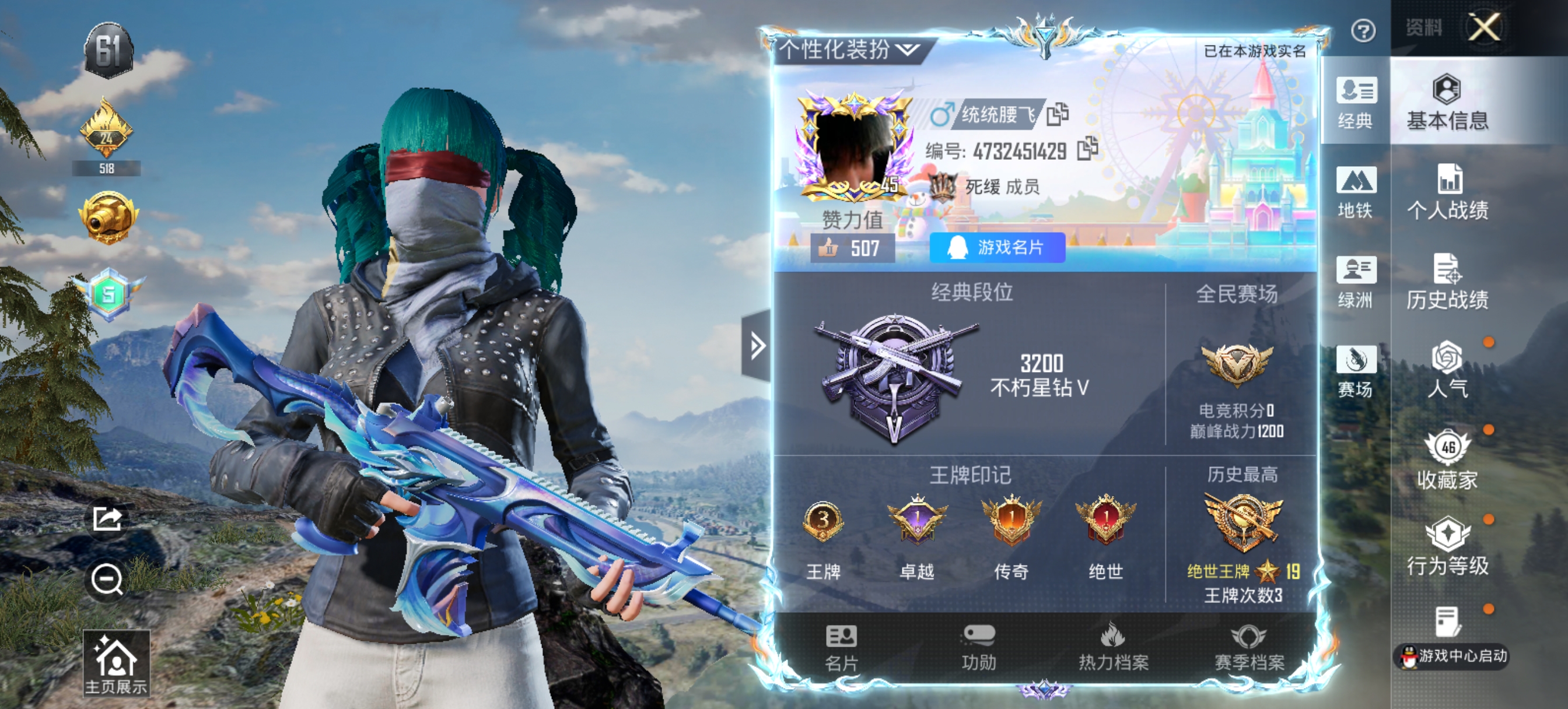 PX_2564972-实名:,可修改,时装数:,455,枪械数:,169,战备数:,143,热门装扮:,梦魇先生,缤纷油彩,兔兔白日梦,第五大道,冷漠罗丽,稀有枪皮:,Kar98K-巳巳如意,MK14-甜梦熊击,汤姆逊-热量炸弹,DP-28-豹影疾电,AKS-74U-森灵之息,UMP45-萌骑冒险