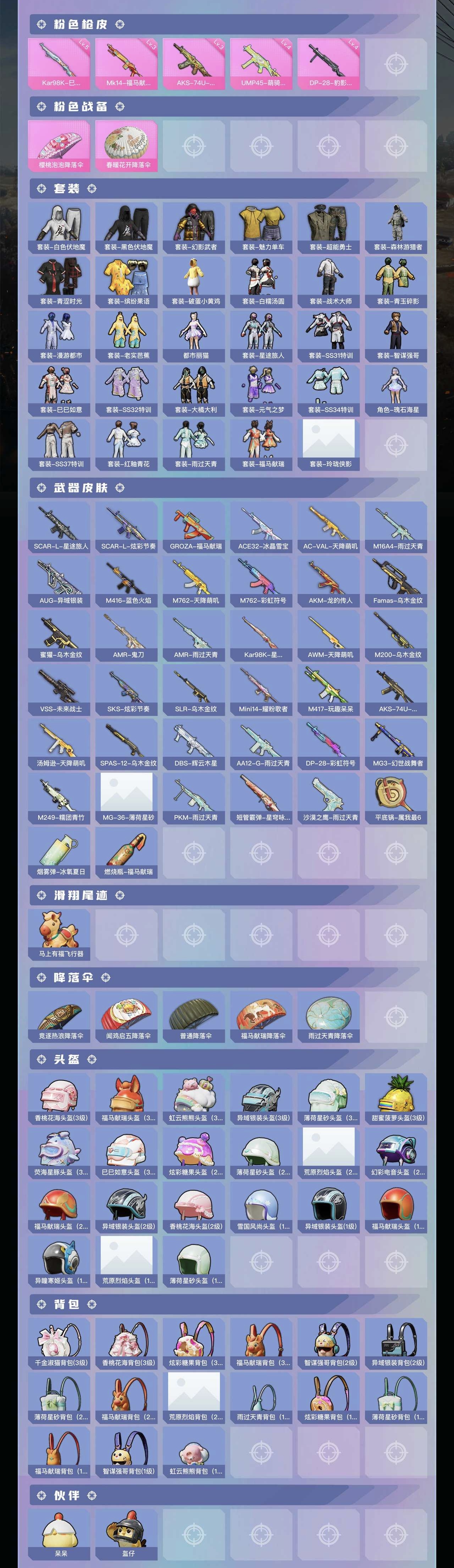 PX_2464826-可二次【9粉装4特效枪满级心之恋语】,安卓Q区-58843热力值-14印记-156套装-176枪皮,【10粉装】,角色-美雪,玩偶服-猪猪侠,彩虹鹿灵,角色-千金淑猫,天使彩虹糖,傲雪凌霜,暗夜鎏金,山涧鹿灵,霁雪冰心【4特效枪】,SCAR-L-锦绣绵绵(5级),MG3-洛神天依(7级),Kar98K-巳巳如意(5级),M416-心之恋语(7级)【11热门】,暗夜契约,极速红龙,纯白誓言,团圆交子,彩虹鹿灵,MG3-乌木金纹,M249-妙红点点,AWM-恐龙拽拽,Kar98K-彩虹符号,M416-糯团青竹,AKM-彩虹符号【2飞行器】,镜域双华-灵镜之阶,炫彩糖果飞行器【1背包】,甜心宝贝背包,营地ID:764253376,