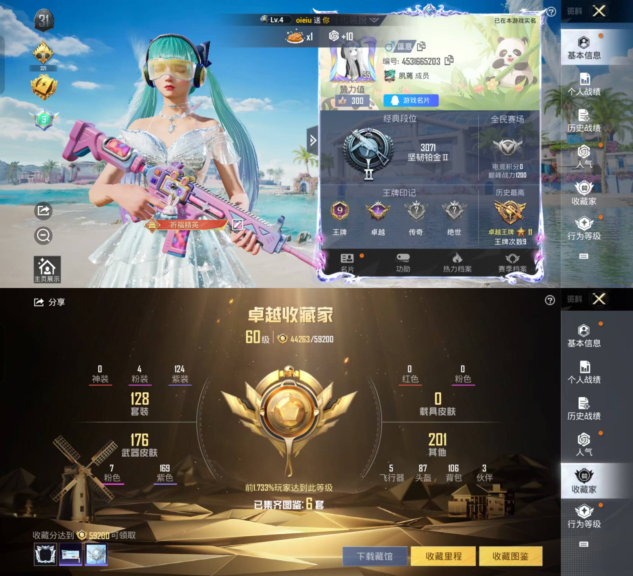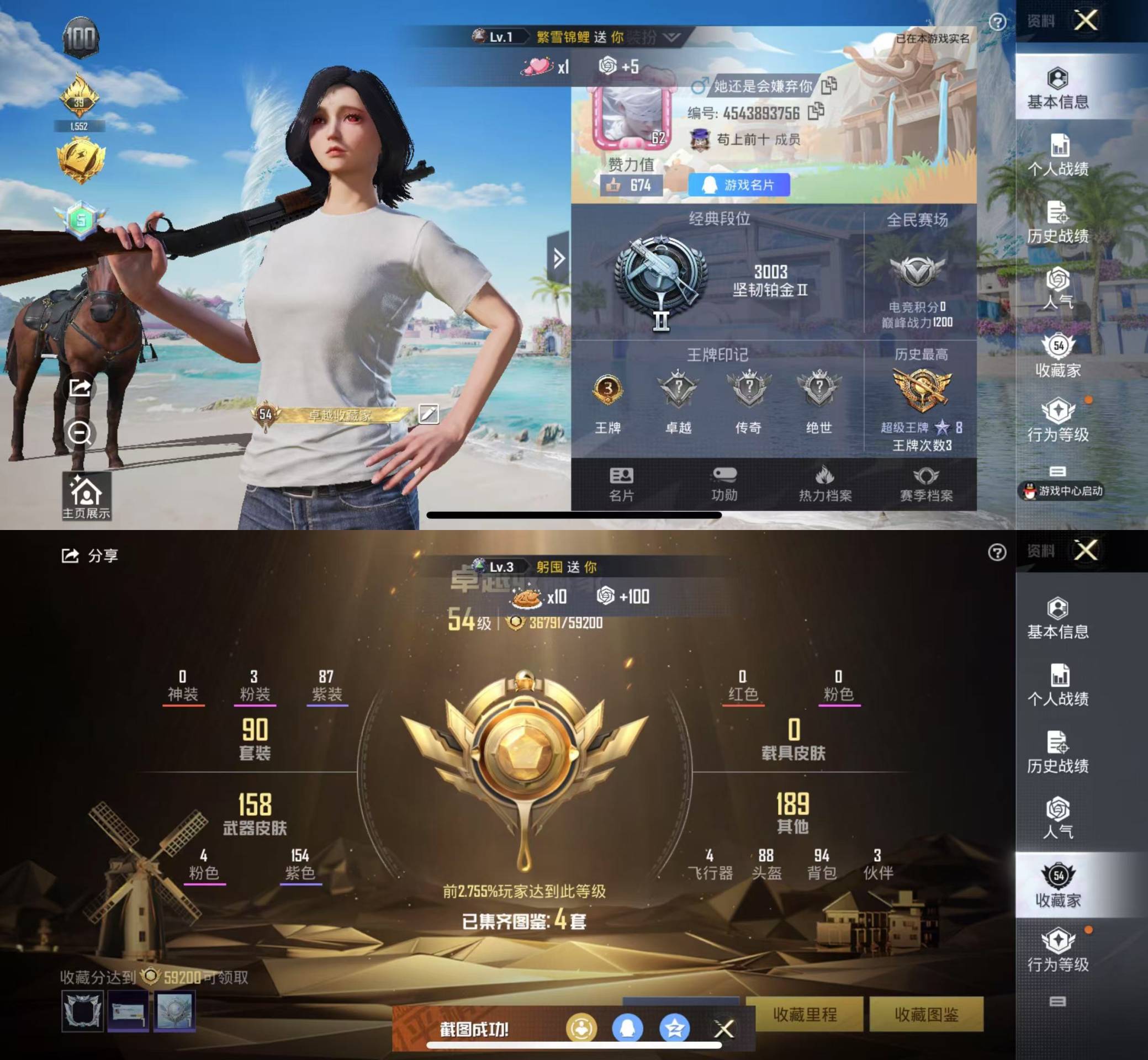 PX_2413380-5粉装,2飞行器,213枪皮,164套装,73322热力,10印记,皇冠,七级AMR-炫光之旅,七级M249-蓝莓炮弹,七级M416-心之恋语,五级SCAR-L-锦绣绵绵,五级UMP45-量子极限,五级GROZA-镜光银凌,五级Kar98K-巳巳如意,五级AKS-74U-星穹咏叹调,爱崽白
