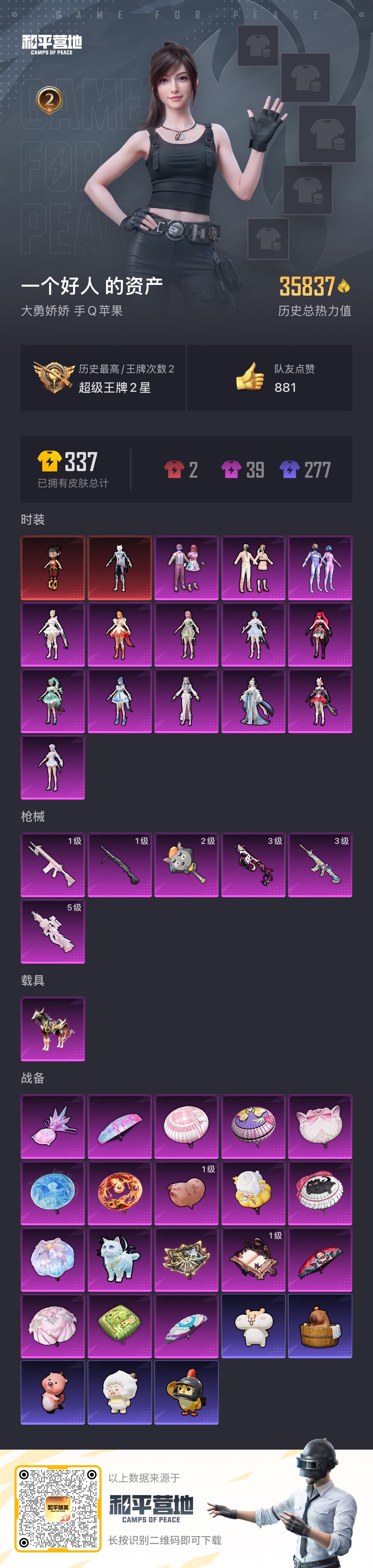 PX_2294338-赛季战神框,都市,蜘蛛侠,巧克力,猪妹,特训】YXc20860-【不可二次】【因赛季更新游戏段付以上号为准!】 苹果Q-3稀有1载具14粉装7特效枪35热门166套装243枪皮,7印记,历史无敌战神, 【3稀有】,奇异狩猎者,都市猎人,浪漫天命, 【1载具】,阿斯顿马丁S红色, 【14粉装】,梦幻火箭,天启纪元,奇迹舞步美雪,宝贝奶油派,天使彩虹糖,甜心巧克力,幻影飞狐,缤纷油彩,极限特训,古堡领主,极致幻想,翡翠骑士,星之彼岸,暗夜玫瑰, 【7特效枪】,AKM-炫紫旋律,(5级),M762-甜蜜誓约,(7级),MG-36-沧焰双生,(5级),DP-28-豹影疾电,(5级),Mk14-甜梦熊击,(5级),DBS-幻影飞狐,(4级),SLR-暗夜玫瑰,(4级), 【35热门】,奇迹天团,星光纪元,2B战斗服款,青涩年华,雪山精英,潮萌小黄鸭,鹰眼刺客,软萌银虎,奇迹天团,激萌罗小黑,深海小丑鱼,浪漫波比,NV战队服,暗夜契约,暗影哥特,团圆交子,瑞龙福将,纯白誓言,漫步者,梦之呓语,朱雀圣者,静谧青瓷,破蛋小黄鸡,风华少年志,白月香洋装,新侠客行,黑色刀锋,M416-魔法学院,M416-仓鼠灰灰,AKM-奇异狩猎者,M762-奇异狩猎者,M762-潮萌小黄鸭,M762-瑞龙福将,M24-奇异狩猎者,S686-奇异狩猎者, 【1飞行器】,春暖花开飞行器, 【6头盔】,梦幻火箭头盔,甜心宝贝头盔,金风玉露头盔,甜蜜誓约头盔,心之恋语头盔,夏日绵绵冰头盔, 【5背包】,梦幻火箭背包,甜心宝贝背包,金风玉露背包,神秘黑猫背包,甜蜜誓约背包