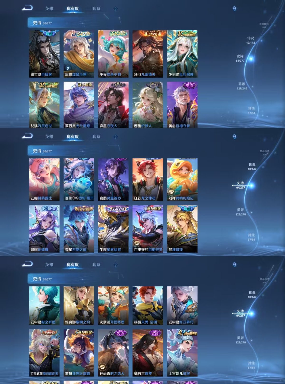 PX_2557004-实名:,可修改,贵族等级:,V7,英雄数:,129,皮肤数:,262,荣耀水晶:,弑枪猎影,珍品传说:,器灵·落星盏,传说皮:,黄金狮子座,黄金射手座,久胜战神,地狱之眼,胖达荣荣,无双飞将,幻光神枪,神骥·赴朔漠,限定皮:,梁祝,时之祈愿-云中君,五谷丰年,鸣野蒿,愿照·九州拓