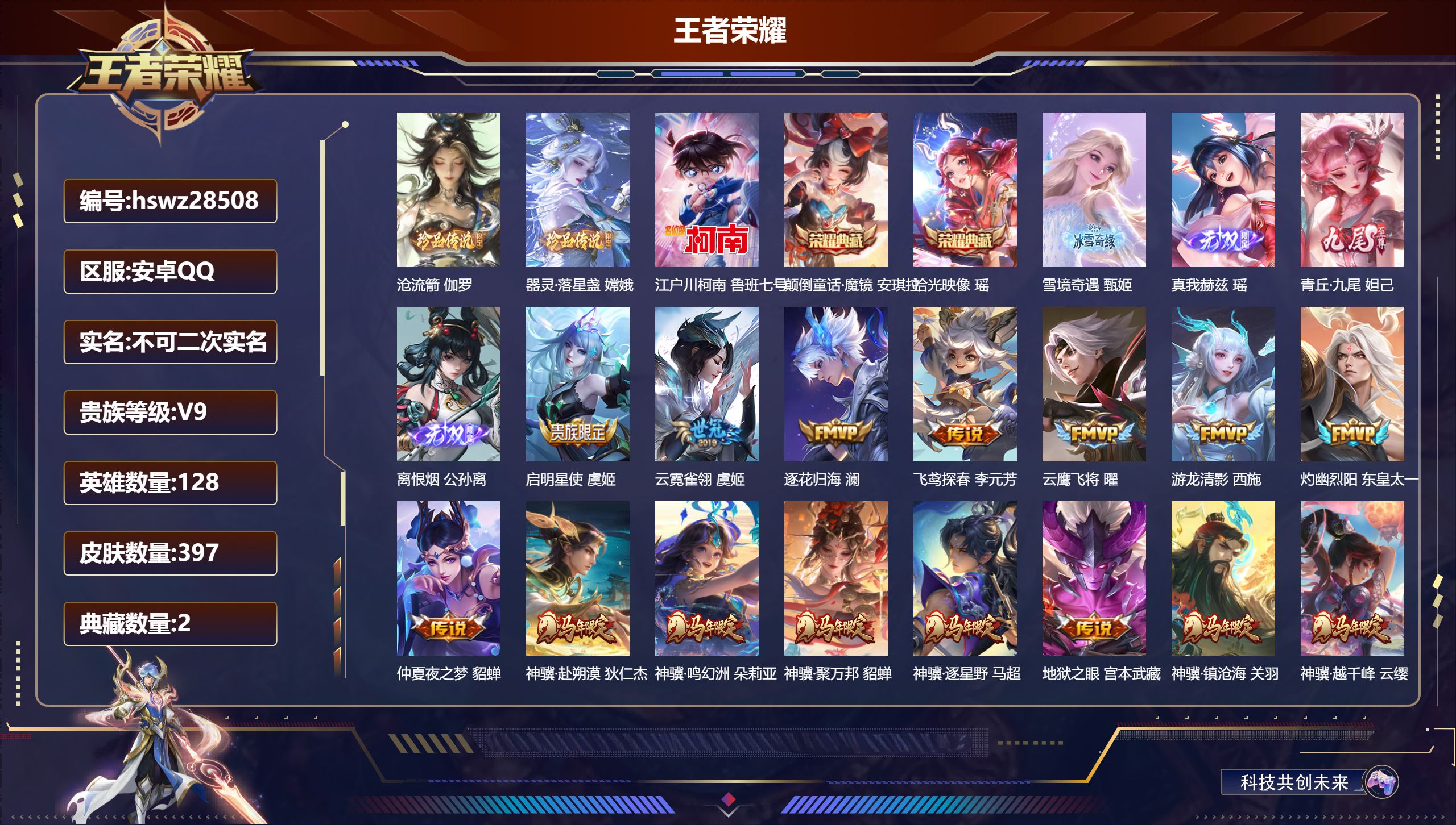 PX_2563372-Q/至尊星耀/397皮肤/128英雄/2典藏/0珍品无双/4无双/3珍品传说/32传说/106史诗/8稀有英雄 【3,珍品传说】沧流箭,伽罗,器灵·落星盏,嫦娥,江户川柯南,鲁班七号, 【2,典藏皮肤】颠倒童话·魔镜,安琪拉,拾光映像,瑶, 【4,无双皮肤】雪境奇遇,甄姬,真我赫兹,瑶,青丘·九尾,妲己,离恨烟,公孙离, 【32,传说皮肤】启明星使,虞姬,云霓雀翎,虞姬,逐花归海,澜,飞鸢探春,李元芳,云鹰飞将,曜,游龙清影,西施,灼幽烈阳,东皇太一,仲夏夜之梦,貂蝉,神骥·赴朔漠,狄仁杰,神骥·鸣幻洲,朵莉亚,神骥·聚万邦,貂蝉,神骥·逐星野,马超,地狱之眼,宫本武藏,神骥·镇沧海,关羽,神骥·越千峰,云缨,异界灵契,花木兰,时雨天司,诸葛亮,黄金射手座,后羿,霜月吟,露娜,乞巧织情,王昭君,黄金狮子座,达摩,久胜战神,干将莫邪,山海·炽霜斩,李信,音你心动,小乔,淬星耀世,赵云,超时空战士,狄仁杰,长夜焕生,王昭君,愿照·众生和,妲己,神树通天,后羿,牧神诗旅,庄周,愿照·千秋盛,女娲,鸣野蒿,桑启, 【106,史诗皮肤】末日机甲,吕布,白昼王子,嬴政,紫霞仙子,露娜,百解令,蒙犽,高山流水,庄周,匿光追影者,镜,云端筑梦师,庄周,唐三藏,金蝉,苍穹之光,项羽,天秀·启明,杨戬,猫狗日记,大乔,德古拉伯爵,刘邦,心灵战警,亚瑟,星君·亢金,达摩,五谷丰年,鬼谷子,无心,元歌,巫礼祀神,少司缘,鬼剑武藏,宫本武藏,星夜王子,白起,千筹问战,张良,线条小狗,周瑜,百晓客,明世隐,遇见飞天,杨玉环,摇滚巨星,嬴政,蜜橘之夏,公孙离,修罗,橘右京,拒霜思,嫦娥,魅力维加斯,妲己,偶像歌手,王昭君,女仆咖啡,妲己,白蛇,大乔,星界游侠,暃,晚萤,娜可露露,猪悟能,猪八戒,遇见神鹿,瑶,舞动绿茵,蔡文姬,繁星吟游,蔡文姬,暗夜贵公子,嬴政,鹰眼统帅,狄仁杰,逐梦之光,东皇太一,大圣娶亲,孙悟空,孙行者,孙悟空,李小龙,裴擒虎,光弋星穹,莱西奥,春霖将至,上官婉儿,纤云弄巧,云中君,驯魔猎人,兰陵王,龙骑士,墨子,金属风暴,墨子,特工魅影,百里守约,猫狗日记,孙策,原初追逐者,百里玄策,逐浪之夏,李元芳,未来纪元,赵云,灵蛊蚀心,扁鹊,朱雀志,百里守约,黎明之约,雅典娜,石田雨龙,后羿,优雅恋人,嬴政,魔术师,狄仁杰,龙之律动,狂铁,神威,马超,皇家上将,赵云,冰冠公主,雅典娜,功夫厨神,程咬金,梁祝,上官婉儿,天才门将,刘禅,圣诞恋歌,貂蝉,云间偶戏,元歌,水晶猎龙者,花木兰,御风骁将,吕布,圣诞狂欢,吕布,魅语,不知火舞,器灵·浮梦炉,赵怀真,浮光幕影,芈月,罗小黑战记,百里玄策,天狼运算者,孙膑,永昼,夏洛特,天狼溯光者,伽罗,地狱岩魂,廉颇,蔷薇恋人,孙尚香,冰雪圆舞曲,甄姬,火炮绅士,黄忠,月团寄思,沈梦溪,航海奇遇记,老夫子,千年之狐,李白,节奏热浪,阿轲,超时空战士,钟无艳,游园惊梦,甄姬,万灵启世,女娲,心灵骇客,安琪拉,箭羽风息,伽罗,乱世虎臣,张飞,万物之道,弈星,绅士熊喵,刘禅,缤纷独角兽,小乔,线条小狗,小乔,真爱魔法,干将莫邪,时之恋人,孙尚香,水果甜心,孙尚香,狂想玩偶喵,蒙犽,化蝶舞,阿轲,江河有灵,阿古朵,幽灵船长,曹操,乘风破浪,夏侯惇,暗隐猎兽者,兰陵王, 【172,勇者皮肤】圆桌骑士,盾山,烛龙,曹操,爱心护理,阿轲,太极少年,赵怀真,沙漠行僧,达摩,大漠名商,沈梦溪,缤纷绘卷,张良,纽约教父,刘备,拳王,达摩,大发明家,达摩,龙舞盛年,沈梦溪,丁香结,小乔,功夫炙烤,廉颇,铁甲之心,典韦,沉稳之力,孙尚香,幻夜卜梦,芈月,海盐诗旅,桑启,幻泉雾影,海月,朔风刀,夏侯惇,朔望之晖,女娲,归虚梦演,孙膑,汉昭烈帝,刘备,白色死神,白起,黄金武士,典韦,落雪兰心,甄姬,御旌,牛魔,阴阳师,狄仁杰,径山谋武,孙权,次元突破,哪吒,古海寻踪,张良,牛运亨通,牛魔,戏梦巡演,空空儿,功夫老勺,老夫子,西部大镖客,牛魔,鲨炮海盗猫,沈梦溪,虎啸剑宗,刘邦,海滩派对,项羽,完美运算,后羿,万华元夜,狄仁杰,踏浪烽翎,莱西奥,演武夺筹,程咬金,红桃皇后,芈月,奇妙博物学,庄周,西部游侠,莱西奥,美猴王,孙悟空,猎兽之王,吕布,野性能量,吕布,哥特玫瑰,露娜,守护之力,大乔,无双福将,程咬金,瓷语鉴心,露娜,百相守梦,影,原初探秘者,鬼谷子,潮玩探月行,猪八戒,天穹祈灯,鬼谷子,疑决卦,明世隐,如懿,安琪拉,化身博士,扁鹊,潮玩骑士王,亚瑟,阿尔法小队,后羿,五福同心,张飞,金色潮汐,朵莉亚,次元傲视,杨戬,星际陆战队,程咬金,幻乐之宴,鬼谷子,霸王丸,宫本武藏,虹云星官,明世隐,雾影缉谜,兰陵王,舞狮寰,吕布,救世之瞳,扁鹊,赤刃凌霄,敖隐,赤莲之焰,周瑜,死亡骑士,亚瑟,浪漫序章,刘备,敏锐之力,李白,危途狂花,戈娅,胡桃狂想曲,蒙犽,破局者,亚连,幽兰居士,张良,玩偶对对碰,安琪拉,掌控之力,诸葛亮,海滩丽影,钟无艳,圣弓游侠,后羿,忍·炎影,赵云,狰,白起,雪境奇遇,西施,重明,芈月,炽热元素使,姜子牙,坚韧之力,苏烈,唤灵魔甲,刘禅,万事如意,刘备,谜偶窥秘,鬼谷子,擒涛扼浪,裴擒虎,苍云破阵,蒙恬,糖果风暴,安琪拉,乓乓大师,鲁班大师,逐霄之志,曹操,溯影追猎,虞姬,极光幻客,蚩奼,探海日志,鲁班大师,女武神,艾琳,天使之翼,孙膑,雾都夜雨,干将莫邪,兔女郎,花木兰,龙腾万里,关羽,流音漫舞,艾琳,金庭之子,兰陵王,幻夜行动,兰陵王,未来纪元,宫本武藏,罗小黑战记,哪吒,千军破阵,苏烈,往忆晖光,明世隐,荣光之誓,亚瑟,花好人间,甄姬,万象初新,宫本武藏,聚星闪耀,钟无艳,御銮,盾山,单词大作战,雅典娜,时尚教父,姜子牙,春野之旅,钟无艳,秘密基地,刘禅,穷奇,典韦,教廷特使,