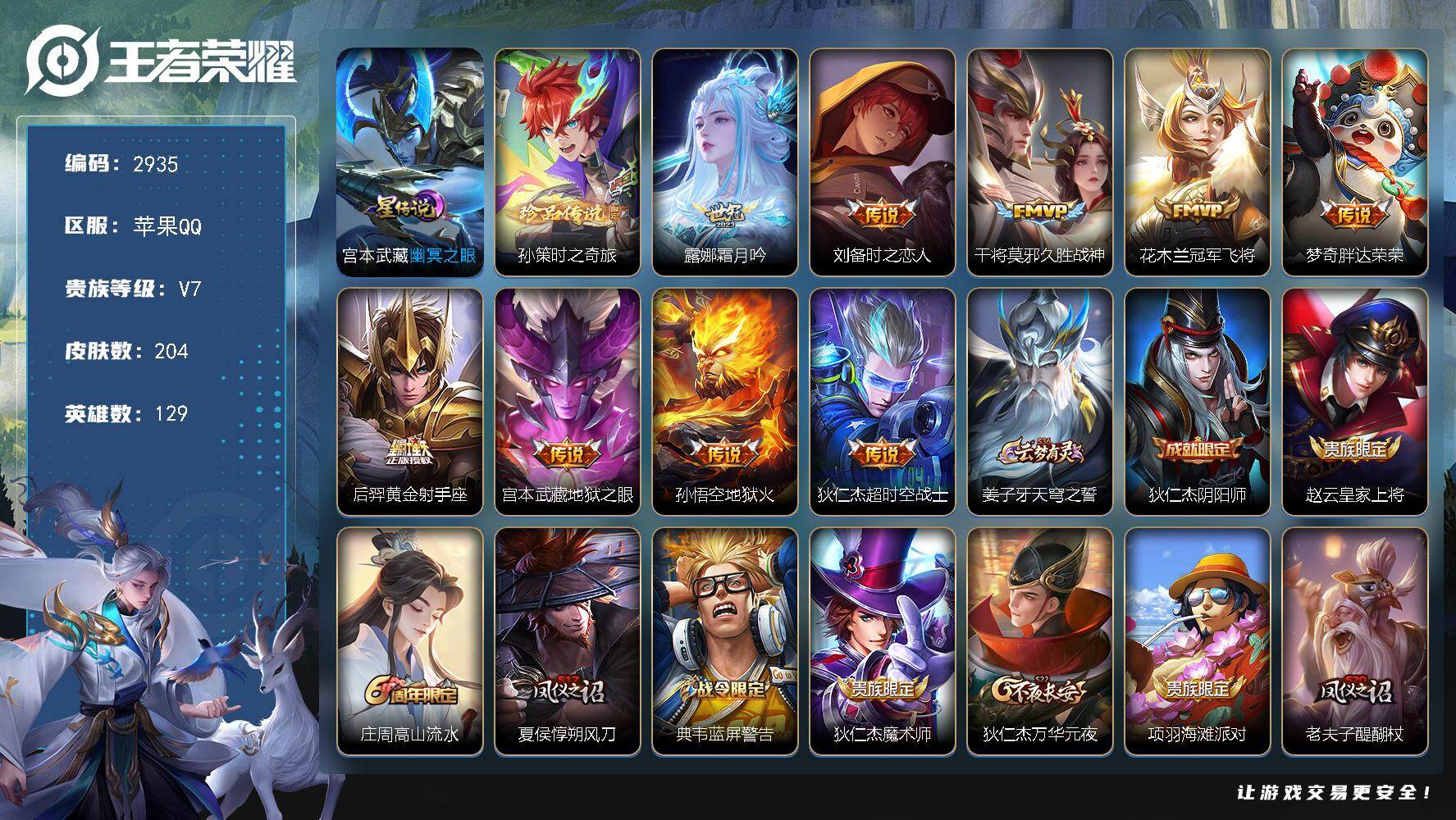 PX_2536620-实名:,可修改,贵族等级:,V7,英雄数:,119,皮肤数:,136,荣耀水晶:,武则天,珍品传说:,酷洛米之心,大耳狗之梦,星传说:,幻海之心,传说皮:,猫影幻舞,仲夏夜之梦,海洋之心,限定皮:,李小龙,游园惊梦,梁祝,幽恒,时之彼端,太华,如梦令-嫦娥,高山流水