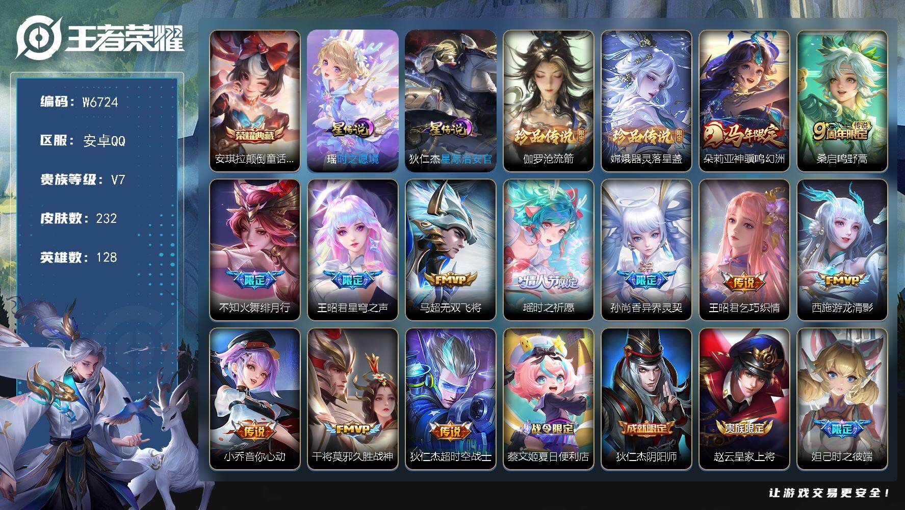 PX_2557915-【W6724】高质量精品女号-赞萌露比小兵-紫瑶时之祈愿-FMVP西施游龙清影.游龙堇华星元-伽罗沧流箭.嫦娥器灵·落星盏珍品-王昭君星穹之声.乞巧织情.瑶山海碧波行.遇见神鹿.玉兔公主.白晶晶.大乔白鹤梁神女.小乔青蛇.大乔白蛇.霸王别姬.紫霞仙子-安卓Q-无二次-贵7-128英雄-232皮肤-【2典藏.含小兵皮肤】-12传说-2珍品-85限定-72史诗-3星元-10按键-1小兵-百朵花花-10印记-贵族积分46194-营地ID:529603361 【星元皮肤】:瑶时之愿境,狄仁杰星际治安官