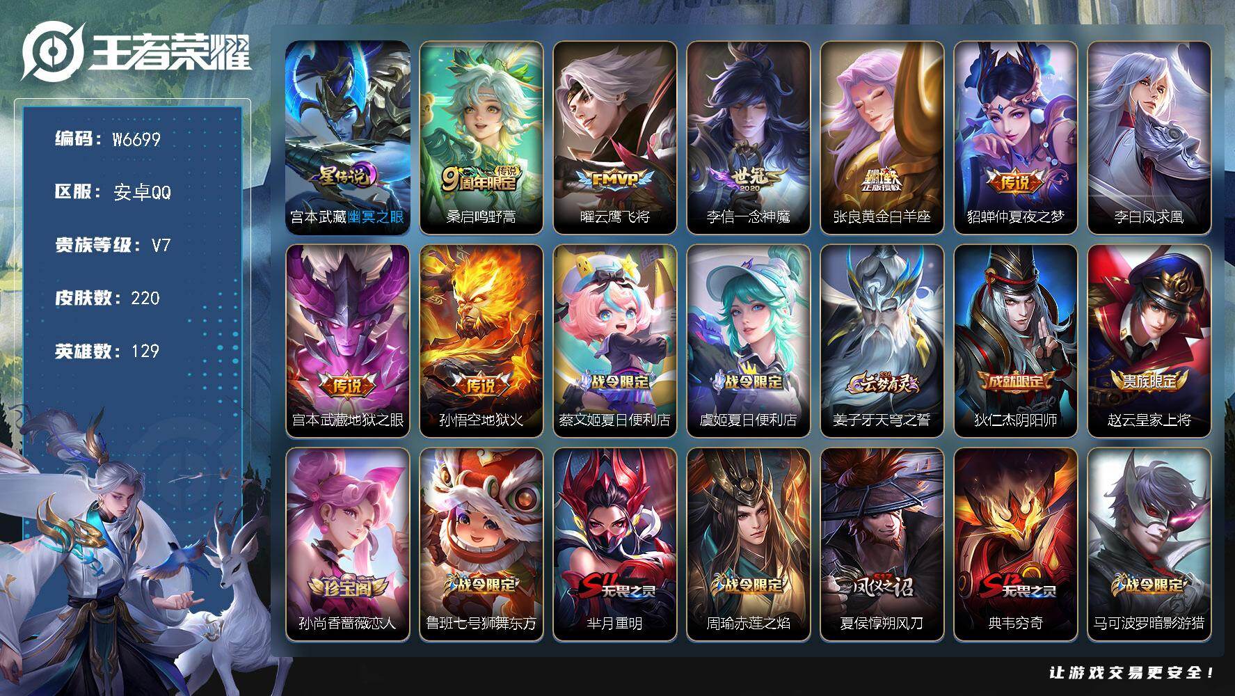PX_2555934-【W6699】【亮点:7K场次打野号】安卓Q-可二次-贵7-129英雄-220皮肤-1星元-8传说-61限定-贵族积分27904-营地ID:436800266(热门:曜云鹰飞将,李信一念神魔-李白凤求凰,宫本武藏地狱之眼,孙悟空地狱火-孙悟空至尊宝-马超神威) 【星元皮肤】:宫本武藏幽冥之眼