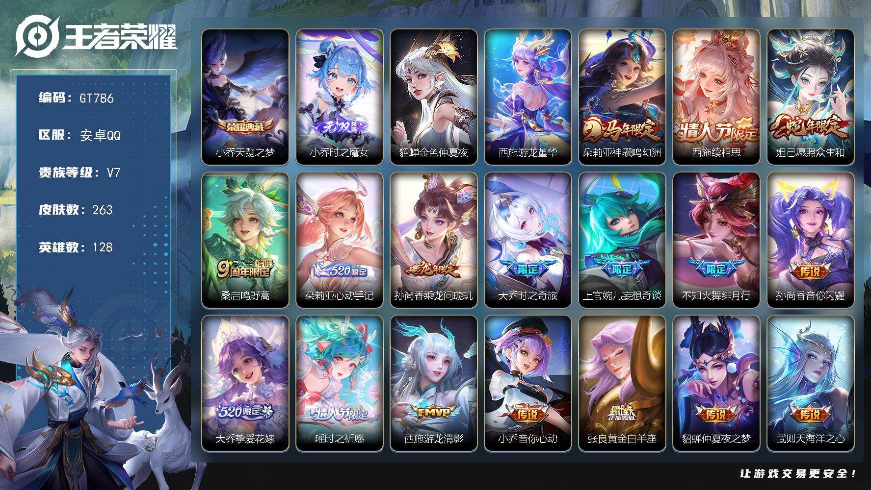PX_2564699-可换绑【精品推荐高质量女号·西施大乔全皮·典藏小乔·无双小乔·龙年孙尚香·蛇年妲己·朵丽亚520限定·大乔520限定·时之祈愿·公孙离玉兔公主·魔法小厨娘·】,20按键,2星传说,9王者印记,180五级铭文,无二次安卓Q-V7-263皮肤-1典藏皮肤-1无双-17传说-78史诗【英雄全皮】:孙权全皮,朵莉亚全皮,大乔全皮,西施全皮,戈娅全皮,空空儿全皮,影全皮,少司缘全皮【荣耀典藏】:小乔天鹅之梦【无双皮肤】:小乔时之魔女【星元皮肤】:西施游龙堇华,貂蝉金色仲夏夜【传说皮肤】:朵莉亚神骥鸣幻洲,西施续相思,妲己愿照众生和,桑启鸣野蒿,朵莉亚心动手记,孙尚香乘龙问璇玑,大乔时之奇旅,上官婉儿妄想奇谈,不知火舞绯月行,孙尚香音你闪耀,大乔挚爱花嫁,瑶时之祈愿,西施游龙清影,小乔音你心动,张良黄金白羊座,貂蝉仲夏夜之梦,武则天海洋之心【限定皮肤】:蒙犽顽岩魄,大乔绒语心约,姜子牙天穹之誓,杨戬破阵退雄兵,狄仁杰阴阳师,赵云皇家上将,妲己时之奇旅,芈月白晶晶,元歌无心,甄姬女儿国国王,狄仁杰魔术师,达摩沙漠行僧,项羽海滩派对,貂蝉逐梦之音,安琪拉魔法小厨娘,露娜一生所爱,不知火舞绯月行,李元芳云中旅人,钟馗驱傩正仪,杨玉环寅虎心曲,鬼谷子五谷丰年,大乔白鹤梁神女,大乔挚爱花嫁,大乔时之奇旅,苏烈千军破阵,百里玄策原初追逐者,公孙离玉兔公主,沈梦溪大漠名商,裴擒虎擒涛扼浪,瑶时之祈愿,瑶山海碧波行,上官婉儿神器万象笔,上官婉儿妄想奇谈,嫦娥拒霜思,西施玲珑珍味,西施至美乘鲤谣,鲁班大师探海日志,桑启海盐诗旅,戈娅驭风魔法,艾琳女武神,阿古朵江河有灵,张良古海寻踪,高渐离燃音魔法,妲己灵卜魔法,鬼谷子天穹祈灯,伽罗琥珀纪元,小乔时之魔女,大乔乘龙忆丹青,安琪拉乘龙聚宝船,孙尚香乘龙问璇玑,沈梦溪龙舞盛年,李元芳蔬乡物语,刘邦剑破天穹,上官婉儿群星魔术团,朵莉亚心动手记,周瑜熔金海岸【年限皮肤】:杨玉环寅虎心曲,瑶山海碧波行,孙尚香乘龙问璇玑,大乔乘龙忆丹青,安琪拉乘龙聚宝船,妲己愿照众生和【赛季限定】:钟馗驱傩正仪,苏烈千军破阵,达摩沙漠行僧,沈梦溪大漠名商,李元芳云中旅人,桑启海盐诗旅,裴擒虎擒涛扼浪,鲁班大师探海日志,张良古海寻踪,鬼谷子天穹祈灯,刘邦剑破天穹,姜子牙天穹之誓,东皇太一噬灭天穹,太乙真人谧流熔炉,钟馗虚灵犬护,甄姬逆浪荇歌,亚瑟荣光之誓,百里玄策原初追逐者,项羽九幽镇关【战令限定】:戈娅驭风魔法,西施玲珑珍味,高渐离燃音魔法,妲己灵卜魔法,李元芳蔬乡物语,周瑜线条小狗,小乔线条小狗【史诗皮肤】:上官婉儿春霖将至,钟馗锁墨魂,周瑜线条小狗,小乔线条小狗,项羽九幽镇关,少司缘巫礼祀神,女娲万灵启世,公孙离涂山容容,西施织梦人,朵莉亚幻珠鲛人,黄忠百相守梦,扁鹊灵蛊蚀心,狂铁龙之律动,阿轲化蝶舞,弈星万物之道,少司缘涂山红红,蒙犽顽岩魄,上官婉儿群星魔术团,大乔乘龙忆丹青,安琪拉乘龙聚宝船,伽罗琥珀纪元,高渐离燃音魔法,妲己灵卜魔法,西施至美乘鲤谣,阿古朵江河有灵,戈娅驭风魔法,杨玉环银翎春语,瑶山海碧波行,元歌无心,上官婉儿神器万象笔,鬼谷子五谷丰年,妲己时之奇旅,公孙离玉兔公主,杨玉环寅虎心曲,甄姬女儿国国王,嫦娥拒霜思,安琪拉时之奇旅,大乔白鹤梁神女,西施诗语江南,芈月白晶晶,百里玄策原初追逐者,孙尚香时之恋人,瑶遇见神鹿,小乔青蛇,大乔白蛇,娜可露露晚萤,狄仁杰鹰眼统帅,伽罗箭羽风息,露娜一生所爱,大乔猫狗日记,孙策猫狗日记,白起星夜王子,程咬金功夫厨神,蔡文姬舞动绿茵,铠曙光守护者,百里守约特工魅影,安琪拉心灵骇客,雅典娜冰冠公主,诸葛亮黄金分割率,兰陵王暗隐猎兽者,小乔缤纷独角兽,花木兰水晶猎龙者,貂蝉逐梦之音,安琪拉魔法小厨娘,曹操幽灵船长,刘禅绅士熊喵,墨子金属风暴,妲己女仆咖啡,妲己魅力维加斯,孙尚香水果甜心,宫本武藏鬼剑武藏,廉颇地狱岩魂,狄仁杰魔术师,甄姬冰雪圆舞曲,貂蝉圣诞恋歌,赵云未来纪元,赵云皇家上将,阿轲暗夜猫娘,露娜紫霞仙子,项羽苍穹之光【其他皮肤】:大乔微风如诗,影百相守梦,兰陵王雾影缉谜,鲁班七号班班快跑,妲己线条小狗,桑启线条小狗,安琪拉糖果风暴,鬼谷子谜偶窥秘,虞姬溯影追猎,蚩奼极光幻客,艾琳鹤鸣心笺,孙权径山谋武,张良罗小黑战记,亚瑟荣光之誓,哪吒罗小黑战记,桑启青衿临川,鬼谷子克喵,莱西奥踏浪烽翎,空空儿戏梦巡演,庄周锦麟游梦,甄姬逆浪荇歌,白起死霸装,姬小满小满鸭,露娜命运加冕,阿古朵布丁狗之约,张良灵野札记,小乔秘证寻踪,苏烈春野闲踪,钟馗虚灵犬护,戈娅玫蓝誓约,少司缘灵卦秘语,姜子牙星梦巡礼,西施雪境奇遇,影魅影绮裳,典韦铁骨偃魂,太乙真人谧流熔炉,苍苍林狼骑,干将莫邪雾都夜雨,东皇太一噬灭天穹,大乔绒语心约,周瑜熔金海岸,姜子牙天穹之誓,貂蝉长夏之忆,杨戬破阵退雄兵,大司命暗都幽影,刘邦剑破天穹,李元芳蔬乡物语,钟无艳春野之旅,沈梦溪龙舞盛年,廉颇功夫炙烤,朵莉亚金色潮汐,海诺时空谍影,妲己灵卜魔法,鬼谷子天穹祈灯,后羿完美运算,钟无艳聚星闪耀,张良古海寻踪,哪吒热血海滩,李元芳妄想特派,姬小满零食大作战,西施玲珑珍味,鲁班大师探海日志,太乙真人劲辣红锅,裴擒虎擒涛扼浪,赵怀真太极少年,猪八戒潮玩探月行,海月幻泉雾影,桑启海盐诗旅,戈娅危途狂花,李元芳云中旅人,蒙恬蔚蓝