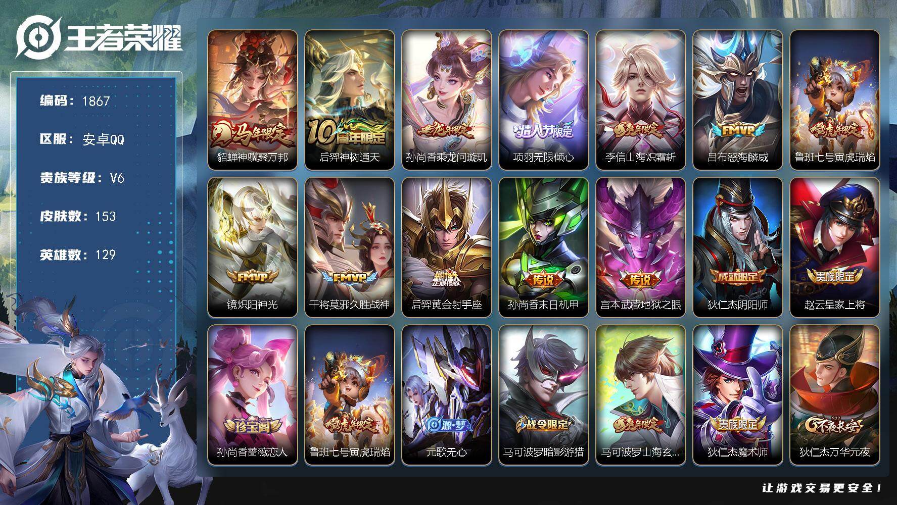 PX_2551831-【153皮肤12传说貂蝉神骥聚万邦,孙尚香乘龙问璇玑,项羽无限倾心,吕布怒海麟威】,安卓Q-V6-永恒钻石III段位-129英雄-153皮肤-12传说-50史诗 【英雄全皮】:敖隐全皮 【传说皮肤】:貂蝉神骥聚万邦,后羿神树通天,孙尚香乘龙问璇玑,项羽无限倾心,李信山海炽霜斩,吕布怒海麟威,鲁班七号寅虎瑞焰,镜炽阳神光,干将莫邪久胜战神,后羿黄金射手座,孙尚香末日机甲,宫本武藏地狱之眼 【限定皮肤】:狄仁杰阴阳师,赵云皇家上将,孙尚香蔷薇恋人,鲁班七号寅虎瑞焰,元歌无心,马可波罗暗影游猎,马可波罗山海玄木吟,狄仁杰魔术师,狄仁杰万华元夜,达摩沙漠行僧,项羽海滩派对,项羽无限倾心,程咬金演武夺筹,韩信飞衡,孙悟空孙行者,李元芳云中旅人,钟馗驱傩正仪,鬼谷子原初探秘者,鬼谷子五谷丰年,苏烈千军破阵,百里玄策原初追逐者,梦奇顽趣,沈梦溪大漠名商,裴擒虎擒涛扼浪,云中君纤云弄巧,李信山海炽霜斩,上官婉儿梁祝,嫦娥拒霜思,嫦娥暖冬兔眠,西施玲珑珍味,鲁班大师探海日志,桑启海盐诗旅,暃星界游侠,戈娅驭风魔法,艾琳流音漫舞,司空震地狱燃心,阿古朵江河有灵,张良古海寻踪,蒙犽百解令,蒙恬荣光圣徽,鬼谷子天穹祈灯,孙尚香乘龙问璇玑,沈梦溪龙舞盛年,刘邦剑破天穹 【年限皮肤】:韩信飞衡,鲁班七号寅虎瑞焰,李信山海炽霜斩,马可波罗山海玄木吟,孙尚香乘龙问璇玑 【赛季限定】:鬼谷子原初探秘者,狄仁杰万华元夜,程咬金演武夺筹,钟馗驱傩正仪,苏烈千军破阵,达摩沙漠行僧,沈梦溪大漠名商,李元芳云中旅人,桑启海盐诗旅,裴擒虎擒涛扼浪,鲁班大师探海日志,张良古海寻踪,鬼谷子天穹祈灯,刘邦剑破天穹,东皇太一噬灭天穹,钟馗虚灵犬护,甄姬逆浪荇歌,亚瑟荣光之誓,百里玄策原初追逐者,梦奇顽趣,蒙恬荣光圣徽 【战令限定】:马可波罗暗影游猎,暃星界游侠,嫦娥暖冬兔眠,戈娅驭风魔法,西施玲珑珍味,司空震地狱燃心,艾琳流音漫舞,周瑜线条小狗,小乔线条小狗 【史诗皮肤】:周瑜线条小狗,小乔线条小狗,女娲万灵启世,百里玄策罗小黑战记,公孙离涂山容容,黄忠百相守梦,弈星万物之道,蒙恬荣光圣徽,蒙犽百解令,阿古朵江河有灵,司空震地狱燃心,戈娅驭风魔法,马可波罗山海玄木吟,暃星界游侠,梦奇顽趣,元歌无心,鬼谷子五谷丰年,夏洛特永昼,嫦娥拒霜思,孙悟空孙行者,云中君纤云弄巧,百里玄策原初追逐者,马可波罗暗影游猎,韩信飞衡,娜可露露晚萤,上官婉儿梁祝,狄仁杰鹰眼统帅,伽罗箭羽风息,孙策猫狗日记,阿轲节奏热浪,白起星夜王子,李元芳逐浪之夏,百里守约特工魅影,兰陵王暗隐猎兽者,夏侯惇乘风破浪,刘邦德古拉伯爵,李白千年之狐,曹操幽灵船长,刘禅绅士熊喵,吕布圣诞狂欢,墨子金属风暴,妲己女仆咖啡,妲己魅力维加斯,嬴政摇滚巨星,孙尚香水果甜心,孙尚香蔷薇恋人,宫本武藏鬼剑武藏,狄仁杰魔术师,王昭君偶像歌手,甄姬冰雪圆舞曲,赵云皇家上将 【其他皮肤】:兰陵王雾影缉谜,虞姬溯影追猎,蚩奼极光幻客,艾琳鹤鸣心笺,亚瑟荣光之誓,鬼谷子克喵,莱西奥踏浪烽翎,云中君云械蓝图,甄姬逆浪荇歌,阿古朵布丁狗之约,钟馗虚灵犬护,姜子牙星梦巡礼,干将莫邪雾都夜雨,东皇太一噬灭天穹,刘邦剑破天穹,沈梦溪龙舞盛年,廉颇功夫炙烤,鬼谷子天穹祈灯,后羿完美运算,海月王牌新星,张良古海寻踪,艾琳流音漫舞,李元芳妄想特派,西施玲珑珍味,鲁班大师探海日志,太乙真人劲辣红锅,裴擒虎擒涛扼浪,赵怀真太极少年,牛魔牛运亨通,猪八戒潮玩探月行,海月幻泉雾影,嫦娥暖冬兔眠,桑启海盐诗旅,李元芳云中旅人,蒙恬蔚蓝守将,沈梦溪大漠名商,刘邦虎啸剑宗,达摩沙漠行僧,苏烈千军破阵,鲁班大师乓乓大师,钟馗驱傩正仪,张良缤纷绘卷,程咬金演武夺筹,刘禅秘密基地,狄仁杰万华元夜,鬼谷子原初探秘者,狂铁特工战影,哪吒次元突破,沈梦溪鲨炮海盗猫,大乔守护之力,孙尚香沉稳之力,狂铁命运角斗场,王昭君幻想奇妙夜,刘备汉昭烈帝,狄仁杰阴阳师,宫本武藏万象初新,张飞五福同心,亚瑟死亡骑士,妲己少女阿狸,安琪拉玩偶对对碰,宫本武藏未来纪元,扁鹊化身博士,白起白色死神,程咬金星际陆战队,芈月红桃皇后,赵云忍炎影,赵云白执事,韩信教廷特使,项羽海滩派对,暃碧珀绯影,云缨赤焰之缨,司空震启蛰,蒙恬秩序猎龙将,盘古创世神祝,嫦娥露花倒影,李信灼热之刃,盾山极冰防御线,米莱狄精准探案法,百里守约绝影神枪,东皇太一东海龙王,哪吒三太子,杨戬埃及法老,马可波罗激情绿茵,刘邦圣殿之光,周瑜海军大将,张良一千零一夜,王昭君精灵公主,貂蝉异域舞娘,鲁班七号木偶奇遇记 【内测皮肤】:孙尚香蔷薇恋人,狂铁特工战影 【营地ID】:1739183857