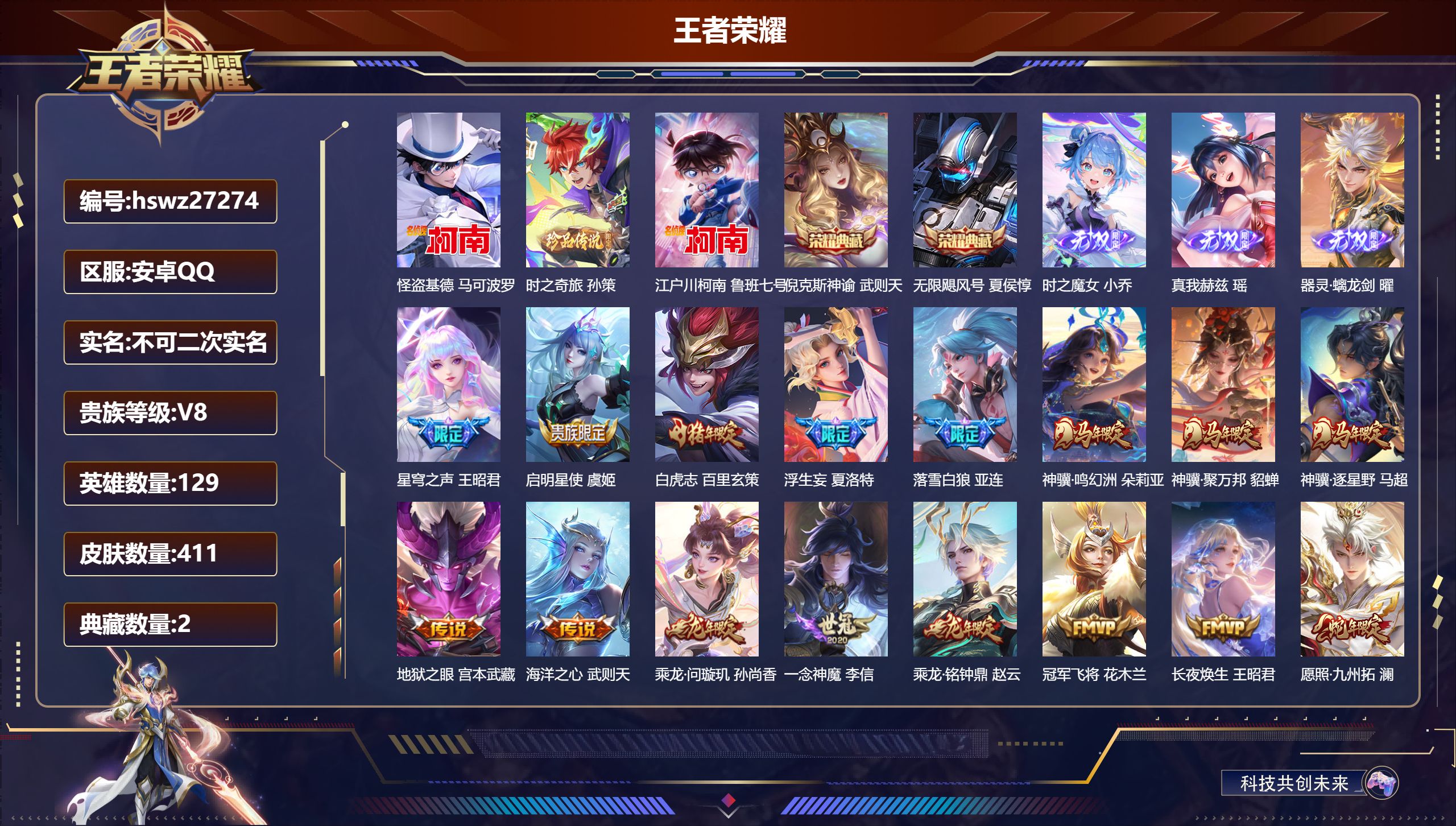 PX_2537570-Q/绝世王者/411皮肤/129英雄/2典藏/0珍品无双/3无双/3珍品传说/25传说/133史诗/10稀有英雄 【3,珍品传说】怪盗基德,马可波罗,时之奇旅,孙策,江户川柯南,鲁班七号, 【2,典藏皮肤】倪克斯神谕,武则天,无限飓风号,夏侯惇, 【3,无双皮肤】时之魔女,小乔,真我赫兹,瑶,器灵·螭龙剑,曜, 【25,传说皮肤】星穹之声,王昭君,启明星使,虞姬,白虎志,百里玄策,浮生妄,夏洛特,落雪白狼,亚连,神骥·鸣幻洲,朵莉亚,神骥·聚万邦,貂蝉,神骥·逐星野,马超,地狱之眼,宫本武藏,海洋之心,武则天,乘龙·问璇玑,孙尚香,一念神魔,李信,乘龙·铭钟鼎,赵云,冠军飞将,花木兰,长夜焕生,王昭君,愿照·九州拓,澜,万灵伏威,曹操,愿照·众生和,妲己,愿照·福禄聚,蔡文姬,神树通天,后羿,幻光神枪,云缨,愿照·山河定,司空震,愿照·岁时盈,虞姬,愿照·千秋盛,女娲,鸣野蒿,桑启, 【133,史诗皮肤】时之奇旅,安琪拉,电玩小子,鲁班七号,末日机甲,吕布,蔬乡物语,鲁班七号,紫霞仙子,露娜,百解令,蒙犽,高山流水,庄周,雪夜绮愿,周瑜,暗影游猎,马可波罗,燃音魔法,高渐离,天秀·启明,杨戬,猫狗日记,大乔,德古拉伯爵,刘邦,心灵战警,亚瑟,五谷丰年,鬼谷子,无心,元歌,巫礼祀神,少司缘,鬼剑武藏,宫本武藏,百相守梦,黄忠,星夜王子,白起,守夜人,弈星,无限星赏官,公孙离,线条小狗,周瑜,百晓客,明世隐,遇见飞天,杨玉环,摇滚巨星,嬴政,电玩高手,狂铁,顽趣,梦奇,修罗,橘右京,拒霜思,嫦娥,魅力维加斯,妲己,黄金分割率,诸葛亮,赞萌露比,云缨,乐园奇幻夜,钟馗,偶像歌手,王昭君,荣光圣徽,蒙恬,女仆咖啡,妲己,白蛇,大乔,九幽镇关,项羽,星界游侠,暃,晚萤,娜可露露,猪悟能,猪八戒,舞动绿茵,蔡文姬,繁星吟游,蔡文姬,暗夜贵公子,嬴政,鹰眼统帅,狄仁杰,胡桃异想国,米莱狄,孙行者,孙悟空,傩神司,兰陵王,李小龙,裴擒虎,光弋星穹,莱西奥,纤云弄巧,云中君,驯魔猎人,兰陵王,龙骑士,墨子,金属风暴,墨子,特工魅影,百里守约,猫狗日记,孙策,原初追逐者,百里玄策,逐浪之夏,李元芳,未来纪元,赵云,藏狐·褐绒,老夫子,时之彼端,妲己,灵蛊蚀心,扁鹊,雪豹·霜爪,百里守约,黎明之约,雅典娜,石田雨龙,后羿,优雅恋人,嬴政,鸭鸭历险记,刘禅,魔术师,狄仁杰,热力回旋,百里玄策,埋骨钱,暃,龙之律动,狂铁,唤灵魅影,貂蝉,顽岩魄,蒙犽,皇家上将,赵云,冰冠公主,雅典娜,至尊宝,孙悟空,战舞者,姬小满,功夫厨神,程咬金,梁祝,上官婉儿,电玩·爆裂旋风,刘禅,天才门将,刘禅,圣诞恋歌,貂蝉,云间偶戏,元歌,水晶猎龙者,花木兰,撼地雄心,廉颇,涂山容容,公孙离,破空之剑,亚连,心动手记,海诺,御风骁将,吕布,圣诞狂欢,吕布,青焰无极,镜,魅语,不知火舞,器灵·浮梦炉,赵怀真,罗小黑战记,百里玄策,夏日便利店,蔡文姬,星界战将,牛魔,永昼,夏洛特,天狼溯光者,伽罗,地狱岩魂,廉颇,茶境仙,孙膑,蔷薇恋人,孙尚香,冰雪圆舞曲,甄姬,火炮绅士,黄忠,青蛇,小乔,月团寄思,沈梦溪,航海奇遇记,老夫子,千年之狐,李白,节奏热浪,阿轲,暗夜猫娘,阿轲,织梦人,西施,曙光守护者,铠,万灵启世,女娲,心灵骇客,安琪拉,箭羽风息,伽罗,乱世虎臣,张飞,百相守梦,周瑜,琥珀纪元,伽罗,万物之道,弈星,谪仙醉月,李白,绅士熊喵,刘禅,缤纷独角兽,小乔,百相守梦,百里守约,线条小狗,小乔,蓝屏警告,典韦,真爱魔法,干将莫邪,水果甜心,孙尚香,狂想玩偶喵,蒙犽,化蝶舞,阿轲,江河有灵,阿古朵,幽灵船长,曹操,乘风破浪,夏侯惇,暗隐猎兽者,兰陵王, 【186,勇者皮肤】时空谍影,海诺,胡桃夹子,干将莫邪,圆桌骑士,盾山,爱心护理,阿轲,太极少年,赵怀真,沙漠行僧,达摩,大漠名商,沈梦溪,缤纷绘卷,张良,纽约教父,刘备,拳王,达摩,大发明家,达摩,龙舞盛年,沈梦溪,丁香结,小乔,功夫炙烤,廉颇,铁甲之心,典韦,沉稳之力,孙尚香,幻夜卜梦,芈月,海盐诗旅,桑启,幻泉雾影,海月,朔风刀,夏侯惇,醍醐杖,老夫子,归虚梦演,孙膑,汉昭烈帝,刘备,热血海滩,哪吒,白色死神,白起,黑桃队长,鲁班七号,黄金武士,典韦,阴阳师,狄仁杰,径山谋武,孙权,次元突破,哪吒,古海寻踪,张良,科学大爆炸,项羽,戏梦巡演,空空儿,功夫老勺,老夫子,西部大镖客,牛魔,鲨炮海盗猫,沈梦溪,海滩派对,项羽,完美运算,后羿,万华元夜,狄仁杰,无尽征程,廉颇,克喵,鬼谷子,制霸全明星,牛魔,踏浪烽翎,莱西奥,演武夺筹,程咬金,红桃皇后,芈月,奇妙博物学,庄周,西部游侠,莱西奥,野性能量,吕布,哥特玫瑰,露娜,守护之力,大乔,无双福将,程咬金,瓷语鉴心,露娜,百相守梦,影,原初探秘者,鬼谷子,潮玩探月行,猪八戒,天穹祈灯,鬼谷子,西部大镖客,猪八戒,疑决卦,明世隐,化身博士,扁鹊,潮玩骑士王,亚瑟,五福同心,张飞,金色潮汐,朵莉亚,次元傲视,杨戬,星际陆战队,程咬金,幻乐之宴,鬼谷子,虹云星官,明世隐,雾影缉谜,兰陵王,潮玩牛仔,马可波罗,救世之瞳,扁鹊,赤刃凌霄,敖隐,死亡骑士,亚瑟,浪漫序章,刘备,危途狂花,戈娅,胡桃狂想曲,蒙犽,破局者,亚连,玩偶对对碰,安琪拉,掌控之力,诸葛亮,海滩丽影,钟无艳,圣弓游侠,后羿,落日弦歌,高渐离,忍·炎影,赵云,雪境奇遇,西施,炽热元素使,姜子牙,坚韧之力,苏烈,唤灵魔甲,刘禅,万事如意,刘备,逐霄战戟,吕布,谜偶窥秘,鬼谷子,擒涛扼浪,裴擒虎,苍云破阵,蒙恬,糖果风暴,安琪拉,乓乓大师,鲁班大师,逐霄之志,曹操,死亡摇滚,高渐离,溯影追猎,虞姬,极光幻客,蚩奼,探海日志,鲁班大师,女武神,艾琳,天使之翼,孙膑,雾都夜雨,干将莫邪,兔女