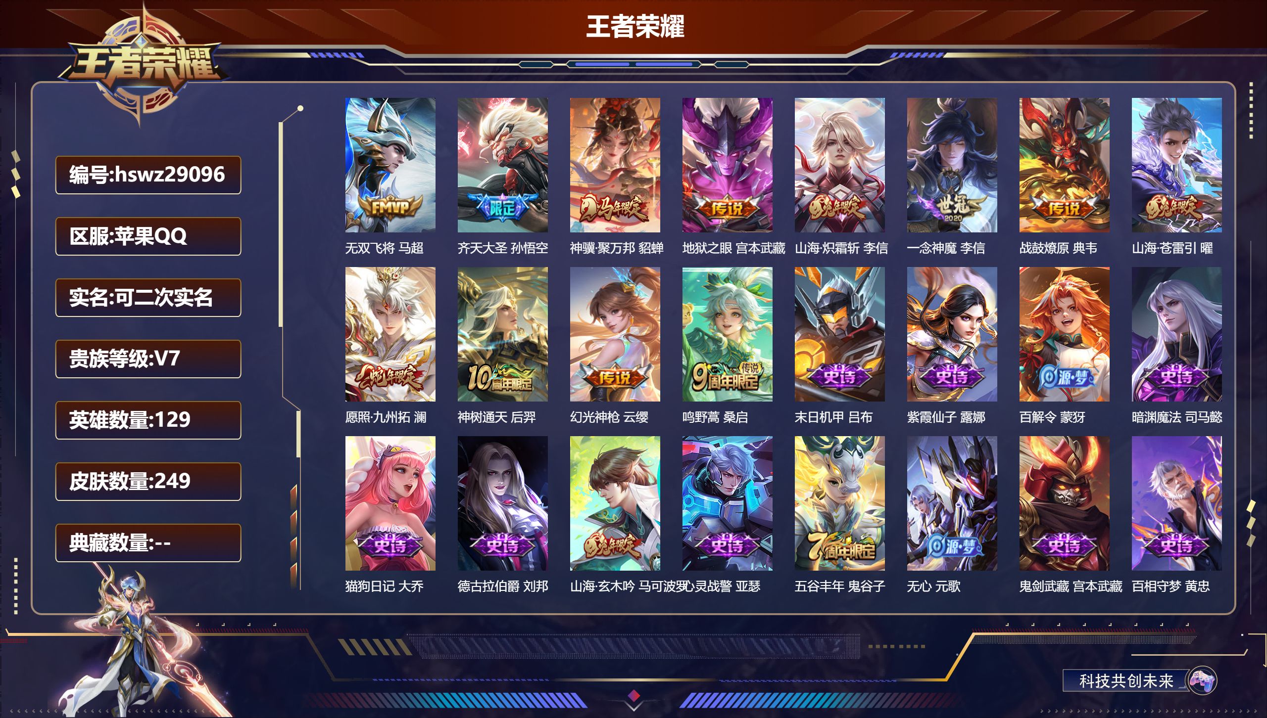 PX_2576910-【W7024】高质量精品打野号-财神纳福天幕-韩信弑枪猎影.花木兰九霄神辉典藏-暃靠朽木白哉珍品-蛇年司空震愿照·山河定.澜愿照·九州拓.时之思念.未来机甲星元-FMVP逐花归海.怒海麟威.无双飞将.炽阳神光.白虎志.神威.大圣娶亲-苹果Q-有二次-贵8-129英雄-294皮肤-3典藏-23传说-1珍品-106限定-86史诗-2星元-14按键-2天幕-百朵花花-107夺宝幸运值-满铭文-19印记-贵族积分86300-营地ID:475879653,【星元皮肤】:刘备时之思念,孙尚香未来机甲