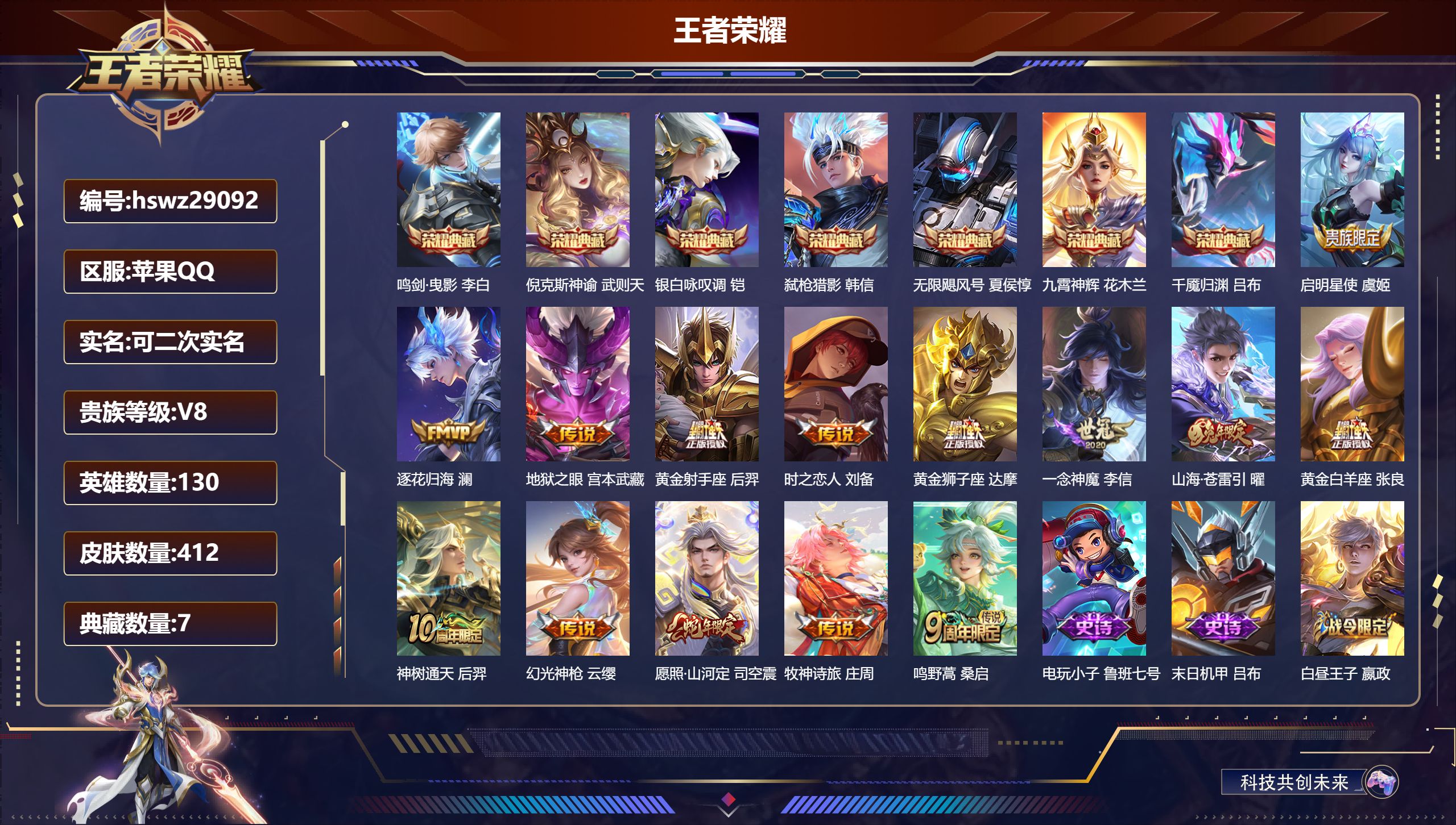 PX_2576910-【W7024】高质量精品打野号-财神纳福天幕-韩信弑枪猎影.花木兰九霄神辉典藏-暃靠朽木白哉珍品-蛇年司空震愿照·山河定.澜愿照·九州拓.时之思念.未来机甲星元-FMVP逐花归海.怒海麟威.无双飞将.炽阳神光.白虎志.神威.大圣娶亲-苹果Q-有二次-贵8-129英雄-294皮肤-3典藏-23传说-1珍品-106限定-86史诗-2星元-14按键-2天幕-百朵花花-107夺宝幸运值-满铭文-19印记-贵族积分86300-营地ID:475879653,【星元皮肤】:刘备时之思念,孙尚香未来机甲