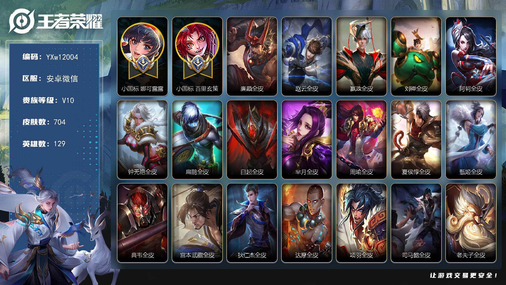 PX_2576200-??价比打野704皮贵族v10·57段打野·47段发育路·1.4w小国娜可露露·1.2w小国百里玄策·15个金标·2w亲昵度灵宝·秋月华灯天幕·904个性戳戳·8典藏·9无双·7珍品·120传说·9星传说·玉鸾吟·岁雨灵司·雅典娜全皮·大乔全皮·公孙离全皮·狄仁杰全皮·花木兰全皮·露娜全皮·西施全皮·杨玉环全皮·嫦娥全皮·曜全皮·澜全皮·可二次】YXw12004-安卓WX-129英雄-704皮肤-26王者印记-300铭文-贵族积分45w【贵族10】【8典藏·9无双·7珍品·9星传说·120传说·1天幕·26按键·904个性戳戳】【因赛季更新游戏段付以上号为准!】,【荣耀典藏】:武则天英雄,夏侯惇无限飓风号,小乔天鹅之梦,芈月大秦宣太后,李白鸣剑曳影,诸葛亮星域神启,花木兰九霄神辉,虞姬神鉴启示录,【无双皮肤】:武则天神器明辉仪,妲己青丘九尾,瑶真我赫兹,小乔时之魔女,韩信群星魔术团,不知火舞花合斗,公孙离离恨烟,甄姬雪境奇遇,曜器灵螭龙剑,【珍品传说】:孙策时之奇旅,嫦娥器灵落星盏,张飞兔狲蓬尾,瑶大耳狗之梦,安琪拉酷洛米之心,暃朽木白哉,宫本武藏黑崎一护,【星元皮肤】:李白玉鸾吟,诸葛亮岁雨灵司,鲁班七号寅虎焰心,虞姬无限倾慕,刘备时之思念,孙尚香未来机甲,武则天幻海之心,宫本武藏幽冥之眼,貂蝉金色仲夏夜,【天幕】:秋月华灯天幕,【传说皮肤】:后羿神树通天,司马懿九山相柳,公孙离云诺千山,西施续相思,杨玉环星之鸣奏,后羿千劫归真,司空震愿照山河定,女娲愿照千秋盛,妲己愿照众生和,澜愿照九州拓,蔡文姬愿照福禄聚,虞姬愿照岁时盈,云缨幻光神枪,嬴政玄雷天君,王昭君映山客,桑启鸣野蒿,庄周牧神诗旅,夏侯惇霜北刀,铠冥王哈迪斯,朵莉亚心动手记,云中君群星魔术团,海月金乌负日,亚连落雪白狼,吕布曦玄引,貂蝉曦玄引,典韦战鼓燎原,孙尚香乘龙问璇玑,孙策乘龙淬吴钩,赵云乘龙铭钟鼎,澜逐花归海,艾琳觅芳踪,露娜霜月吟,孙膑小动物乐团,狄仁杰夜礼服假面,王昭君永恒水手月亮,甄姬至美化雀舞,大乔时之奇旅,鲁班七号时之奇旅,兰陵王影龙天霄,宫本武藏惊梅引,云缨鹤归松栖,上官婉儿妄想奇谈,马可波罗妄想实况,东皇太一灼幽烈阳,诸葛亮鹤羽星尊,澜电玩雷克斯,亚瑟追逃游戏,安琪拉追逃游戏,张飞百相守梦,公孙离记忆之芯,夏洛特浮生妄,干将莫邪画中仙,花木兰燃星之曲,虞姬无限倾心,项羽无限倾心,伽罗炽翼辉光,孙悟空齐天大圣,小乔山海琳琅生,曜山海苍雷引,李信山海炽霜斩,吕布怒海麟威,李白诗剑行,狄仁杰神器狴犴令,不知火舞绯月行,王昭君星穹之声,百里守约碎云,橘右京枫霜尽,娜可露露前尘镜,孙尚香音你闪耀,马可波罗深海之息,马超无双飞将,大乔挚爱花嫁,孙策挚爱之约,露娜启示之音,蔡文姬花朝如约,女娲补天,孙策末日机甲,瑶时之祈愿,裴擒虎寅虎赤拳,鲁班七号寅虎瑞焰,孙尚香异界灵契,貂蝉遇见胡旋,赵云淬星耀世,王昭君乞巧织情,西施游龙清影,曜李逍遥,,周瑜音你心动,小乔音你心动,李元芳飞鸢探春,兰陵王默契交锋,公孙离祈雪灵祝,诸葛亮时雨天司,铠绛天战甲,镜炽阳神光,虞姬启明星使,孙悟空零号赤焰,关羽武圣,曜云鹰飞将,李信一念神魔,刘备时之恋人,伽罗太华,貂蝉猫影幻舞,张良黄金白羊座,干将莫邪久胜战神,虞姬云霓雀翎,达摩黄金狮子座,百里玄策白虎志,花木兰冠军飞将,梦奇胖达荣荣,后羿黄金射手座,杨戬永曜之星,诸葛亮武陵仙君,貂蝉仲夏夜之梦,李白凤求凰,孙尚香末日机甲,宫本武藏地狱之眼,孙悟空地狱火,吕布天魔缭乱,武则天海洋之心,狄仁杰超时空战士,【限定皮肤】:白起狰,公孙离离恨烟,夏侯惇霜北刀,铠冥王哈迪斯,暃埋骨钱,蒙犽顽岩魄,蔡文姬夏日便利店,大乔绒语心约,虞姬夏日便利店,姜子牙天穹之誓,杨戬破阵退雄兵,李白谪仙醉月,狄仁杰阴阳师,小乔纯白花嫁,虞姬凯尔特女王,廉颇寅虎御盾,小乔山海琳琅生,赵云皇家上将,赵云引擎之心,赵云龙胆,赵云百木心枪,墨子神迹守卫,墨子降魔,妲己热情桑巴,妲己时之彼端,妲己时之奇旅,嬴政优雅恋人,嬴政白昼王子,孙尚香异界灵契,鲁班七号乒乒小将,鲁班七号寅虎瑞焰,鲁班七号时之奇旅,庄周云端筑梦师,庄周玄嵩,庄周高山流水,高渐离死亡摇滚,阿轲迷踪丽影,钟无艳王者之锤,钟无艳超时空战士,孙膑天狼运算者,孙膑寅虎展翼,扁鹊炼金王,扁鹊奇幻香踪,白起夜都怪侠,芈月重明,芈月白晶晶,芈月幻夜卜梦,吕布天魔缭乱,吕布猎兽之王,吕布御风骁将,周瑜真爱至上,周瑜赤莲之焰,元歌云间偶戏,元歌无心,夏侯惇朔风刀,夏侯惇匿光决锋者,甄姬幽恒,甄姬女儿国国王,甄姬游园惊梦,甄姬落雪兰心,甄姬至美化雀舞,曹操烛龙,曹操天狼征服者,典韦穷奇,典韦蓝屏警告,典韦岱宗,马可波罗逐梦之星,马可波罗暗影游猎,马可波罗深海之息,马可波罗山海玄木吟,马可波罗妄想实况,狄仁杰魔术师,狄仁杰万华元夜,狄仁杰神器狴犴令,达摩星际陆战队,达摩沙漠行僧,项羽海滩派对,项羽霸王别姬,项羽无限倾心,老夫子圣诞老人,老夫子醍醐杖,老夫子航海奇遇记,关羽冰锋战神,关羽武圣,关羽百相守梦,貂蝉逐梦之音,貂蝉遇见胡旋,安琪拉魔法小厨娘,安琪拉追逃游戏,程咬金演武夺筹,露娜一生所爱,露娜启示之音,刘邦夺宝奇兵,韩信逐梦之影,韩信飞衡,韩信傲雪梅枪,王昭君凤凰于飞,王昭君午后时光,王昭君星穹之声,兰陵王默契交锋,兰陵王影龙天霄,兰陵王驯魔猎人,兰陵王金庭之子,花木兰青春决赛季,