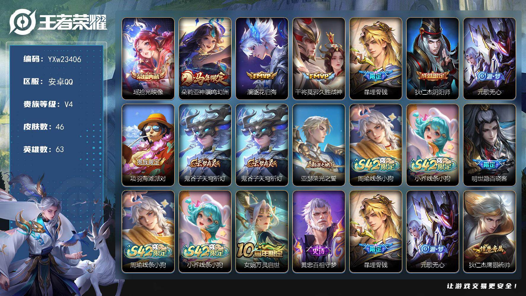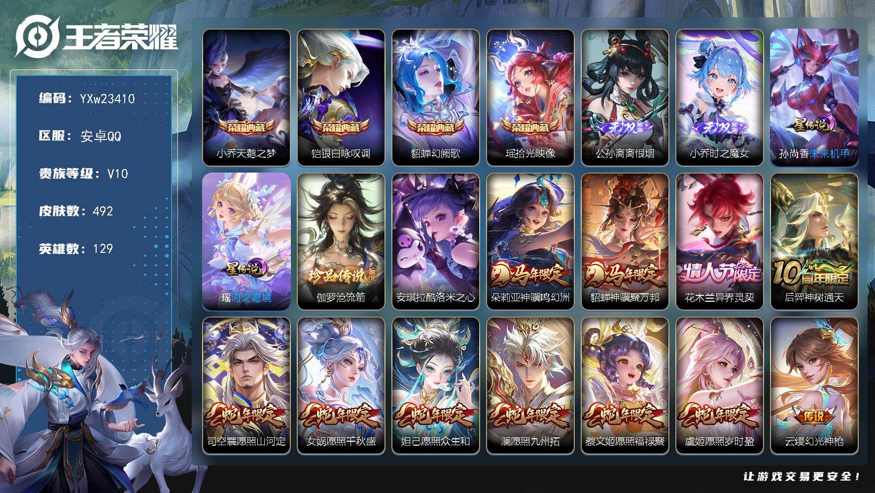 PX_2554075-??女号v10·49传说·紫瑶·棉花糖聚会天幕·墨染江湖天幕·时之魔女·离恨烟·酷洛米之心·沧流箭·夜礼服假面·永恒水手月亮·时之祈愿·神骥鸣幻洲·神骥聚万邦·花木兰异界灵契·山海琳琅生·绯月行·满蛇年·满龙年·满兔年·可二次】YXw23410-安卓Q-129英雄-492皮肤-17王者印记-210铭文-贵族积分10w【贵族10】【4典藏·2无双·2星传说·49传说·3天幕·13按键·6个性戳戳·幸运值】【因赛季更新游戏段付以上号为准!】 【英雄全皮】:刘禅全皮,孙权全皮,娜可露露全皮,东皇太一全皮,鬼谷子全皮,苏烈全皮,沈梦溪全皮,狂铁全皮,猪八戒全皮,敖隐全皮,鲁班大师全皮,夏洛特全皮,司空震全皮,戈娅全皮,空空儿全皮,影全皮 【荣耀典藏】:小乔天鹅之梦,铠银白咏叹调,貂蝉幻阙歌,瑶拾光映像 【无双皮肤】:公孙离离恨烟,小乔时之魔女 【珍品传说】:伽罗沧流箭,安琪拉酷洛米之心 【星元皮肤】:孙尚香未来机甲,瑶时之愿境 【天幕】:棉花糖聚会天幕,墨染江湖天幕,共赏芳华天幕 【传说皮肤】:朵莉亚神骥鸣幻洲,貂蝉神骥聚万邦,花木兰异界灵契,后羿神树通天,司空震愿照山河定,女娲愿照千秋盛,妲己愿照众生和,澜愿照九州拓,蔡文姬愿照福禄聚,虞姬愿照岁时盈,云缨幻光神枪,桑启鸣野蒿,孙尚香乘龙问璇玑,孙策乘龙淬吴钩,赵云乘龙铭钟鼎,艾琳觅芳踪,孙膑小动物乐团,狄仁杰夜礼服假面,王昭君永恒水手月亮,上官婉儿妄想奇谈,东皇太一灼幽烈阳,张飞百相守梦,公孙离记忆之芯,夏洛特浮生妄,小乔山海琳琅生,曜山海苍雷引,李信山海炽霜斩,吕布怒海麟威,李白诗剑行,不知火舞绯月行,王昭君星穹之声,橘右京枫霜尽,娜可露露前尘镜,马可波罗深海之息,瑶时之祈愿,孙尚香异界灵契,周瑜音你心动,公孙离祈雪灵祝,虞姬启明星使,李信一念神魔,貂蝉猫影幻舞,干将莫邪久胜战神,花木兰冠军飞将,梦奇胖达荣荣,后羿黄金射手座,李白凤求凰,孙尚香末日机甲,吕布天魔缭乱,武则天海洋之心 【限定皮肤】:白起狰,公孙离离恨烟,蔡文姬夏日便利店,虞姬夏日便利店,姜子牙天穹之誓,狄仁杰阴阳师,小乔纯白花嫁,廉颇寅虎御盾,小乔山海琳琅生,赵云皇家上将,赵云引擎之心,赵云龙胆,墨子神迹守卫,墨子降魔,妲己热情桑巴,嬴政优雅恋人,嬴政白昼王子,孙尚香蔷薇恋人,孙尚香异界灵契,鲁班七号狮舞东方,鲁班七号乒乒小将,庄周云端筑梦师,庄周高山流水,高渐离玩趣恶龙,阿轲迷踪丽影,钟无艳王者之锤,钟无艳超时空战士,孙膑天狼运算者,扁鹊奇幻香踪,白起夜都怪侠,芈月重明,芈月幻夜卜梦,吕布天魔缭乱,吕布猎兽之王,周瑜赤莲之焰,元歌无心,夏侯惇朔风刀,甄姬游园惊梦,甄姬落雪兰心,曹操烛龙,典韦穷奇,典韦岱宗,马可波罗暗影游猎,马可波罗深海之息,马可波罗山海玄木吟,狄仁杰魔术师,狄仁杰万华元夜,达摩星际陆战队,达摩沙漠行僧,项羽海滩派对,老夫子醍醐杖,老夫子航海奇遇记,关羽冰锋战神,貂蝉逐梦之音,安琪拉魔法小厨娘,程咬金演武夺筹,韩信傲雪梅枪,王昭君午后时光,王昭君星穹之声,兰陵王金庭之子,花木兰默契交锋,不知火舞绯月行,娜可露露前尘镜,橘右京枫霜尽,孙悟空美猴王,孙悟空至尊宝,孙悟空大圣娶亲,牛魔御旌,牛魔奔雷神使,后羿圣弓游侠,张飞虎魄,张飞百相守梦,李元芳银河之约,李元芳匿光侦查者,李元芳云中旅人,虞姬启明星使,钟馗神迹守卫,钟馗驱傩正仪,杨玉环遇见飞天,杨玉环寅虎心曲,杨戬潮玩骑兵,女娲朔望之晖,哪吒逐梦之翼,干将莫邪冰霜恋舞曲,干将莫邪胡桃夹子,雅典娜单词大作战,雅典娜黎明之约,蔡文姬奇迹圣诞,太乙真人饕餮,东皇太一逐梦之光,鬼谷子原初探秘者,鬼谷子五谷丰年,黄忠火炮绅士,铠青龙志,苏烈玄武志,苏烈千军破阵,百里玄策原初追逐者,弈星混沌棋,梦奇顽趣,公孙离蜜橘之夏,公孙离祈雪灵祝,公孙离玉兔公主,沈梦溪星空之诺,沈梦溪大漠名商,沈梦溪匿光破解者,明世隐疑决卦,明世隐吟游魔法,裴擒虎李小龙,裴擒虎擒涛扼浪,狂铁御狮,狂铁电玩高手,米莱狄御霄,米莱狄胡桃异想国,瑶时之祈愿,瑶山海碧波行,云中君纤云弄巧,云中君时之祈愿,李信山海炽霜斩,盾山御銮,猪八戒西部大镖客,猪八戒猪悟能,上官婉儿梁祝,上官婉儿神器万象笔,上官婉儿妄想奇谈,嫦娥拒霜思,嫦娥暖冬兔眠,曜山海苍雷引,西施玲珑珍味,鲁班大师匿光启智者,鲁班大师探海日志,桑启海盐诗旅,夏洛特浮生妄,暃星界游侠,戈娅驭风魔法,艾琳流音漫舞,司空震地狱燃心,阿古朵江河有灵,张良古海寻踪,王昭君永恒水手月亮,狄仁杰夜礼服假面,裴擒虎梅西,蒙犽百解令,艾琳觅芳踪,蒙恬荣光圣徽,高渐离燃音魔法,妲己灵卜魔法,鬼谷子天穹祈灯,伽罗琥珀纪元,小乔时之魔女,大乔乘龙忆丹青,安琪拉乘龙聚宝船,孙尚香乘龙问璇玑,孙策乘龙淬吴钩,赵云乘龙铭钟鼎,沈梦溪龙舞盛年,鲁班七号蔬乡物语,李元芳蔬乡物语,刘邦剑破天穹,程咬金群星魔术团,镜青焰无极,项羽苍威无极,周瑜熔金海岸 【年限皮肤】:孙悟空美猴王,李白凤求凰,苏烈玄武志,铠青龙志,典韦岱宗,公孙离祈雪灵祝,牛魔奔雷神使,廉颇寅虎御盾,杨玉环寅虎心曲,小乔山海琳琅生,曜山海苍雷引,李信山海炽霜斩,瑶山海碧波行,马可波罗山海玄木吟,孙尚香乘龙问璇玑,孙策乘龙淬吴钩,赵云乘龙铭钟鼎,大乔乘龙忆丹青,安琪拉乘龙聚宝船,司空震愿照山河定,女娲愿照千秋盛,妲己愿照众生和,澜愿照九州