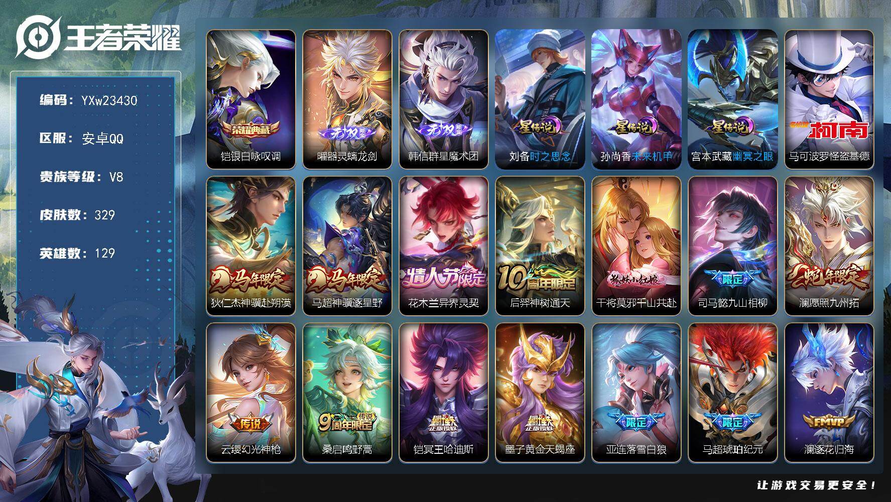 PX_2554082-??价比·黛西宝·全皮马超·银白咏叹调·器灵螭龙剑·韩信群星魔术团·基德·财神纳福天幕·白虎志·神骥赴朔漠·愿照九州拓·冥王哈迪斯·落雪白狼·山海苍雷引·山海炽霜斩·可二次】YXw23430-安卓Q-129英雄-326皮肤-12王者印记-230铭文-贵族积分8w【贵族8】【1典藏·2无双·珍品·3星传说·34传说·1天幕·17按键】【因赛季更新游戏段付以上号为准!】 【英雄全皮】:刘禅全皮,司马懿全皮,孙权全皮,马超全皮,敖隐全皮,戈娅全皮,空空儿全皮 【荣耀典藏】:铠银白咏叹调 【无双皮肤】:曜器灵螭龙剑,韩信群星魔术团 【珍品传说】:马可波罗怪盗基德 【星元皮肤】:宫本武藏幽冥之眼,刘备时之思念,孙尚香未来机甲 【天幕】:财神纳福天幕 【传说皮肤】:狄仁杰神骥赴朔漠,马超神骥逐星野,花木兰异界灵契,后羿神树通天,干将莫邪千山共赴,司马懿九山相柳,澜愿照九州拓,云缨幻光神枪,桑启鸣野蒿,铠冥王哈迪斯,墨子黄金天蝎座,亚连落雪白狼,马超琥珀纪元,澜逐花归海,曜山海苍雷引,李信山海炽霜斩,李白诗剑行,马超无双飞将,赵云淬星耀世,诸葛亮时雨天司,铠绛天战甲,镜炽阳神光,虞姬启明星使,曜云鹰飞将,李信一念神魔,刘备时之恋人,貂蝉猫影幻舞,张良黄金白羊座,达摩黄金狮子座,百里玄策白虎志,后羿黄金射手座,李白凤求凰,孙尚香末日机甲,宫本武藏地狱之眼 【限定皮肤】:铠冥王哈迪斯,暃埋骨钱,姜子牙天穹之誓,杨戬破阵退雄兵,狄仁杰阴阳师,赵云皇家上将,孙尚香蔷薇恋人,扁鹊奇幻香踪,元歌无心,马可波罗暗影游猎,狄仁杰魔术师,达摩沙漠行僧,项羽海滩派对,韩信傲雪梅枪,兰陵王金庭之子,孙悟空至尊宝,孙悟空大圣娶亲,孙悟空孙行者,李元芳云中旅人,虞姬启明星使,钟馗驱傩正仪,杨戬潮玩骑兵,干将莫邪胡桃夹子,鬼谷子五谷丰年,诸葛亮时雨天司,苏烈千军破阵,百里玄策白虎志,百里玄策原初追逐者,梦奇顽趣,沈梦溪大漠名商,裴擒虎擒涛扼浪,云中君纤云弄巧,云中君时之祈愿,李信山海炽霜斩,上官婉儿梁祝,嫦娥拒霜思,嫦娥暖冬兔眠,曜山海苍雷引,西施玲珑珍味,蒙犽狂想玩偶喵,鲁班大师探海日志,桑启海盐诗旅,暃星界游侠,戈娅驭风魔法,阿古朵江河有灵,张良古海寻踪,蒙犽百解令,蒙恬荣光圣徽,高渐离燃音魔法,妲己灵卜魔法,鬼谷子天穹祈灯,马超琥珀纪元,亚连落雪白狼,沈梦溪龙舞盛年,鲁班七号蔬乡物语,李元芳蔬乡物语,刘邦剑破天穹,程咬金群星魔术团,韩信群星魔术团,镜青焰无极,项羽苍威无极,周瑜熔金海岸 【年限皮肤】:李白凤求凰,百里玄策白虎志,诸葛亮时雨天司,曜山海苍雷引,李信山海炽霜斩,澜愿照九州拓 【赛季限定】:钟馗驱傩正仪,苏烈千军破阵,达摩沙漠行僧,兰陵王金庭之子,沈梦溪大漠名商,李元芳云中旅人,桑启海盐诗旅,裴擒虎擒涛扼浪,鲁班大师探海日志,张良古海寻踪,鬼谷子天穹祈灯,刘邦剑破天穹,姜子牙天穹之誓,东皇太一噬灭天穹,太乙真人谧流熔炉,钟馗虚灵犬护,甄姬逆浪荇歌,亚瑟荣光之誓,百里玄策原初追逐者,梦奇顽趣,蒙恬荣光圣徽,牛魔星界战将,项羽九幽镇关 【战令限定】:马可波罗暗影游猎,蒙犽狂想玩偶喵,暃星界游侠,嫦娥暖冬兔眠,扁鹊奇幻香踪,杨戬潮玩骑兵,戈娅驭风魔法,西施玲珑珍味,高渐离燃音魔法,妲己灵卜魔法,鲁班七号蔬乡物语,李元芳蔬乡物语,镜青焰无极,项羽苍威无极,亚连破空之剑,孙膑茶境仙,马超访茗客,刘禅鸭鸭历险记,沈梦溪鸭鸭历险记,周瑜百相守梦,孙策百相守梦,莱西奥光弋星穹,明世隐往忆晖光,周瑜线条小狗,小乔线条小狗 【史诗皮肤】:钟馗锁墨魂,明世隐百晓客,周瑜线条小狗,小乔线条小狗,项羽九幽镇关,少司缘巫礼祀神,女娲万灵启世,百里玄策罗小黑战记,莱西奥光弋星穹,西施织梦人,黄忠百相守梦,周瑜百相守梦,后羿石田雨龙,百里守约雪豹霜爪,扁鹊灵蛊蚀心,狂铁龙之律动,刘禅鸭鸭历险记,阿轲化蝶舞,赵怀真器灵浮梦炉,孙膑茶境仙,牛魔星界战将,亚连破空之剑,暃埋骨钱,镜青焰无极,鲁班七号蔬乡物语,蒙恬荣光圣徽,高渐离燃音魔法,妲己灵卜魔法,蒙犽百解令,阿古朵江河有灵,百里守约真我赫兹,戈娅驭风魔法,刘禅电玩爆裂旋风,扁鹊奇幻香踪,暃星界游侠,梦奇顽趣,元歌无心,鬼谷子五谷丰年,高渐离天秀音浪,澜赏金猎手,云中君时之祈愿,韩信傲雪梅枪,嫦娥拒霜思,司马懿暗渊魔法,孙悟空孙行者,钟馗乐园奇幻夜,云中君纤云弄巧,百里玄策原初追逐者,蒙犽狂想玩偶喵,马可波罗暗影游猎,孙尚香时之恋人,马超神威,橘右京修罗,上官婉儿梁祝,狄仁杰鹰眼统帅,伽罗箭羽风息,孙悟空大圣娶亲,大乔猫狗日记,孙策猫狗日记,阿轲节奏热浪,白起星夜王子,程咬金功夫厨神,李元芳逐浪之夏,刘禅天才门将,蔡文姬舞动绿茵,铠曙光守护者,百里守约特工魅影,安琪拉心灵骇客,雅典娜冰冠公主,亚瑟心灵战警,兰陵王暗隐猎兽者,小乔缤纷独角兽,夏侯惇乘风破浪,刘邦德古拉伯爵,花木兰水晶猎龙者,孙悟空至尊宝,韩信白龙吟,张飞乱世虎臣,吕布末日机甲,李白千年之狐,曹操幽灵船长,刘禅绅士熊喵,吕布圣诞狂欢,墨子金属风暴,妲己女仆咖啡,妲己魅力维加斯,嬴政摇滚巨星,嬴政暗夜贵公子,孙尚香水果甜心,孙尚香蔷薇恋人,宫本武藏鬼剑武藏,廉颇地狱岩魂,狄仁杰魔术师,王昭君偶像歌手,甄姬冰雪圆舞曲,貂蝉圣诞恋歌,赵云未来纪元,赵云皇家上将,阿轲暗夜猫娘,露娜紫霞仙子,项羽苍穹之光 