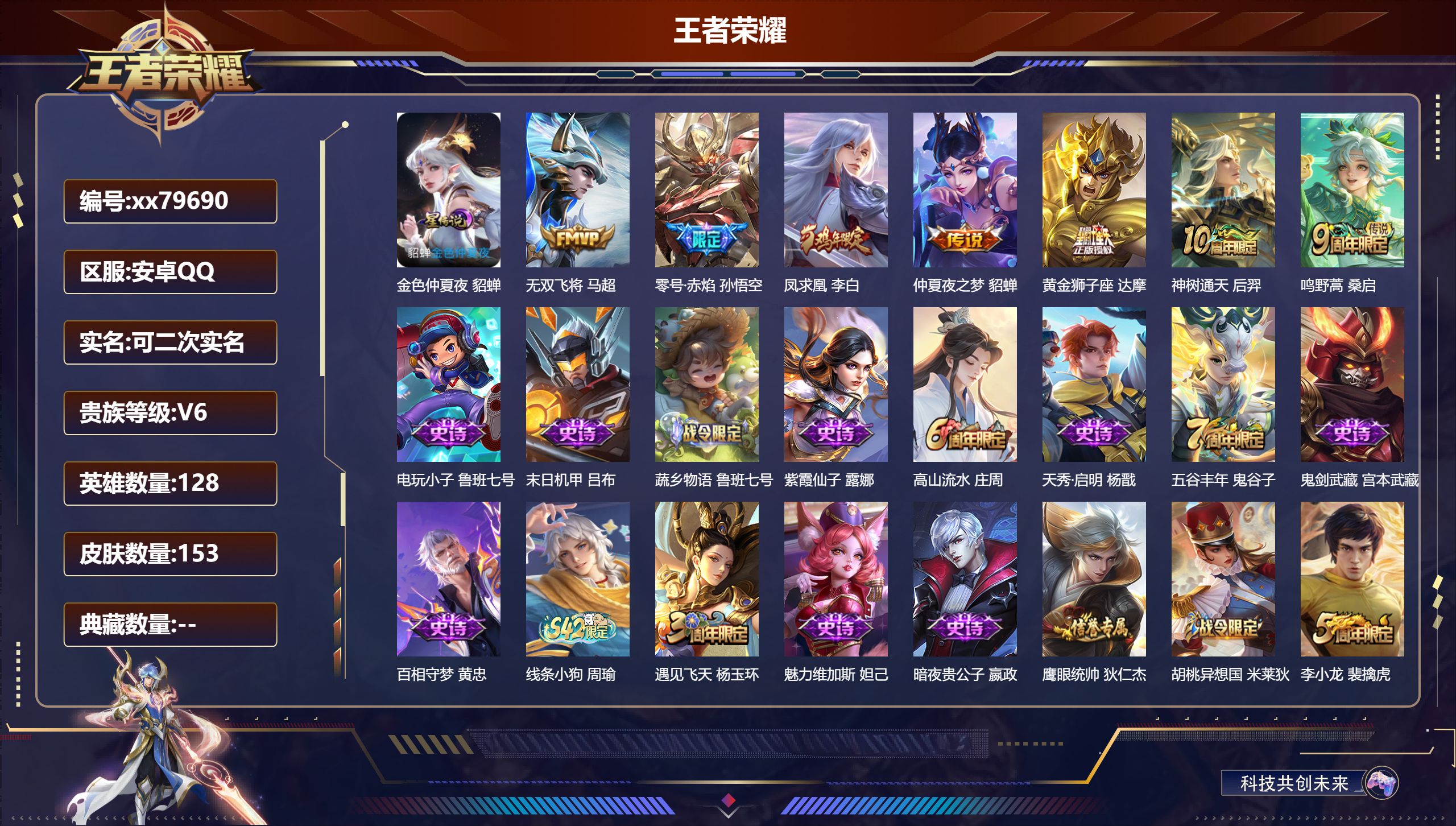 PX_2570810-可换绑【高质量精品梅西号·梅西·铠孙悟空典藏·马超马限·虞姬澜蛇限·孙尚香龙限·武陵仙君·涂山容容·玄木吟·一生所爱·大圣娶亲·蜜橘之夏·青春决赛季·神奇女侠·引擎之心·至尊宝·冰锋战神】1星传说,1天幕,6按键,12王者印记,满级铭文,无二次安卓Q-V8-305皮肤-2典藏皮肤-13传说-72史诗【英雄全皮】:哪吒全皮,影全皮【荣耀典藏】:孙悟空全息碎影,铠银白咏叹调【星元皮肤】:宫本武藏幽冥之眼【天幕】:妄想时刻天幕【传说皮肤】:马超神骥逐星野,澜愿照九州拓,虞姬愿照岁时盈,桑启鸣野蒿,孙尚香乘龙问璇玑,李白诗剑行,虞姬启明星使,张良黄金白羊座,达摩黄金狮子座,花木兰冠军飞将,后羿黄金射手座,诸葛亮武陵仙君,宫本武藏地狱之眼【限定皮肤】:白起狰,姜子牙天穹之誓,狄仁杰阴阳师,赵云皇家上将,赵云引擎之心,嬴政优雅恋人,嬴政白昼王子,庄周云端筑梦师,庄周高山流水,芈月重明,吕布猎兽之王,元歌无心,夏侯惇朔风刀,甄姬游园惊梦,曹操烛龙,典韦穷奇,马可波罗逐梦之星,马可波罗山海玄木吟,狄仁杰魔术师,狄仁杰万华元夜,达摩沙漠行僧,项羽海滩派对,老夫子圣诞老人,老夫子醍醐杖,关羽冰锋战神,程咬金演武夺筹,露娜一生所爱,韩信逐梦之影,兰陵王金庭之子,花木兰青春决赛季,孙悟空美猴王,孙悟空至尊宝,孙悟空大圣娶亲,牛魔御旌,李元芳云中旅人,虞姬启明星使,钟馗驱傩正仪,杨玉环遇见飞天,哪吒逐梦之翼,雅典娜黎明之约,太乙真人饕餮,鬼谷子原初探秘者,诸葛亮武陵仙君,苏烈千军破阵,弈星混沌棋,公孙离蜜橘之夏,沈梦溪大漠名商,明世隐疑决卦,裴擒虎擒涛扼浪,狂铁御狮,米莱狄御霄,盾山御銮,鲁班大师探海日志,桑启海盐诗旅,艾琳女武神,张良古海寻踪,裴擒虎梅西,蒙恬荣光圣徽,鬼谷子天穹祈灯,孙尚香乘龙问璇玑,百里玄策超元猎域,沈梦溪龙舞盛年,鲁班七号蔬乡物语,李元芳蔬乡物语,刘邦剑破天穹,上官婉儿群星魔术团,程咬金群星魔术团,镜青焰无极,项羽苍威无极,刘备异域游侠【年限皮肤】:孙悟空美猴王,马可波罗山海玄木吟,孙尚香乘龙问璇玑,澜愿照九州拓,虞姬愿照岁时盈【赛季限定】:白起狰,太乙真人饕餮,曹操烛龙,芈月重明,典韦穷奇,狂铁御狮,米莱狄御霄,牛魔御旌,盾山御銮,夏侯惇朔风刀,弈星混沌棋,明世隐疑决卦,老夫子醍醐杖,鬼谷子原初探秘者,狄仁杰万华元夜,程咬金演武夺筹,钟馗驱傩正仪,苏烈千军破阵,达摩沙漠行僧,兰陵王金庭之子,沈梦溪大漠名商,李元芳云中旅人,桑启海盐诗旅,裴擒虎擒涛扼浪,鲁班大师探海日志,张良古海寻踪,鬼谷子天穹祈灯,刘邦剑破天穹,姜子牙天穹之誓,东皇太一噬灭天穹,太乙真人谧流熔炉,钟馗虚灵犬护,甄姬逆浪荇歌,亚瑟荣光之誓,雅典娜黎明之约,蒙恬荣光圣徽,牛魔星界战将,项羽九幽镇关【战令限定】:嬴政白昼王子,吕布猎兽之王,鲁班七号蔬乡物语,李元芳蔬乡物语,镜青焰无极,项羽苍威无极,廉颇撼地雄心,周瑜线条小狗,小乔线条小狗【史诗皮肤】:海月海之女神,周瑜线条小狗,小乔线条小狗,项羽九幽镇关,公孙离涂山容容,狂铁龙之律动,阿轲化蝶舞,牛魔星界战将,廉颇撼地雄心,镜青焰无极,上官婉儿群星魔术团,鲁班七号蔬乡物语,百里玄策超元猎域,蒙恬荣光圣徽,马可波罗山海玄木吟,元歌无心,澜赏金猎手,哪吒雪上飞焰,雅典娜黎明之约,庄周高山流水,杨戬天秀启明,不知火舞魅语,娜可露露晚萤,狄仁杰鹰眼统帅,孙悟空大圣娶亲,露娜一生所爱,孙策猫狗日记,嬴政白昼王子,杨玉环遇见飞天,阿轲节奏热浪,白起星夜王子,李元芳逐浪之夏,公孙离蜜橘之夏,刘禅天才门将,哪吒逐梦之翼,裴擒虎梅西,百里守约特工魅影,花木兰青春决赛季,庄周云端筑梦师,安琪拉心灵骇客,雅典娜冰冠公主,亚瑟心灵战警,马可波罗逐梦之星,甄姬游园惊梦,诸葛亮黄金分割率,兰陵王暗隐猎兽者,夏侯惇乘风破浪,韩信逐梦之影,刘邦德古拉伯爵,花木兰水晶猎龙者,赵云引擎之心,孙悟空至尊宝,关羽冰锋战神,韩信白龙吟,张飞乱世虎臣,李白千年之狐,曹操幽灵船长,刘禅绅士熊喵,吕布圣诞狂欢,墨子金属风暴,妲己魅力维加斯,嬴政摇滚巨星,嬴政优雅恋人,孙尚香水果甜心,宫本武藏鬼剑武藏,狄仁杰魔术师,甄姬冰雪圆舞曲,老夫子圣诞老人,貂蝉圣诞恋歌,赵云未来纪元,赵云皇家上将,露娜紫霞仙子,项羽苍穹之光,鲁班七号电玩小子【其他皮肤】:影百相守梦,兰陵王雾影缉谜,虞姬溯影追猎,艾琳鹤鸣心笺,亚瑟荣光之誓,哪吒罗小黑战记,鬼谷子克喵,莱西奥踏浪烽翎,云中君云械蓝图,甄姬逆浪荇歌,阿古朵布丁狗之约,张良灵野札记,苏烈春野闲踪,钟馗虚灵犬护,刘备浪漫序章,戈娅玫蓝誓约,明世隐景韶洛都,少司缘灵卦秘语,达摩爆裂喵拳,姜子牙星梦巡礼,影魅影绮裳,太乙真人谧流熔炉,干将莫邪雾都夜雨,亚瑟动物派对,东皇太一噬灭天穹,盘古敬我三分,姜子牙天穹之誓,刘备异域游侠,大司命暗都幽影,项羽苍威无极,程咬金群星魔术团,刘邦剑破天穹,李元芳蔬乡物语,钟无艳春野之旅,沈梦溪龙舞盛年,廉颇功夫炙烤,鬼谷子天穹祈灯,后羿完美运算,张良古海寻踪,哪吒热血海滩,李元芳妄想特派,姬小满零食大作战,鲁班大师探海日志,太乙真人劲辣红锅,裴擒虎擒涛扼浪,赵怀真太极少年,猪八戒潮玩探月行,桑启海盐诗旅,李元芳云中旅人,蒙恬蔚蓝守将,蒙犽胡桃狂想曲,沈梦溪大漠名商,兰陵王金庭之子,程咬金无双