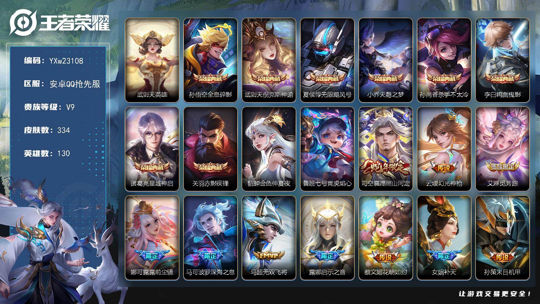 PX_2555057-??服·精品9典藏贵族v10·1背包未使用水晶·小国苍·9典藏·2星传说·33传说·11按键·535个性戳戳·4天幕·寅虎焰心·金色貂蝉·挚爱童话天幕·花朝如约天幕·金虎啸春天幕·可二次】YXw23108-安卓Q-130英雄-334皮肤-10王者印记-233铭文-贵族积分33w【贵族v10】【9典藏·2星传说·33传说·4天幕·11按键·535个性戳戳】【因赛季更新游戏段付以上号为准!】 【英雄全皮】:刘邦全皮,孙权全皮,娜可露露全皮 【荣耀典藏】:武则天英雄,孙悟空全息碎影,武则天倪克斯神谕,夏侯惇无限飓风号,小乔天鹅之梦,孙尚香杀手不太冷,李白鸣剑曳影,诸葛亮星域神启,关羽赤影疾锋 【星元皮肤】:鲁班七号寅虎焰心,貂蝉金色仲夏夜 【天幕】:挚爱童话天幕,花朝如约天幕,金虎啸春天幕,共赏芳华天幕 【传说皮肤】:司空震愿照山河定,云缨幻光神枪,艾琳觅芳踪,娜可露露前尘镜,马可波罗深海之息,马超无双飞将,露娜启示之音,蔡文姬花朝如约,女娲补天,孙策末日机甲,瑶时之祈愿,裴擒虎寅虎赤拳,鲁班七号寅虎瑞焰,赵云淬星耀世,王昭君乞巧织情,西施游龙清影,周瑜音你心动,小乔音你心动,李元芳飞鸢探春,铠绛天战甲,镜炽阳神光,虞姬启明星使,关羽武圣,曜云鹰飞将,李信一念神魔,刘备时之恋人,貂蝉猫影幻舞,张良黄金白羊座,干将莫邪久胜战神,达摩黄金狮子座,后羿黄金射手座,诸葛亮武陵仙君,貂蝉仲夏夜之梦 【限定皮肤】:狄仁杰阴阳师,廉颇寅虎御盾,赵云皇家上将,赵云百木心枪,墨子神迹守卫,嬴政优雅恋人,孙尚香蔷薇恋人,鲁班七号狮舞东方,鲁班七号寅虎瑞焰,庄周高山流水,阿轲迷踪丽影,钟无艳超时空战士,孙膑寅虎展翼,白起夜都怪侠,芈月幻夜卜梦,周瑜赤莲之焰,元歌云间偶戏,元歌无心,夏侯惇朔风刀,夏侯惇匿光决锋者,甄姬落雪兰心,马可波罗深海之息,狄仁杰魔术师,狄仁杰万华元夜,达摩沙漠行僧,项羽海滩派对,老夫子醍醐杖,老夫子航海奇遇记,关羽武圣,程咬金演武夺筹,露娜一生所爱,露娜启示之音,刘邦夺宝奇兵,韩信傲雪梅枪,王昭君午后时光,兰陵王金庭之子,娜可露露前尘镜,后羿圣弓游侠,李元芳银河之约,李元芳云中旅人,虞姬启明星使,钟馗驱傩正仪,杨玉环寅虎心曲,女娲补天,干将莫邪真爱魔法,雅典娜黎明之约,鬼谷子原初探秘者,鬼谷子五谷丰年,诸葛亮武陵仙君,黄忠火炮绅士,苏烈千军破阵,弈星混沌棋,公孙离玉兔公主,沈梦溪星空之诺,沈梦溪大漠名商,明世隐疑决卦,明世隐吟游魔法,裴擒虎李小龙,裴擒虎寅虎赤拳,裴擒虎擒涛扼浪,狂铁电玩高手,瑶时之祈愿,云中君纤云弄巧,云中君时之祈愿,上官婉儿梁祝,嫦娥暖冬兔眠,鲁班大师探海日志,桑启海盐诗旅,暃星界游侠,张良古海寻踪,蒙犽百解令,艾琳觅芳踪,鬼谷子天穹祈灯,沈梦溪龙舞盛年,刘邦剑破天穹,程咬金群星魔术团,刘备异域游侠 【年限皮肤】:裴擒虎寅虎赤拳,鲁班七号寅虎瑞焰,孙膑寅虎展翼,廉颇寅虎御盾,杨玉环寅虎心曲,司空震愿照山河定 【赛季限定】:夏侯惇朔风刀,弈星混沌棋,明世隐疑决卦,老夫子醍醐杖,鬼谷子原初探秘者,狄仁杰万华元夜,程咬金演武夺筹,钟馗驱傩正仪,苏烈千军破阵,达摩沙漠行僧,兰陵王金庭之子,沈梦溪大漠名商,李元芳云中旅人,桑启海盐诗旅,裴擒虎擒涛扼浪,鲁班大师探海日志,张良古海寻踪,鬼谷子天穹祈灯,刘邦剑破天穹,甄姬逆浪荇歌,雅典娜黎明之约 【战令限定】:鲁班七号狮舞东方,周瑜赤莲之焰,李元芳银河之约,沈梦溪星空之诺,阿轲迷踪丽影,刘邦夺宝奇兵,元歌云间偶戏,老夫子航海奇遇记,墨子神迹守卫,干将莫邪真爱魔法,后羿圣弓游侠,黄忠火炮绅士,芈月幻夜卜梦,明世隐吟游魔法,白起夜都怪侠,狂铁电玩高手,王昭君午后时光,钟无艳超时空战士,甄姬落雪兰心,暃星界游侠,嫦娥暖冬兔眠,周瑜线条小狗 【史诗皮肤】:钟馗锁墨魂,周瑜线条小狗,后羿石田雨龙,蒙犽百解令,暃星界游侠,元歌无心,鬼谷子五谷丰年,钟无艳超时空战士,张良千筹问战,狂铁电玩高手,高渐离天秀音浪,貂蝉唤灵魅影,夏侯惇匿光决锋者,明世隐吟游魔法,艾琳奇遇舞章,澜赏金猎手,公孙离玉兔公主,赵云百木心枪,夏洛特永昼,云中君时之祈愿,哪吒雪上飞焰,孙膑寅虎展翼,廉颇寅虎御盾,杨玉环寅虎心曲,韩信傲雪梅枪,雅典娜黎明之约,黄忠火炮绅士,司马懿暗渊魔法,庄周高山流水,安琪拉时之奇旅,干将莫邪真爱魔法,老夫子航海奇遇记,蒙犽龙鼓争鸣,百里玄策热力回旋,元歌云间偶戏,云中君纤云弄巧,裴擒虎李小龙,孙尚香时之恋人,橘右京修罗,阿轲迷踪丽影,不知火舞魅语,娜可露露晚萤,李元芳银河之约,上官婉儿梁祝,公孙离无限星赏官,狄仁杰鹰眼统帅,鲁班七号狮舞东方,伽罗箭羽风息,露娜一生所爱,大乔猫狗日记,孙策猫狗日记,阿轲节奏热浪,白起星夜王子,程咬金功夫厨神,李元芳逐浪之夏,刘禅天才门将,蔡文姬舞动绿茵,百里守约特工魅影,安琪拉心灵骇客,雅典娜冰冠公主,亚瑟心灵战警,诸葛亮黄金分割率,兰陵王暗隐猎兽者,小乔缤纷独角兽,夏侯惇乘风破浪,刘邦德古拉伯爵,花木兰水晶猎龙者,张飞乱世虎臣,吕布末日机甲,曹操幽灵船长,刘禅绅士熊喵,吕布圣诞狂欢,墨子金属风暴,墨子龙骑士,妲己女仆咖啡,妲己魅力维加斯,嬴政摇滚巨星,嬴政暗夜贵公子,嬴政优雅恋人,孙尚香水果甜心,孙尚香蔷薇恋人,宫本武藏鬼剑武藏,廉颇地狱岩魂,狄仁杰魔术师,王昭君偶像歌手,甄姬冰雪圆舞曲,貂蝉圣诞