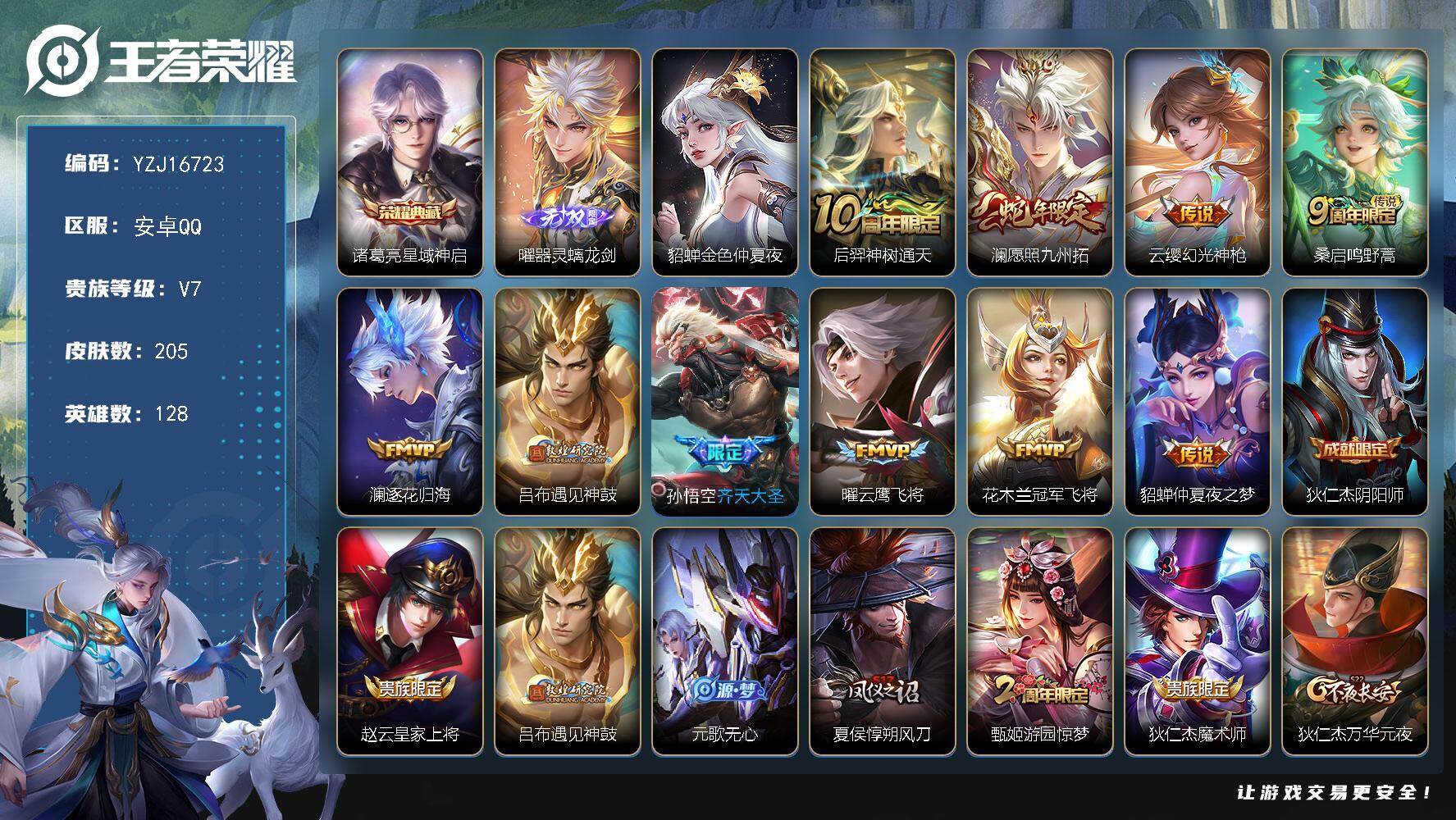 PX_2555063-??可二次,安卓q-V7,精品小号(3000紫云币),205皮肤1典藏1无双10传说1星元,【典藏】,星域神启,【无双】,器灵螭龙剑,【星元】,金色仲夏夜,【传说】,逐花归海,遇见神鼓,神树通天,幻光神枪,愿照九州拓,鸣野蒿,齐天大圣,云鹰飞将,冠军飞将,仲夏夜之梦,【热门】万灵启世,百晓客,辉光之辰,拒霜思,匿光侦查者,冰冠公主,梁祝,银翎春语,电玩小子,燃音魔法,百解令,真我赫兹百里,原初探秘者,李小龙,水晶猎龙者,暗隐猎兽者,猫狗日记男,金属风暴,地狱岩魂,特工魅影,曙光守护者,特工战影,女武神,逐浪之夏,心灵战警,魅语,千年之狐,功夫厨神,心灵骇客,圣诞恋歌,幽灵船长,乘风破浪,末日机甲男,星夜王子,天才门将,偶像歌手,街头霸王,箭羽风息,缤纷独角兽,鬼剑武藏,冰雪圆舞曲,花好人间,御銮,朔风刀,混沌棋,疑决卦,醍醐杖,万华元夜,演武夺筹,驱傩正仪,未来纪元赵云,拳王,沙漠行僧,女仆咖啡,霸王丸,云中旅人,海盐诗旅,科学大爆炸,皇家上将,擒涛扼浪,魅力维加斯,探海日志,水果甜心,古海寻踪,天穹祈灯,无心,驭风魔法,地狱燃心,江河有灵,纤云弄巧,游园惊梦,五谷丰年,繁星吟游,乱世虎臣,鹰眼统帅,魔术师,127英雄-营地ID:529867750, 【星元皮肤】:貂蝉金色仲夏夜