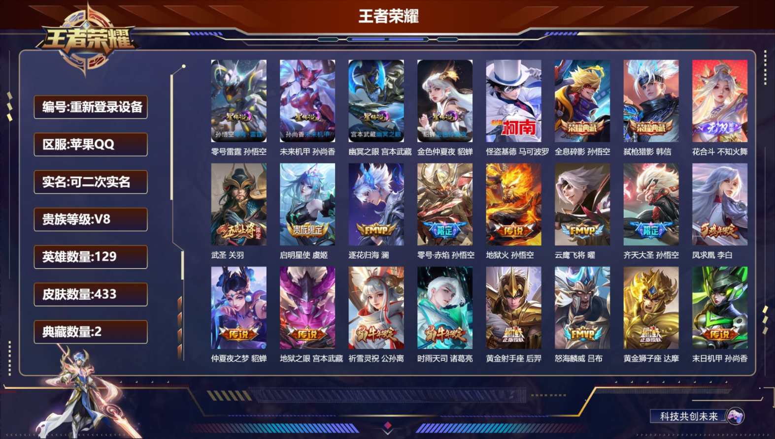PX_2541400-5,89英雄,60皮肤,2小国标,小国标孙悟空猴子11022战力,小国标伽罗9219战力,6金标,抢先服】QQ抢先-60皮肤-89英雄,,【传说皮肤】,鸣野蒿,黄金狮子座,太华,久胜战神,一念神魔,,【史诗皮肤】,茶境仙,布丁狗之约,谧流熔炉,至尊宝,诗语江南,线条小狗,化蝶舞,鹰眼统帅,修罗,暗隐猎兽者,地狱岩魂,金属风暴,水果甜心,缤纷独角兽,皇家上将,乐园奇幻夜,星夜王子,特工魅影