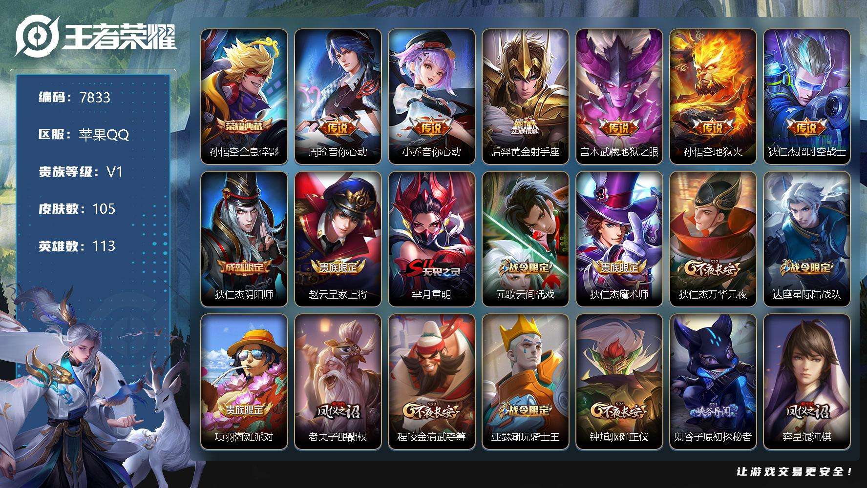 PX_2555462-编号A00195,可二次,V7,105皮肤,1典藏,6传说,全息碎影,地狱火,地狱之眼,周瑜-音你心动,黄金射手座,小乔-音你心动,狄仁杰-超时空战士,逐浪之夏,云间偶戏,黄金分割率,修罗