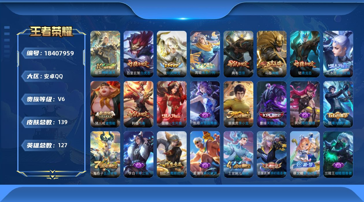 PX_2554179-安卓Q【可二次】V6-7王者印记,139皮肤3传说,【传说】,神树通天,白虎志,炽阳神光,【热门】神威,白虎志,青龙志,岱宗,飞衡,天狼征服者,默契交锋女,一生所爱,猪悟能,神迹守卫钟馗,狮舞东方,原初追逐者,梁祝,暗夜猫娘,原初探秘者,李小龙,暗隐猎兽者,曙光守护者,女武神,玩趣恶龙,舞动绿茵,逐浪之夏,心灵战警,千年之狐,圣诞恋歌,乘风破浪,圣诞狂欢,天才门将,街头霸王,箭羽风息,冰雪圆舞曲,御霄,御旌,御銮,朔风刀,混沌棋,疑决卦,醍醐杖,万华元夜,演武夺筹,群星魔术团程咬金,驱傩正仪,沙漠行僧,金庭之子,霸王丸,大漠名商,云中旅人,丁香结,海盐诗旅,皇家上将,擒涛扼浪,魅力维加斯,水果甜心,天穹祈灯,五谷丰年,繁星吟游,鹰眼统帅,魔术师,127英雄-营地ID:527208929