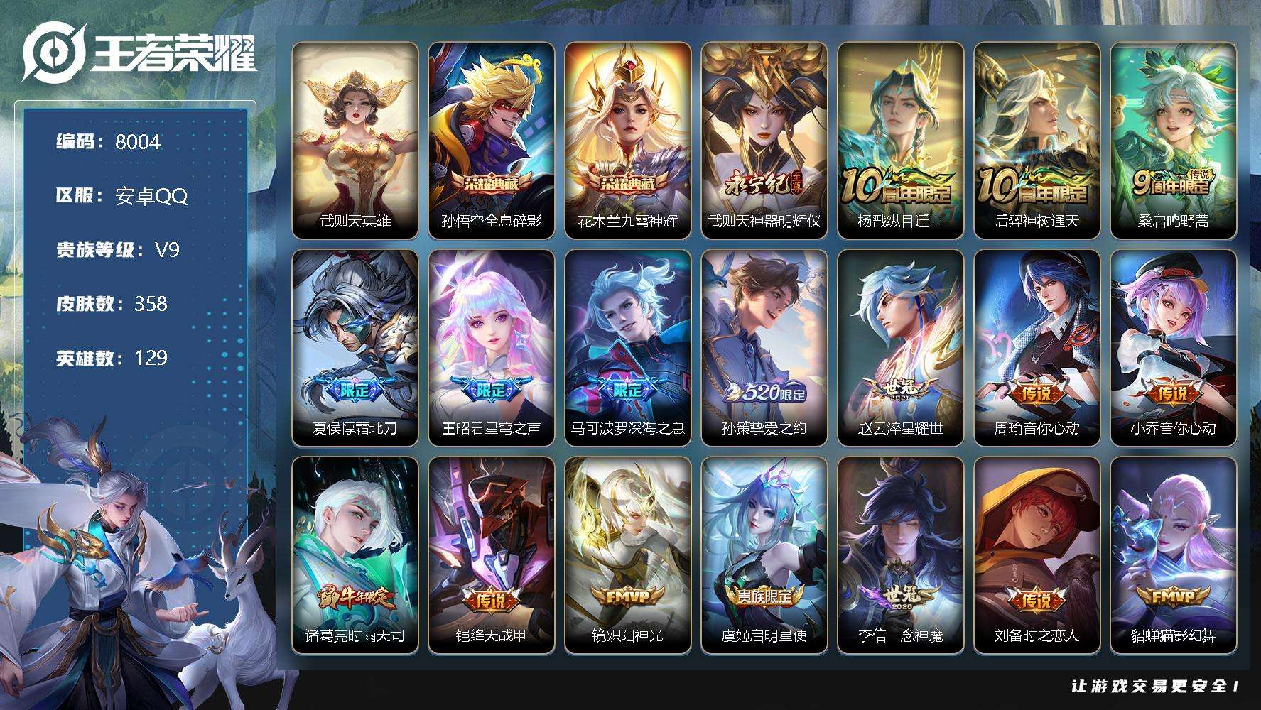 PX_2545730-可二次【139皮肤6传说9按键4064紫星币】安卓QQ-125英雄-139皮肤【传说皮肤】幻光神枪,鸣野蒿,愿照·九州拓,一念神魔,胖达荣荣,云鹰飞将【史诗皮肤】青焰无极,功夫厨神,女仆咖啡,魅力维加斯,魔术师,鹰眼统帅,鬼剑武藏,曙光守护者,暗隐猎兽者,航海奇遇记,千年之狐,逐浪之夏,地狱岩魂,紫霞仙子,末日机甲,金属风暴,猫狗日记,水果甜心,蔷薇恋人,乘风破浪,缤纷独角兽,心灵战警,摇滚巨星,纤云弄巧,乱世虎臣,皇家上将,冰雪圆舞曲,黄金分割率,天秀·音浪,赏金猎手,节奏热浪,心灵骇客,星夜王子,特工魅影【勇者皮肤】苍威无极,古海寻踪,剑破天穹,探海日志,春野之旅,云中旅人,命运角斗场,经纬探寻者,龙舞盛年,无尽旅途,金庭之子,群星魔术团,海盐诗旅,漠中幻影,功夫炙烤,金色潮汐,鸿运当头,归虚梦演,龙腾万里,教廷特使,阿尔法小队,兔女郎,炽热元素使,特工战影,敏锐之力,哥特玫瑰,瓷语鉴心,乓乓大师,次元突破,鲨炮海盗猫,坚韧之力,海滩派对,死亡骑士,星梦巡礼,潮玩造梦师,大漠名商,西部大镖客,潮玩探月行,蔚蓝守将,唤灵魔甲,玩偶对对碰,白色死神,化身博士,无双福将,大发明家,拳王,沙漠行僧,少女阿狸,阴阳师,黄金武士,营地ID:1813491954