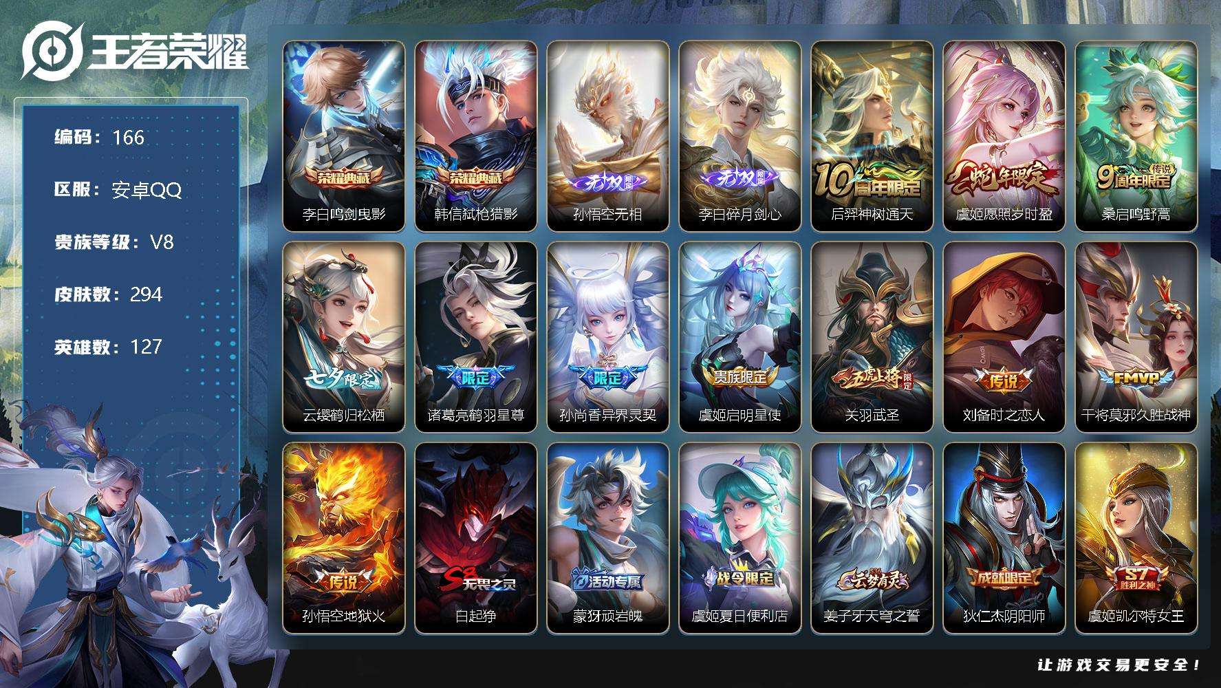 PX_2543942-编号A00431,可二次v8,294皮肤,2典藏,2无双,11传说,无相,碎月剑心,弑枪猎影,鸣剑·曳影,武圣,愿照·岁时盈,鹤羽星尊,云缨-鹤归松栖,大圣娶亲,冰霜恋舞曲,傲雪梅枪,默契交锋,西施-至美乘鲤谣,御风骁将,启明星使,地狱火,时之恋人(男),久胜战神,鸣野蒿,匿光侦查者,逐浪之夏,关羽-百相守梦,玩趣恶龙,蔷薇恋人,胡桃夹子,冰冠公主,街头霸王,乱世虎臣,李小龙,特工魅影,天秀·启明