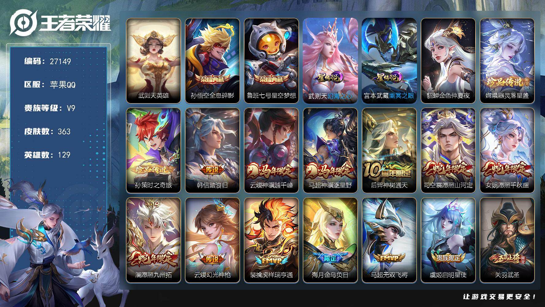 PX_2527458-可换绑【精品v9号推荐·一金标·梅西·孙策嫦娥珍品·三典藏·马超云樱马限·天魔缭乱·女娲澜司空震蛇限·金乌负日·武圣·白虎志·永曜之星·武陵仙君·神威·一生所爱·冰霜恋舞曲·朱雀志·青春决赛季·云端筑梦师·辉光之辰·贵族积分14w】,246幸运值,11按键,3星传说,20王者印记,满级铭文,无二次苹果Q-V9-363皮肤-2典藏皮肤-1典藏英雄-2珍品传说-28传说-104史诗【荣耀典藏】:武则天英雄,孙悟空全息碎影,鲁班七号星空梦想【珍品传说】:嫦娥器灵落星盏,孙策时之奇旅【星元皮肤】:武则天幻海之心,宫本武藏幽冥之眼,貂蝉金色仲夏夜【传说皮肤】:韩信踏浪归,云缨神骥越千峰,马超神骥逐星野,后羿神树通天,司空震愿照山河定,女娲愿照千秋盛,澜愿照九州拓,云缨幻光神枪,裴擒虎祥瑞亨通,海月金乌负日,马超无双飞将,虞姬启明星使,关羽武圣,曜云鹰飞将,李信一念神魔,干将莫邪久胜战神,达摩黄金狮子座,百里玄策白虎志,花木兰冠军飞将,杨戬永曜之星,诸葛亮武陵仙君,貂蝉仲夏夜之梦,孙尚香末日机甲,宫本武藏地狱之眼,孙悟空地狱火,吕布天魔缭乱,武则天海洋之心,狄仁杰超时空战士【限定皮肤】:白起狰,姜子牙天穹之誓,狄仁杰阴阳师,虞姬凯尔特女王,赵云皇家上将,嬴政优雅恋人,嬴政白昼王子,孙尚香蔷薇恋人,鲁班七号狮舞东方,庄周云端筑梦师,高渐离死亡摇滚,阿轲迷踪丽影,芈月重明,吕布天魔缭乱,吕布猎兽之王,周瑜赤莲之焰,夏侯惇朔风刀,甄姬游园惊梦,曹操烛龙,典韦穷奇,马可波罗暗影游猎,狄仁杰魔术师,狄仁杰万华元夜,达摩沙漠行僧,项羽海滩派对,项羽霸王别姬,老夫子醍醐杖,关羽冰锋战神,关羽武圣,貂蝉逐梦之音,程咬金演武夺筹,露娜一生所爱,刘邦夺宝奇兵,韩信逐梦之影,兰陵王驯魔猎人,兰陵王金庭之子,花木兰青春决赛季,孙悟空至尊宝,孙悟空大圣娶亲,牛魔御旌,后羿辉光之辰,张飞虎魄,李元芳银河之约,李元芳云中旅人,虞姬霸王别姬,虞姬启明星使,钟馗神迹守卫,钟馗驱傩正仪,杨玉环遇见飞天,杨戬永曜之星,女娲朔望之晖,哪吒逐梦之翼,干将莫邪冰霜恋舞曲,雅典娜单词大作战,雅典娜黎明之约,蔡文姬繁星吟游,太乙真人饕餮,太乙真人华丽摇滚,东皇太一逐梦之光,鬼谷子原初探秘者,鬼谷子五谷丰年,诸葛亮武陵仙君,黄忠烈魂,铠青龙志,苏烈千军破阵,百里玄策白虎志,百里玄策原初追逐者,百里守约朱雀志,弈星混沌棋,沈梦溪星空之诺,沈梦溪大漠名商,明世隐疑决卦,裴擒虎李小龙,裴擒虎擒涛扼浪,狂铁御狮,米莱狄御霄,云中君纤云弄巧,盾山御銮,猪八戒西部大镖客,上官婉儿梁祝,上官婉儿天狼绘梦者,蒙犽狂想玩偶喵,鲁班大师探海日志,桑启海盐诗旅,张良古海寻踪,裴擒虎梅西,蒙恬荣光圣徽,鬼谷子天穹祈灯,姬小满妄想食味,沈梦溪龙舞盛年,海月金乌负日,刘邦剑破天穹【年限皮肤】:杨戬永曜之星,后羿辉光之辰,百里玄策白虎志,百里守约朱雀志,铠青龙志,司空震愿照山河定,女娲愿照千秋盛,澜愿照九州拓【赛季限定】:虞姬凯尔特女王,白起狰,太乙真人饕餮,曹操烛龙,芈月重明,典韦穷奇,狂铁御狮,米莱狄御霄,牛魔御旌,盾山御銮,夏侯惇朔风刀,弈星混沌棋,明世隐疑决卦,老夫子醍醐杖,鬼谷子原初探秘者,狄仁杰万华元夜,程咬金演武夺筹,钟馗驱傩正仪,苏烈千军破阵,达摩沙漠行僧,兰陵王金庭之子,沈梦溪大漠名商,李元芳云中旅人,桑启海盐诗旅,裴擒虎擒涛扼浪,鲁班大师探海日志,张良古海寻踪,鬼谷子天穹祈灯,刘邦剑破天穹,姜子牙天穹之誓,东皇太一噬灭天穹,太乙真人谧流熔炉,钟馗虚灵犬护,甄姬逆浪荇歌,亚瑟荣光之誓,百里玄策原初追逐者,雅典娜黎明之约,蒙恬荣光圣徽,项羽九幽镇关 【战令限定】:嬴政白昼王子,吕布猎兽之王,女娲朔望之晖,鲁班七号狮舞东方,钟馗神迹守卫,兰陵王驯魔猎人,周瑜赤莲之焰,李元芳银河之约,沈梦溪星空之诺,阿轲迷踪丽影,刘邦夺宝奇兵,马可波罗暗影游猎,猪八戒西部大镖客,蒙犽狂想玩偶喵,雅典娜单词大作战,周瑜百相守梦,孙策百相守梦,周瑜线条小狗【史诗皮肤】:周瑜线条小狗,项羽九幽镇关,女娲万灵启世,百里玄策罗小黑战记,公孙离涂山容容,西施织梦人,黄忠百相守梦,周瑜百相守梦,后羿石田雨龙,扁鹊灵蛊蚀心,狂铁龙之律动,阿轲化蝶舞,姬小满妄想食味,蒙恬荣光圣徽,刘禅电玩爆裂旋风,鬼谷子五谷丰年,雅典娜黎明之约,司马懿暗渊魔法,云中君纤云弄巧,裴擒虎李小龙,百里玄策原初追逐者,蒙犽狂想玩偶喵,张飞虎魄,马可波罗暗影游猎,上官婉儿天狼绘梦者,黄忠烈魂,马超神威,橘右京修罗,阿轲迷踪丽影,不知火舞魅语,小乔青蛇,娜可露露晚萤,李元芳银河之约,蔡文姬繁星吟游,上官婉儿梁祝,兰陵王驯魔猎人,公孙离无限星赏官,狄仁杰鹰眼统帅,鲁班七号狮舞东方,伽罗箭羽风息,孙悟空大圣娶亲,露娜一生所爱,干将莫邪冰霜恋舞曲,百里守约朱雀志,铠青龙志,大乔猫狗日记,孙策猫狗日记,嬴政白昼王子,东皇太一逐梦之光,杨玉环遇见飞天,阿轲节奏热浪,白起星夜王子,程咬金功夫厨神,李元芳逐浪之夏,刘禅天才门将,哪吒逐梦之翼,裴擒虎梅西,蔡文姬舞动绿茵,铠曙光守护者,百里守约特工魅影,花木兰青春决赛季,庄周云端筑梦师,后羿辉光之辰,安琪拉心灵骇客,雅典娜冰冠公主,亚瑟心灵战警,甄姬游园惊梦,诸葛亮黄金分割率,兰陵王暗隐猎兽者,小乔缤纷独角兽,夏侯惇乘风破浪,韩信逐梦之影