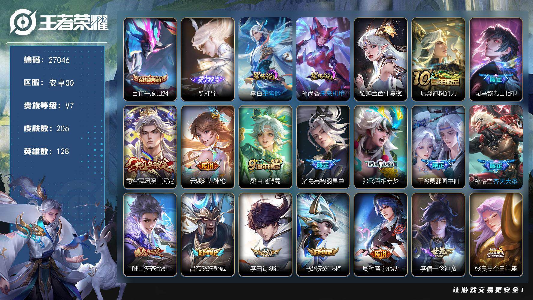 PX_2525238-可换绑【多限定精品小号·无双李信·珍品嫦娥·马限云樱·白虎志·凤求凰·无二次】,4按键,3王者印记,五级铭文110,无二次,安卓Q-V7-120皮肤-1无双-1珍品传说-6传说-28史诗【英雄全皮】:孙权全皮【无双皮肤】:李信问心剑【珍品传说】:嫦娥器灵落星盏【传说皮肤】:阿轲罗刹妄海,云缨神骥越千峰,百里玄策白虎志,李白凤求凰,宫本武藏地狱之眼,孙悟空地狱火【限定皮肤】:狄仁杰阴阳师,赵云皇家上将,鲁班七号狮舞东方,周瑜赤莲之焰,夏侯惇朔风刀,曹操烛龙,典韦穷奇,狄仁杰魔术师,狄仁杰万华元夜,项羽海滩派对,老夫子醍醐杖,程咬金演武夺筹,兰陵王驯魔猎人,牛魔御旌,钟馗神迹守卫,钟馗驱傩正仪,蔡文姬繁星吟游,太乙真人饕餮,鬼谷子原初探秘者,百里玄策白虎志,弈星混沌棋,明世隐疑决卦,裴擒虎李小龙,狂铁御狮,米莱狄御霄,盾山御銮,上官婉儿梁祝【年限皮肤】:李白凤求凰,百里玄策白虎志【赛季限定】:太乙真人饕餮,曹操烛龙,典韦穷奇,狂铁御狮,米莱狄御霄,牛魔御旌,盾山御銮,夏侯惇朔风刀,弈星混沌棋,明世隐疑决卦,老夫子醍醐杖,鬼谷子原初探秘者,狄仁杰万华元夜,程咬金演武夺筹,钟馗驱傩正仪【战令限定】:鲁班七号狮舞东方,钟馗神迹守卫,兰陵王驯魔猎人,周瑜赤莲之焰,周瑜线条小狗,小乔线条小狗【史诗皮肤】:周瑜线条小狗,小乔线条小狗,狂铁龙之律动,赵怀真器灵浮梦炉,裴擒虎李小龙,橘右京修罗,蔡文姬繁星吟游,上官婉儿梁祝,兰陵王驯魔猎人,公孙离无限星赏官,狄仁杰鹰眼统帅,鲁班七号狮舞东方,孙策猫狗日记,阿轲节奏热浪,百里守约特工魅影,诸葛亮黄金分割率,花木兰水晶猎龙者,韩信白龙吟,李白千年之狐,曹操幽灵船长,刘禅绅士熊喵,墨子金属风暴,妲己魅力维加斯,狄仁杰魔术师,貂蝉圣诞恋歌,赵云未来纪元,赵云皇家上将,露娜紫霞仙子,项羽苍穹之光 【其他皮肤】:蚩奼极光幻客,孙权径山谋武,影魅影绮裳,大司命暗都幽影,钟馗驱傩正仪,张良缤纷绘卷,程咬金演武夺筹,狄仁杰万华元夜,鬼谷子原初探秘者,老夫子醍醐杖,盾山圆桌骑士,明世隐疑决卦,弈星混沌棋,周瑜赤莲之焰,夏侯惇朔风刀,沈梦溪鲨炮海盗猫,孙膑归虚梦演,盾山御銮,钟馗神迹守卫,牛魔御旌,明世隐虹云星官,米莱狄御霄,项羽科学大爆炸,苏烈坚韧之力,狂铁御狮,鬼谷子幻乐之宴,李白敏锐之力,诸葛亮掌控之力,典韦穷奇,孙尚香沉稳之力,老夫子功夫老勺,王昭君幻想奇妙夜,曹操烛龙,宫本武藏霸王丸,太乙真人饕餮,钟无艳海滩丽影,关羽龙腾万里,刘备汉昭烈帝,狄仁杰阴阳师,宫本武藏万象初新,刘备万事如意,张飞五福同心,花木兰兔女郎,达摩拳王,亚瑟死亡骑士,典韦黄金武士,妲己少女阿狸,安琪拉玩偶对对碰,扁鹊化身博士,芈月红桃皇后,达摩大发明家,露娜哥特玫瑰,韩信街头霸王,韩信教廷特使,项羽海滩派对,云缨赤焰之缨,司空震启蛰,曜归虚梦演,云中君荷鲁斯之眼,盘古创世神祝,猪八戒年年有余,李信灼热之刃,沈梦溪棒球奇才,元歌午夜歌剧院,裴擒虎街头旋风,梦奇美梦成真,百里玄策威尼斯狂欢,百里守约绝影神枪,铠龙域领主,鬼谷子阿摩司公爵,干将莫邪第七人偶,黄忠芝加哥教父,苍维京掠夺者,马可波罗激情绿茵,兰陵王隐刃,孙悟空西部大镖客,小乔万圣前夜,张良一千零一夜,狄仁杰锦衣卫,钟无艳生化警戒,露娜绯红之刃,高渐离金属狂潮,鲁班七号木偶奇遇记