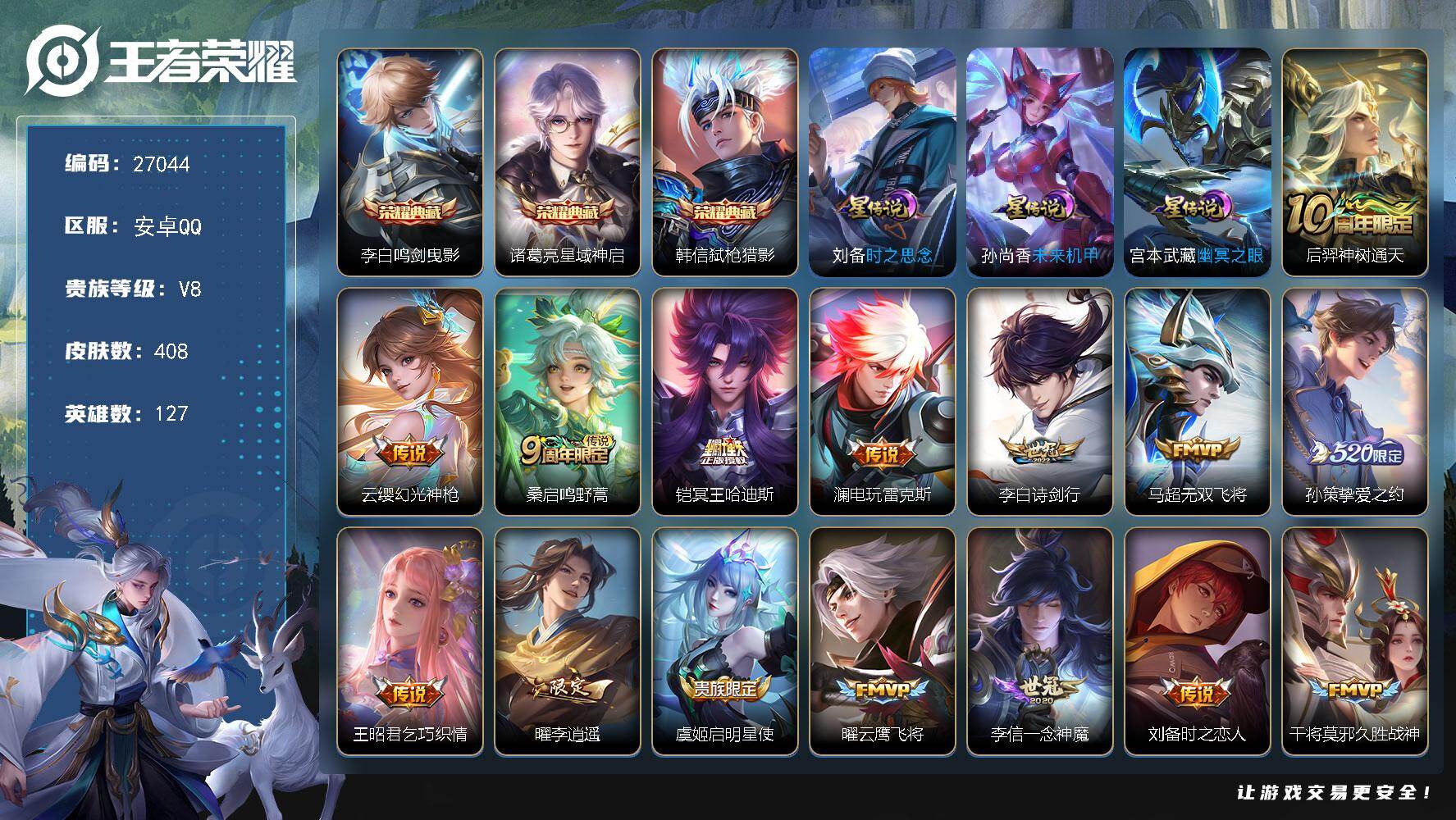 PX_2527401-可换绑,【高质量极品v8·3典藏韩信诸葛亮李白·冥王哈迪斯·孙策520限定·李逍遥·凤求凰·孙行者神威飞衡·天幕天机无算·无二次】214幸运值,7按键,1天幕,3星传说,21王者印记,满级铭文,无二次安卓Q-V8-408皮肤-3典藏皮肤-20传说-118史诗【英雄全皮】:刘邦全皮,孙权全皮,钟馗全皮,敖隐全皮,蒙恬全皮,戈娅全皮,空空儿全皮【荣耀典藏】:李白鸣剑曳影,诸葛亮星域神启,韩信弑枪猎影【星元皮肤】:刘备时之思念,孙尚香未来机甲,宫本武藏幽冥之眼【天幕】:天机无算天幕【传说皮肤】:后羿神树通天,云缨幻光神枪,桑启鸣野蒿,铠冥王哈迪斯,澜电玩雷克斯,李白诗剑行,马超无双飞将,孙策挚爱之约,王昭君乞巧织情,曜李逍遥,,虞姬启明星使,曜云鹰飞将,李信一念神魔,刘备时之恋人,干将莫邪久胜战神,达摩黄金狮子座,后羿黄金射手座,李白凤求凰,孙尚香末日机甲,宫本武藏地狱之眼【限定皮肤】:铠冥王哈迪斯,暃埋骨钱,蒙犽顽岩魄,虞姬夏日便利店,姜子牙天穹之誓,狄仁杰阴阳师,赵云皇家上将,墨子神迹守卫,嬴政优雅恋人,孙尚香蔷薇恋人,鲁班七号狮舞东方,阿轲迷踪丽影,钟无艳超时空战士,扁鹊奇幻香踪,芈月幻夜卜梦,周瑜赤莲之焰,元歌云间偶戏,元歌无心,夏侯惇朔风刀,甄姬游园惊梦,甄姬落雪兰心,马可波罗暗影游猎,狄仁杰魔术师,狄仁杰万华元夜,达摩沙漠行僧,项羽海滩派对,老夫子醍醐杖,老夫子航海奇遇记,关羽冰锋战神,程咬金演武夺筹,刘邦夺宝奇兵,韩信飞衡,王昭君午后时光,兰陵王驯魔猎人,兰陵王金庭之子,亚瑟潮玩骑士王,孙悟空美猴王,孙悟空孙行者,牛魔御旌,李元芳银河之约,李元芳云中旅人,虞姬启明星使,钟馗神迹守卫,钟馗驱傩正仪,杨戬潮玩骑兵,干将莫邪胡桃夹子,雅典娜黎明之约,蔡文姬繁星吟游,鬼谷子原初探秘者,鬼谷子五谷丰年,黄忠火炮绅士,苏烈千军破阵,百里玄策原初追逐者,弈星混沌棋,梦奇顽趣,公孙离蜜橘之夏,沈梦溪星空之诺,沈梦溪大漠名商,明世隐疑决卦,裴擒虎李小龙,裴擒虎擒涛扼浪,狂铁电玩高手,米莱狄御霄,米莱狄胡桃异想国,云中君纤云弄巧,盾山御銮,孙策挚爱之约,猪八戒西部大镖客,上官婉儿梁祝,嫦娥拒霜思,嫦娥暖冬兔眠,曜李逍遥,,西施玲珑珍味,鲁班大师探海日志,桑启海盐诗旅,暃星界游侠,戈娅驭风魔法,艾琳流音漫舞,司空震地狱燃心,阿古朵江河有灵,张良古海寻踪,蒙犽百解令,蒙恬荣光圣徽,妲己灵卜魔法,鬼谷子天穹祈灯,沈梦溪龙舞盛年,鲁班七号蔬乡物语,李元芳蔬乡物语,刘邦剑破天穹,程咬金群星魔术团,镜青焰无极,项羽苍威无极,刘备异域游侠,周瑜熔金海岸【年限皮肤】:孙悟空美猴王,李白凤求凰,韩信飞衡【赛季限定】:米莱狄御霄,牛魔御旌,盾山御銮,夏侯惇朔风刀,弈星混沌棋,明世隐疑决卦,老夫子醍醐杖,鬼谷子原初探秘者,狄仁杰万华元夜,程咬金演武夺筹,钟馗驱傩正仪,苏烈千军破阵,达摩沙漠行僧,兰陵王金庭之子,沈梦溪大漠名商,李元芳云中旅人,桑启海盐诗旅,裴擒虎擒涛扼浪,鲁班大师探海日志,张良古海寻踪,鬼谷子天穹祈灯,刘邦剑破天穹,姜子牙天穹之誓,东皇太一噬灭天穹,钟馗虚灵犬护,甄姬逆浪荇歌,亚瑟荣光之誓,百里玄策原初追逐者,雅典娜黎明之约,梦奇顽趣,蒙恬荣光圣徽,牛魔星界战将,项羽九幽镇关【战令限定】:鲁班七号狮舞东方,钟馗神迹守卫,兰陵王驯魔猎人,周瑜赤莲之焰,李元芳银河之约,沈梦溪星空之诺,阿轲迷踪丽影,刘邦夺宝奇兵,马可波罗暗影游猎,猪八戒西部大镖客,元歌云间偶戏,亚瑟潮玩骑士王,米莱狄胡桃异想国,老夫子航海奇遇记,墨子神迹守卫,黄忠火炮绅士,芈月幻夜卜梦,狂铁电玩高手,王昭君午后时光,钟无艳超时空战士,甄姬落雪兰心,暃星界游侠,嫦娥暖冬兔眠,扁鹊奇幻香踪,杨戬潮玩骑兵,戈娅驭风魔法,西施玲珑珍味,司空震地狱燃心,艾琳流音漫舞,妲己灵卜魔法,鲁班七号蔬乡物语,李元芳蔬乡物语,镜青焰无极,项羽苍威无极,虞姬夏日便利店,亚连破空之剑,孙悟空神迹守卫,百里守约百相守梦,老夫子百相守梦,孙膑茶境仙,马超访茗客,刘禅鸭鸭历险记,沈梦溪鸭鸭历险记,周瑜百相守梦,孙策百相守梦,莱西奥光弋星穹,明世隐往忆晖光,周瑜线条小狗,小乔线条小狗【史诗皮肤】:钟馗锁墨魂,周瑜线条小狗,小乔线条小狗,项羽九幽镇关,少司缘巫礼祀神,女娲万灵启世,百里玄策罗小黑战记,莱西奥光弋星穹,公孙离涂山容容,黄忠百相守梦,周瑜百相守梦,后羿石田雨龙,扁鹊灵蛊蚀心,狂铁龙之律动,刘禅鸭鸭历险记,赵怀真器灵浮梦炉,孙膑茶境仙,牛魔星界战将,百里守约百相守梦,亚连破空之剑,暃埋骨钱,蒙犽顽岩魄,黄忠怒海争锋,镜青焰无极,鲁班七号蔬乡物语,蒙恬荣光圣徽,妲己灵卜魔法,周瑜雪夜绮愿,蒙犽百解令,阿古朵江河有灵,司空震地狱燃心,戈娅驭风魔法,扁鹊奇幻香踪,暃星界游侠,梦奇顽趣,元歌无心,鬼谷子五谷丰年,钟无艳超时空战士,狂铁电玩高手,夏洛特永昼,雅典娜黎明之约,黄忠火炮绅士,嫦娥拒霜思,孙悟空孙行者,安琪拉时之奇旅,钟馗乐园奇幻夜,沈梦溪月团寄思,杨戬天秀启明,老夫子航海奇遇记,西施诗语江南,米莱狄胡桃异想国,元歌云间偶戏,云中君纤云弄巧,裴擒虎李小龙,百里玄策原初追逐者,马可波罗暗影游猎,马超神威,橘右京修罗,阿轲迷踪丽影,不知火舞魅语,小乔青蛇,大乔白蛇,韩信飞衡,娜可露露晚萤,李元芳银河之约,蔡文姬繁星吟游,上官婉