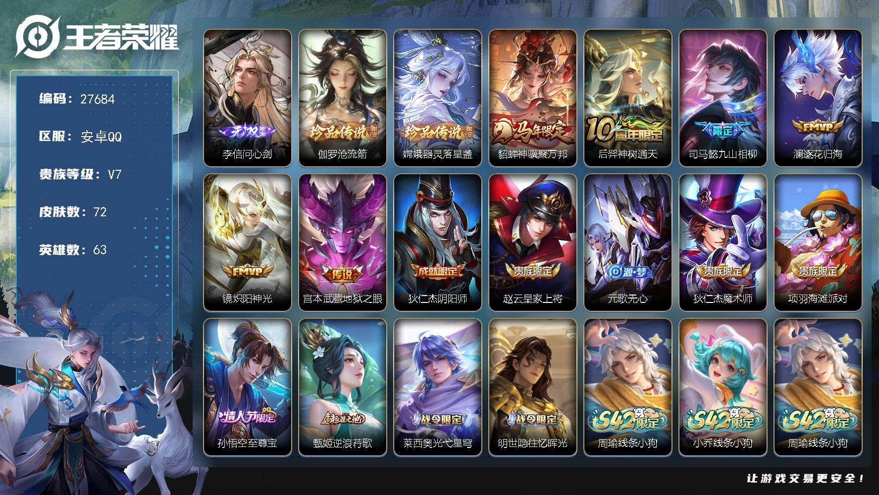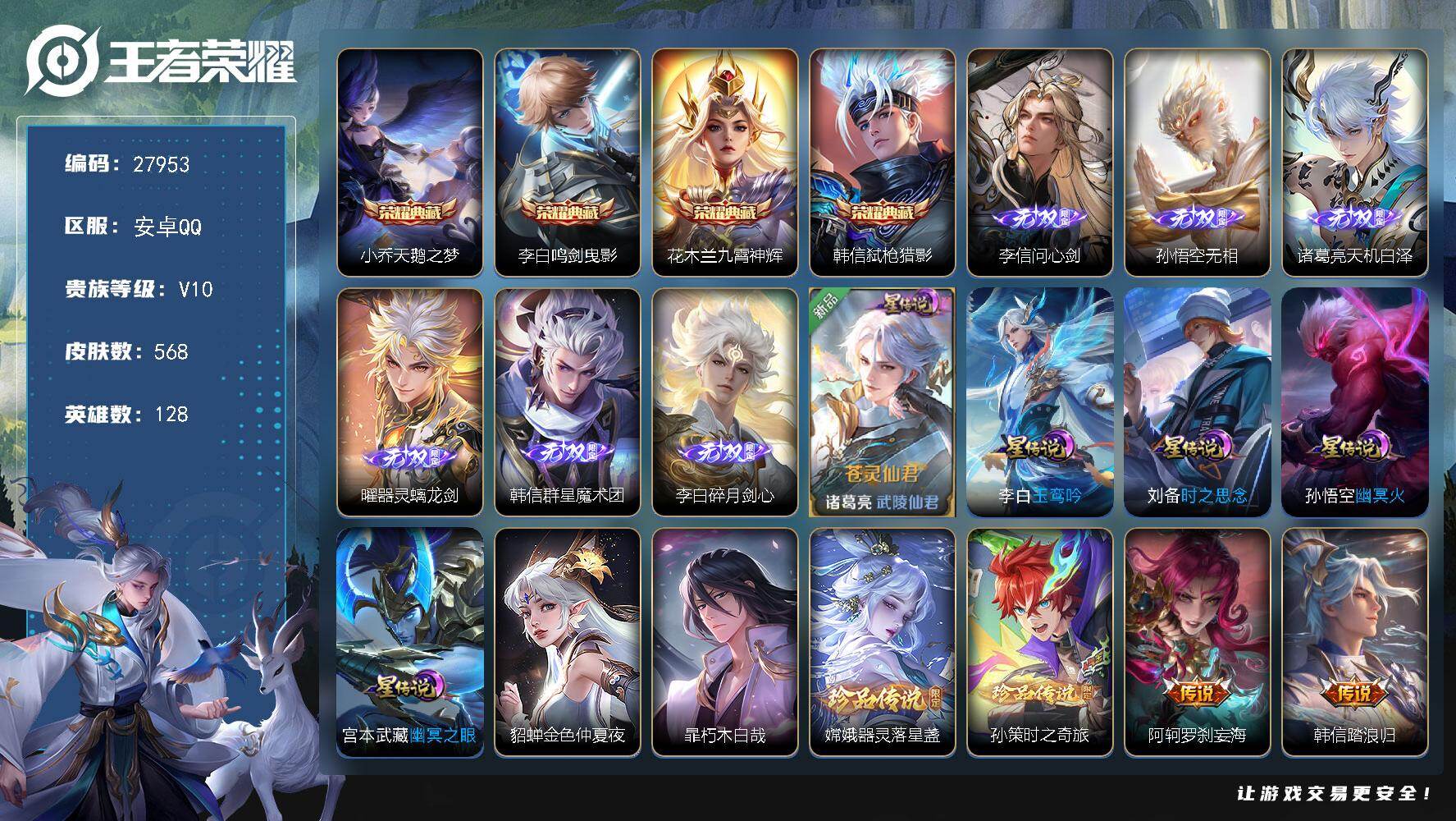 PX_2540062-可换绑【极品高质量v10·47段打野·6无双·4典藏·3珍品·韩信李白全皮·蛇年全套·6星传说·2传说天幕·30w贵族积分】,333戳戳,264幸运值,95按键,2天幕,5星传说,20王者印记,满级铭文,无二次安卓Q-V10-568皮肤-4典藏皮肤-6无双-3珍品传说-88传说-174史诗【英雄全皮】:刘禅全皮,元歌全皮,李白全皮,达摩全皮,司马懿全皮,露娜全皮,刘邦全皮,韩信全皮,孙权全皮,娜可露露全皮,橘右京全皮,刘备全皮,雅典娜全皮,鬼谷子全皮,狂铁全皮,李信全皮,孙策全皮,亚连全皮,大司命全皮,马超全皮,敖隐全皮,曜全皮,蒙犽全皮,蒙恬全皮,澜全皮,夏洛特全皮,司空震全皮,云缨全皮,暃全皮,赵怀真全皮,戈娅全皮,空空儿全皮,影全皮【荣耀典藏】:小乔天鹅之梦,李白鸣剑曳影,花木兰九霄神辉,韩信弑枪猎影【无双皮肤】:李信问心剑,孙悟空无相,诸葛亮天机白泽,曜器灵螭龙剑,韩信群星魔术团,李白碎月剑心【珍品传说】:暃朽木白哉,嫦娥器灵落星盏,孙策时之奇旅【星元皮肤】:貂蝉金色仲夏夜,宫本武藏幽冥之眼,孙悟空幽冥火,刘备时之思念,李白玉鸾吟,诸葛亮苍灵仙君【天幕】:敬我三分天幕,挚爱童话天幕【传说皮肤】:阿轲罗刹妄海,韩信踏浪归,云缨神骥越千峰,马超神骥逐星野,花木兰异界灵契,后羿神树通天,干将莫邪千山共赴,元歌诡秘之主,大司命死亡执政官,司马懿九山相柳,西施续相思,司空震愿照山河定,女娲愿照千秋盛,妲己愿照众生和,澜愿照九州拓,蔡文姬愿照福禄聚,虞姬愿照岁时盈,云缨幻光神枪,裴擒虎祥瑞亨通,桑启鸣野蒿,夏侯惇霜北刀,铠冥王哈迪斯,云中君群星魔术团,亚连落雪白狼,典韦战鼓燎原,孙尚香乘龙问璇玑,孙策乘龙淬吴钩,赵云乘龙铭钟鼎,马超琥珀纪元,铠琥珀纪元,澜逐花归海,艾琳觅芳踪,露娜霜月吟,兰陵王影龙天霄,吕布遇见神鼓,宫本武藏惊梅引,云缨鹤归松栖,上官婉儿妄想奇谈,东皇太一灼幽烈阳,诸葛亮鹤羽星尊,澜电玩雷克斯,张飞百相守梦,夏洛特浮生妄,干将莫邪画中仙,花木兰燃星之曲,项羽无限倾心,孙悟空齐天大圣,小乔山海琳琅生,曜山海苍雷引,李信山海炽霜斩,吕布怒海麟威,李白诗剑行,不知火舞绯月行,橘右京枫霜尽,娜可露露前尘镜,孙尚香音你闪耀,马超无双飞将,孙策挚爱之约,露娜启示之音,孙策末日机甲,裴擒虎寅虎赤拳,孙尚香异界灵契,赵云淬星耀世,曜李逍遥,,周瑜音你心动,李元芳飞鸢探春,兰陵王默契交锋,公孙离祈雪灵祝,诸葛亮时雨天司,铠绛天战甲,镜炽阳神光,虞姬启明星使,孙悟空零号赤焰,关羽武圣,曜云鹰飞将,李信一念神魔,刘备时之恋人,干将莫邪久胜战神,达摩黄金狮子座,百里玄策白虎志,梦奇胖达荣荣,杨戬永曜之星,诸葛亮武陵仙君,貂蝉仲夏夜之梦,李白凤求凰,孙尚香末日机甲,宫本武藏地狱之眼,孙悟空地狱火【限定皮肤】:夏侯惇霜北刀,铠冥王哈迪斯,暃埋骨钱,蒙犽顽岩魄,蔡文姬夏日便利店,大乔绒语心约,虞姬夏日便利店,姜子牙天穹之誓,李白谪仙醉月,狄仁杰阴阳师,小乔山海琳琅生,赵云皇家上将,赵云引擎之心,赵云龙胆,赵云百木心枪,墨子神迹守卫,嬴政优雅恋人,嬴政白昼王子,孙尚香蔷薇恋人,孙尚香异界灵契,鲁班七号狮舞东方,庄周高山流水,高渐离死亡摇滚,阿轲迷踪丽影,钟无艳超时空战士,扁鹊奇幻香踪,白起夜都怪侠,芈月白晶晶,吕布猎兽之王,吕布御风骁将,吕布遇见神鼓,周瑜赤莲之焰,元歌云间偶戏,元歌无心,夏侯惇朔风刀,甄姬游园惊梦,甄姬落雪兰心,曹操天狼征服者,典韦穷奇,典韦蓝屏警告,马可波罗暗影游猎,马可波罗山海玄木吟,狄仁杰魔术师,狄仁杰万华元夜,达摩星际陆战队,达摩沙漠行僧,项羽海滩派对,项羽霸王别姬,项羽无限倾心,老夫子醍醐杖,关羽冰锋战神,关羽武圣,关羽百相守梦,程咬金演武夺筹,露娜一生所爱,露娜启示之音,刘邦夺宝奇兵,韩信逐梦之影,韩信飞衡,韩信傲雪梅枪,王昭君凤凰于飞,王昭君午后时光,兰陵王默契交锋,兰陵王影龙天霄,兰陵王驯魔猎人,兰陵王金庭之子,花木兰燃星之曲,不知火舞绯月行,娜可露露前尘镜,橘右京枫霜尽,亚瑟潮玩骑士王,孙悟空美猴王,孙悟空至尊宝,孙悟空大圣娶亲,孙悟空零号赤焰,孙悟空孙行者,孙悟空齐天大圣,牛魔御旌,刘备百相守梦,张飞百相守梦,李元芳银河之约,李元芳云中旅人,虞姬启明星使,钟馗神迹守卫,钟馗驱傩正仪,杨玉环遇见飞天,杨玉环寅虎心曲,杨戬永曜之星,杨戬潮玩骑兵,女娲朔望之晖,干将莫邪冰霜恋舞曲,干将莫邪胡桃夹子,干将莫邪画中仙,雅典娜单词大作战,雅典娜黎明之约,蔡文姬繁星吟游,鬼谷子原初探秘者,鬼谷子五谷丰年,诸葛亮武陵仙君,诸葛亮时雨天司,诸葛亮鹤羽星尊,铠青龙志,苏烈玄武志,苏烈千军破阵,百里玄策白虎志,百里玄策原初追逐者,弈星混沌棋,梦奇顽趣,公孙离祈雪灵祝,沈梦溪大漠名商,明世隐疑决卦,明世隐吟游魔法,裴擒虎天狼狩猎者,裴擒虎李小龙,裴擒虎寅虎赤拳,裴擒虎擒涛扼浪,狂铁御狮,狂铁电玩高手,米莱狄御霄,米莱狄胡桃异想国,瑶山海碧波行,云中君纤云弄巧,李信山海炽霜斩,盾山御銮,孙策挚爱之约,猪八戒西部大镖客,上官婉儿梁祝,上官婉儿妄想奇谈,嫦娥拒霜思,嫦娥暖冬兔眠,曜李逍遥,,曜山海苍雷引,西施玲珑珍味,蒙犽狂想玩偶喵,鲁班大师探海日志,盘古冰霜神祇,桑启海盐诗旅,夏洛特浮生妄,暃星界游侠,戈娅驭风魔法,艾琳流音漫舞,赵怀真鹤归松栖,云缨鹤归松栖,司空震地狱燃心,阿古朵