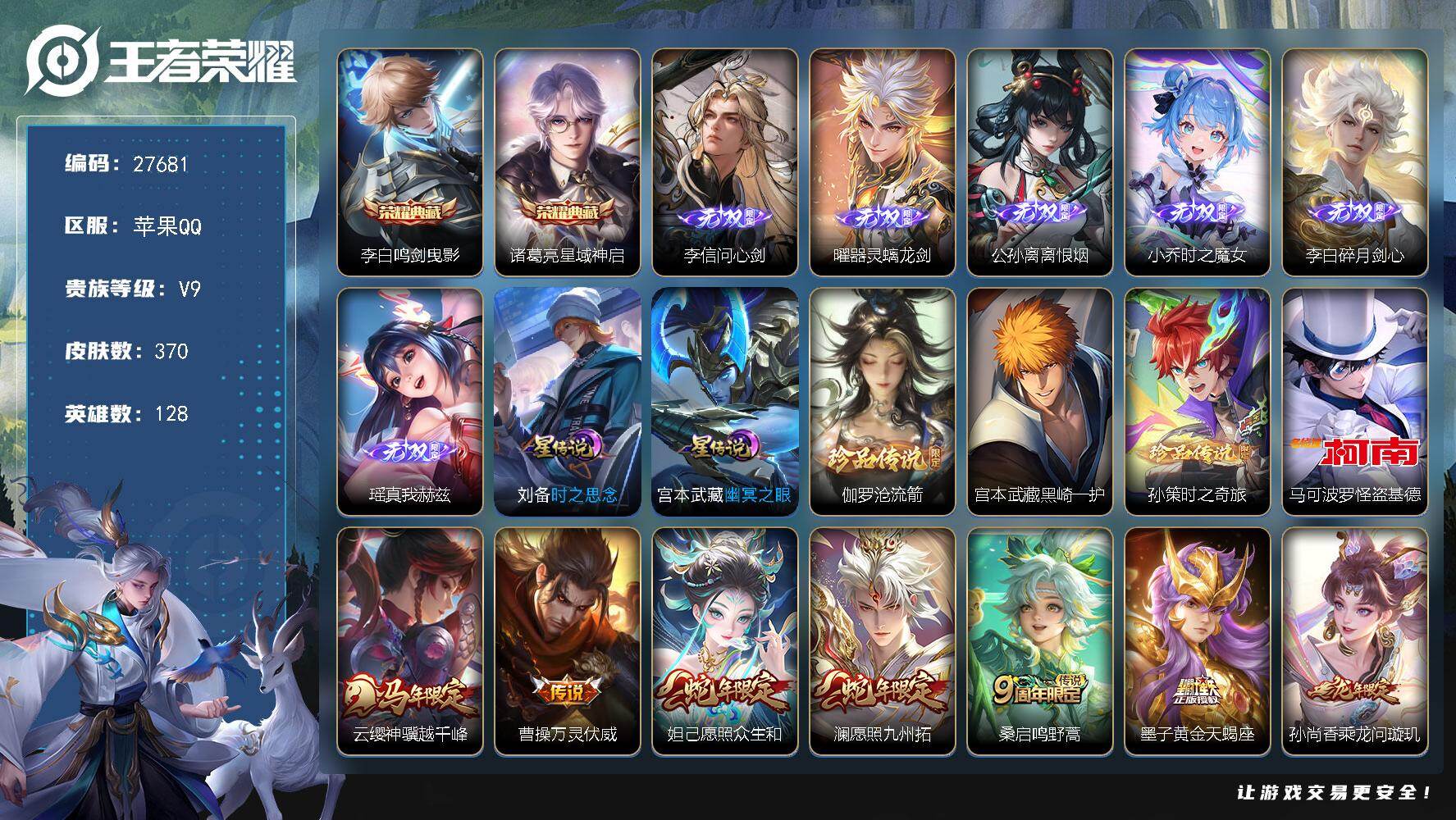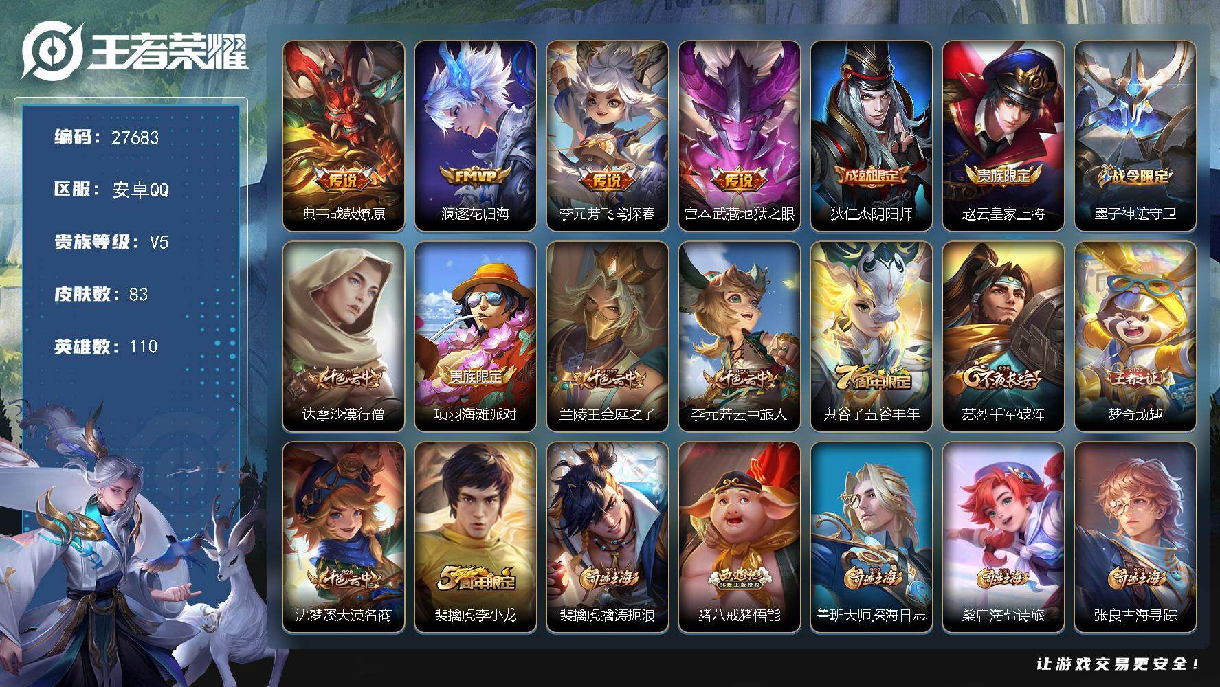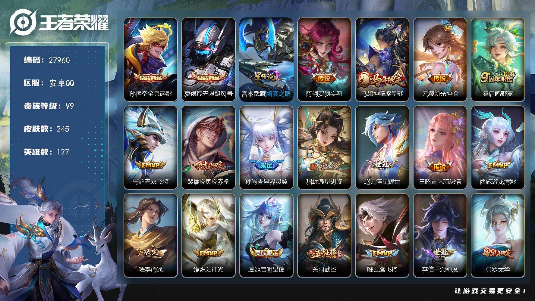PX_2540065-可换绑【高性价比v9多限定号·孙悟空夏侯惇典藏·马年马超·虎年老虎·异界灵契·遇见胡璇·李逍遥·武圣·太华·孙行者·神威·如梦令·青龙志·蜜橘之夏·贵族积分11w】,343幸运值,4按键,1星传说,4王者印记,190五级铭文,无二次安卓Q-V9-245皮肤-2典藏皮肤-24传说-71史诗【英雄全皮】:敖隐全皮【荣耀典藏】:孙悟空全息碎影,夏侯惇无限飓风号【星元皮肤】:宫本武藏幽冥之眼【传说皮肤】:阿轲罗刹妄海,马超神骥逐星野,云缨幻光神枪,桑启鸣野蒿,马超无双飞将,裴擒虎寅虎赤拳,孙尚香异界灵契,貂蝉遇见胡旋,赵云淬星耀世,王昭君乞巧织情,西施游龙清影,曜李逍遥,,镜炽阳神光,虞姬启明星使,关羽武圣,曜云鹰飞将,李信一念神魔,伽罗太华,貂蝉猫影幻舞,干将莫邪久胜战神,达摩黄金狮子座,花木兰冠军飞将,宫本武藏地狱之眼,狄仁杰超时空战士【限定皮肤】:姜子牙天穹之誓,狄仁杰阴阳师,廉颇寅虎御盾,赵云皇家上将,墨子神迹守卫,孙尚香异界灵契,鲁班七号乒乒小将,庄周高山流水,高渐离玩趣恶龙,元歌无心,马可波罗逐梦之星,狄仁杰魔术师,狄仁杰万华元夜,达摩星际陆战队,达摩沙漠行僧,项羽海滩派对,老夫子航海奇遇记,关羽冰锋战神,关羽武圣,貂蝉遇见胡旋,程咬金演武夺筹,韩信逐梦之影,兰陵王金庭之子,孙悟空孙行者,牛魔御旌,后羿如梦令,后羿圣弓游侠,李元芳云中旅人,虞姬启明星使,钟馗驱傩正仪,干将莫邪真爱魔法,鬼谷子五谷丰年,大乔白鹤梁神女,铠青龙志,苏烈千军破阵,公孙离蜜橘之夏,沈梦溪大漠名商,裴擒虎寅虎赤拳,裴擒虎擒涛扼浪,米莱狄胡桃异想国,伽罗太华,伽罗天狼溯光者,盾山御銮,猪八戒猪悟能,上官婉儿梁祝,嫦娥如梦令,嫦娥拒霜思,曜李逍遥,,鲁班大师探海日志,桑启海盐诗旅,张良古海寻踪,鬼谷子天穹祈灯,沈梦溪龙舞盛年,刘邦剑破天穹【年限皮肤】:铠青龙志,伽罗太华,裴擒虎寅虎赤拳,廉颇寅虎御盾【赛季限定】:牛魔御旌,盾山御銮,狄仁杰万华元夜,程咬金演武夺筹,钟馗驱傩正仪,苏烈千军破阵,达摩沙漠行僧,兰陵王金庭之子,沈梦溪大漠名商,李元芳云中旅人,桑启海盐诗旅,裴擒虎擒涛扼浪,鲁班大师探海日志,张良古海寻踪,鬼谷子天穹祈灯,刘邦剑破天穹,姜子牙天穹之誓,东皇太一噬灭天穹,太乙真人谧流熔炉,钟馗虚灵犬护,甄姬逆浪荇歌,项羽九幽镇关【战令限定】:米莱狄胡桃异想国,达摩星际陆战队,老夫子航海奇遇记,墨子神迹守卫,干将莫邪真爱魔法,后羿圣弓游侠,廉颇撼地雄心,周瑜线条小狗,小乔线条小狗【史诗皮肤】:周瑜线条小狗,小乔线条小狗,项羽九幽镇关,黄忠百相守梦,狂铁龙之律动,弈星万物之道,廉颇撼地雄心,元歌无心,鬼谷子五谷丰年,廉颇寅虎御盾,嫦娥拒霜思,司马懿暗渊魔法,庄周高山流水,猪八戒猪悟能,孙悟空孙行者,安琪拉时之奇旅,沈梦溪月团寄思,干将莫邪真爱魔法,杨戬天秀启明,鲁班七号乒乒小将,大乔白鹤梁神女,伽罗天狼溯光者,老夫子航海奇遇记,百里玄策热力回旋,米莱狄胡桃异想国,孙尚香时之恋人,马超神威,橘右京修罗,小乔青蛇,后羿如梦令,嫦娥如梦令,上官婉儿梁祝,狄仁杰鹰眼统帅,伽罗箭羽风息,铠青龙志,孙策猫狗日记,程咬金功夫厨神,李元芳逐浪之夏,公孙离蜜橘之夏,刘禅天才门将,铠曙光守护者,百里守约特工魅影,安琪拉心灵骇客,雅典娜冰冠公主,亚瑟心灵战警,马可波罗逐梦之星,兰陵王暗隐猎兽者,小乔缤纷独角兽,夏侯惇乘风破浪,韩信逐梦之影,刘邦德古拉伯爵,花木兰水晶猎龙者,关羽冰锋战神,韩信白龙吟,吕布末日机甲,曹操幽灵船长,吕布圣诞狂欢,墨子金属风暴,墨子龙骑士,妲己女仆咖啡,妲己魅力维加斯,嬴政摇滚巨星,嬴政暗夜贵公子,孙尚香水果甜心,宫本武藏鬼剑武藏,狄仁杰魔术师,王昭君偶像歌手,甄姬冰雪圆舞曲,赵云未来纪元,赵云皇家上将,露娜紫霞仙子,项羽苍穹之光【其他皮肤】:影百相守梦,兰陵王雾影缉谜,蚩奼极光幻客,莱西奥踏浪烽翎,甄姬逆浪荇歌,张良灵野札记,苏烈春野闲踪,钟馗虚灵犬护,刘备浪漫序章,戈娅玫蓝誓约,东皇太一金福满堂,姜子牙星梦巡礼,西施雪境奇遇,典韦铁骨偃魂,太乙真人谧流熔炉,米莱狄怪诞之夜,亚瑟动物派对,东皇太一噬灭天穹,盘古敬我三分,姜子牙天穹之誓,刘邦剑破天穹,沈梦溪龙舞盛年,廉颇功夫炙烤,海诺时空谍影,鬼谷子天穹祈灯,亚连破局者,张良古海寻踪,李元芳妄想特派,鲁班大师探海日志,裴擒虎擒涛扼浪,赵怀真太极少年,白起乐园追猎者,猪八戒潮玩探月行,海月幻泉雾影,桑启海盐诗旅,戈娅危途狂花,刘备潮玩造梦师,李元芳云中旅人,蒙恬蔚蓝守将,蒙犽胡桃狂想曲,沈梦溪大漠名商,兰陵王金庭之子,刘邦虎啸剑宗,程咬金无双福将,达摩沙漠行僧,妲己紫罗兰之誓,典韦铁甲之心,后羿圣弓游侠,苏烈千军破阵,鲁班大师乓乓大师,墨子神迹守卫,钟馗驱傩正仪,程咬金演武夺筹,达摩星际陆战队,刘禅秘密基地,狄仁杰万华元夜,哪吒次元突破,姜子牙炽热元素使,沈梦溪鲨炮海盗猫,高渐离玩趣恶龙,盾山御銮,吕布野性能量,小乔丁香结,牛魔御旌,庄周奇妙博物学,明世隐虹云星官,大乔守护之力,苏烈坚韧之力,鬼谷子幻乐之宴,李白敏锐之力,诸葛亮掌控之力,孙尚香沉稳之力,牛魔制霸全明星,老夫子功夫老勺,狂铁命运角斗场,王昭君幻想奇妙夜,宫本武藏霸王丸,钟无艳海滩丽影,关羽龙腾万里,刘备汉昭烈帝,狄仁杰阴阳师,后羿阿尔法小队,