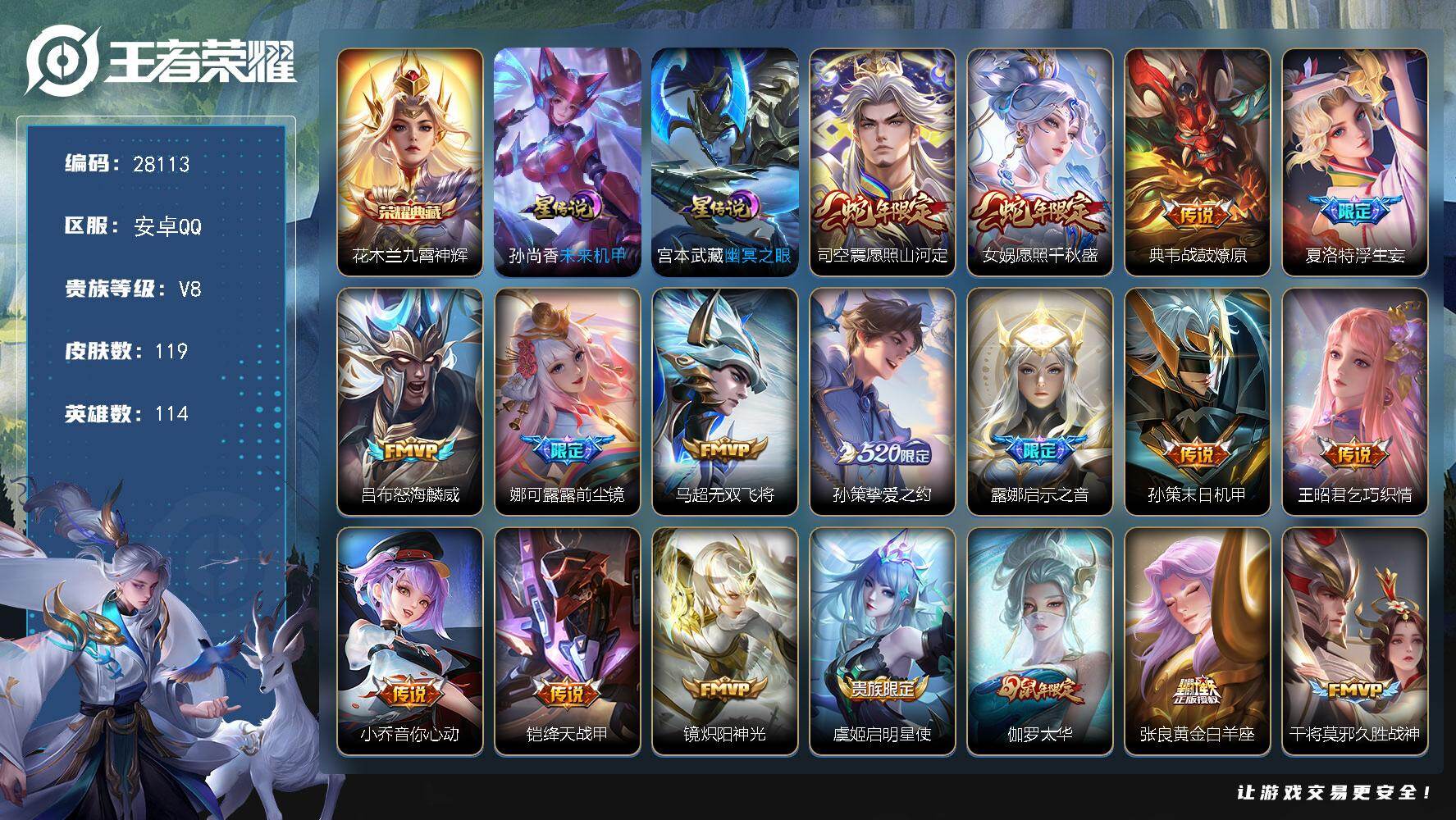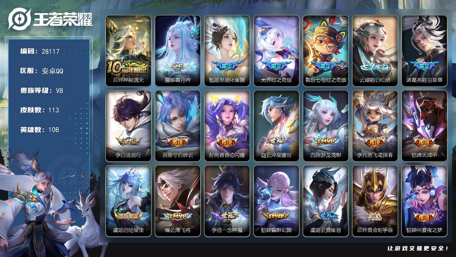 PX_2542725-可换绑【高性价比多传说号·甄姬至美·鲁班大乔时之奇旅·鹤归松栖·鹤羽星尊·岱宗·引擎之心】,21按键,1王者印记,70五级铭文,无二次安卓Q-V8-113皮肤-23传说-35史诗【英雄全皮】:孙权全皮【传说皮肤】:后羿神树通天,露娜霜月吟,甄姬至美化雀舞,大乔时之奇旅,鲁班七号时之奇旅,云缨鹤归松栖,诸葛亮鹤羽星尊,李白诗剑行,百里守约碎云,孙尚香音你闪耀,赵云淬星耀世,西施游龙清影,李元芳飞鸢探春,铠绛天战甲,虞姬启明星使,曜云鹰飞将,李信一念神魔,貂蝉猫影幻舞,虞姬云霓雀翎,后羿黄金射手座,貂蝉仲夏夜之梦,宫本武藏地狱之眼,孙悟空地狱火【限定皮肤】:狄仁杰阴阳师,赵云皇家上将,赵云引擎之心,孙尚香蔷薇恋人,鲁班七号时之奇旅,甄姬至美化雀舞,典韦岱宗,狄仁杰魔术师,项羽海滩派对,亚瑟潮玩骑士王,李元芳匿光侦查者,虞姬启明星使,杨戬潮玩骑兵,诸葛亮鹤羽星尊,大乔时之奇旅,明世隐疑决卦,嫦娥拒霜思,西施玲珑珍味,西施至美乘鲤谣,鲁班大师探海日志,戈娅驭风魔法,艾琳流音漫舞,赵怀真鹤归松栖,云缨鹤归松栖,阿古朵江河有灵,张良古海寻踪,蒙犽百解令,刘邦剑破天穹【年限皮肤】:典韦岱宗【赛季限定】:明世隐疑决卦,鲁班大师探海日志,张良古海寻踪,刘邦剑破天穹,甄姬逆浪荇歌,亚瑟荣光之誓【战令限定】:亚瑟潮玩骑士王,杨戬潮玩骑兵,戈娅驭风魔法,西施玲珑珍味,艾琳流音漫舞,周瑜线条小狗,小乔线条小狗【史诗皮肤】:周瑜线条小狗,小乔线条小狗,西施织梦人,黄忠百相守梦,狂铁龙之律动,蒙犽百解令,西施至美乘鲤谣,阿古朵江河有灵,李元芳匿光侦查者,赵怀真鹤归松栖,戈娅驭风魔法,貂蝉唤灵魅影,嫦娥拒霜思,典韦岱宗,狄仁杰鹰眼统帅,阿轲节奏热浪,铠曙光守护者,百里守约特工魅影,雅典娜冰冠公主,兰陵王暗隐猎兽者,小乔缤纷独角兽,赵云引擎之心,韩信白龙吟,张飞乱世虎臣,李白千年之狐,曹操幽灵船长,刘禅绅士熊喵,吕布圣诞狂欢,墨子金属风暴,妲己魅力维加斯,嬴政摇滚巨星,孙尚香蔷薇恋人,宫本武藏鬼剑武藏,狄仁杰魔术师,甄姬冰雪圆舞曲,赵云皇家上将【其他皮肤】:影百相守梦,兰陵王雾影缉谜,艾琳鹤鸣心笺,孙权径山谋武,亚瑟荣光之誓,鬼谷子克喵,莱西奥踏浪烽翎,云中君云械蓝图,甄姬逆浪荇歌,刘邦剑破天穹,张良古海寻踪,艾琳流音漫舞,李元芳妄想特派,西施玲珑珍味,鲁班大师探海日志,杨戬潮玩骑兵,张良缤纷绘卷,露娜瓷语鉴心,亚瑟潮玩骑士王,狂铁特工战影,明世隐疑决卦,沈梦溪鲨炮海盗猫,吕布野性能量,小乔丁香结,明世隐虹云星官,诸葛亮掌控之力,狄仁杰阴阳师,宫本武藏万象初新,花木兰兔女郎,亚瑟死亡骑士,典韦黄金武士,妲己少女阿狸,宫本武藏未来纪元,白起白色死神,芈月红桃皇后,赵云忍炎影,赵云白执事,阿轲爱心护理,韩信街头霸王,韩信教廷特使,项羽海滩派对,司空震启蛰,盘古创世神祝,猪八戒年年有余,弈星踏雪寻梅,杨玉环霓裳曲,公孙离花间舞,百里玄策威尼斯狂欢,黄忠芝加哥教父,关羽天启骑士,后羿精灵王,狄仁杰锦衣卫,项羽帝国元帅,鲁班七号福禄兄弟