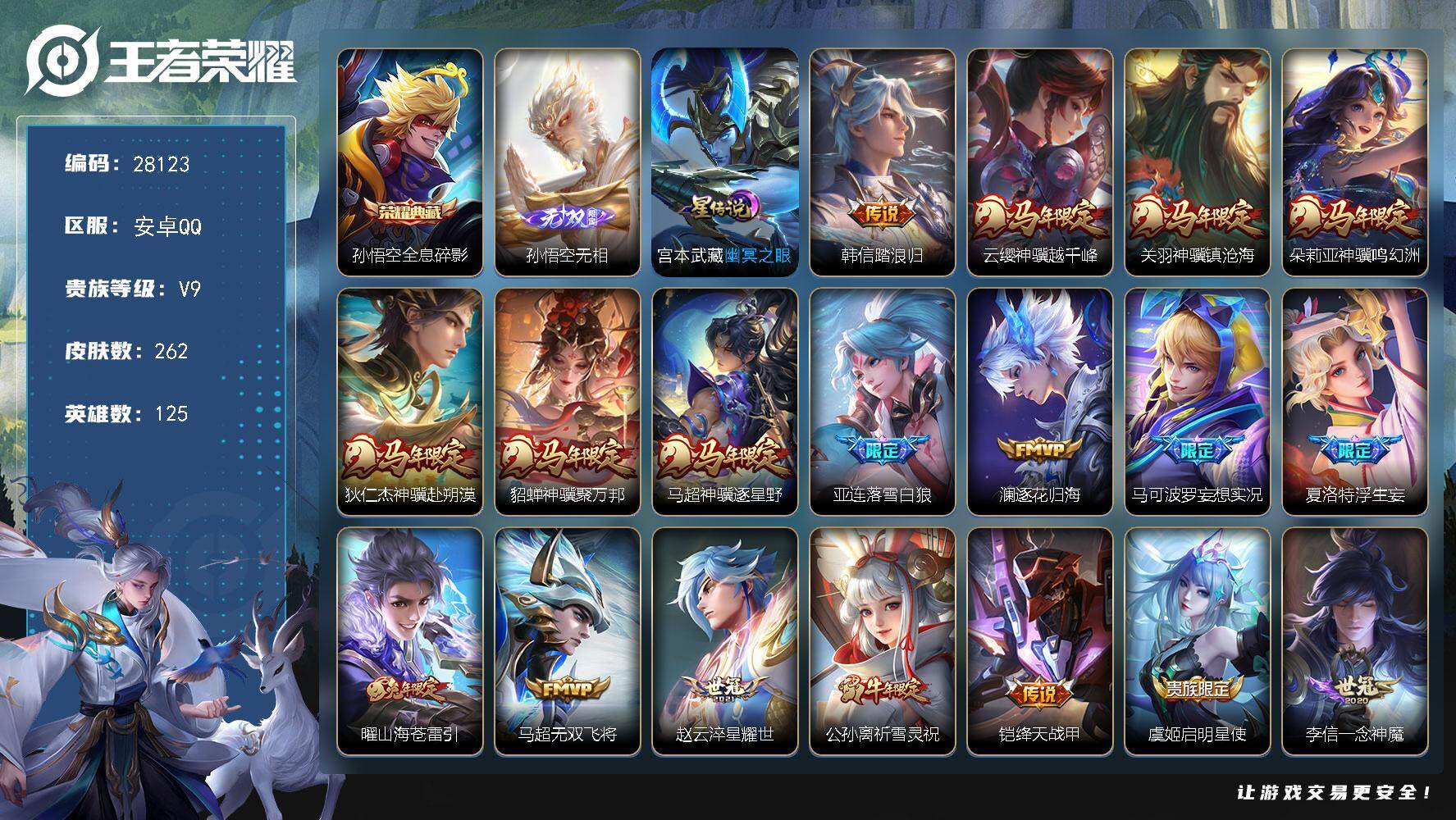 PX_2546866-可换绑【精品高质量v9号·小国司空震·15生肖限定·马年全套·典藏孙悟空·无双孙悟空·武陵仙君·凤求凰·白虎志·神奇女侠·后羿狗年·贵族积分15w】,226幸运值,7按键,1星传说,4王者印记,240五级铭文,无二次安卓Q-V9-262皮肤-1典藏皮肤-1无双-34传说-94史诗【英雄全皮】:孙权全皮,敖隐全皮,影全皮【荣耀典藏】:孙悟空全息碎影【无双皮肤】:孙悟空无相【小国标】:小国标司空震【星元皮肤】:宫本武藏幽冥之眼【传说皮肤】:韩信踏浪归,云缨神骥越千峰,关羽神骥镇沧海,朵莉亚神骥鸣幻洲,狄仁杰神骥赴朔漠,貂蝉神骥聚万邦,马超神骥逐星野,亚连落雪白狼,澜逐花归海,马可波罗妄想实况,夏洛特浮生妄,曜山海苍雷引,马超无双飞将,赵云淬星耀世,公孙离祈雪灵祝,铠绛天战甲,虞姬启明星使,李信一念神魔,刘备时之恋人,张良黄金白羊座,干将莫邪久胜战神,虞姬云霓雀翎,达摩黄金狮子座,百里玄策白虎志,梦奇胖达荣荣,后羿黄金射手座,杨戬永曜之星,诸葛亮武陵仙君,貂蝉仲夏夜之梦,李白凤求凰,孙尚香末日机甲,宫本武藏地狱之眼,孙悟空地狱火,狄仁杰超时空战士【限定皮肤】:狄仁杰阴阳师,赵云皇家上将,赵云龙胆,墨子神迹守卫,鲁班七号狮舞东方,鲁班七号乒乒小将,庄周玄嵩,阿轲迷踪丽影,周瑜赤莲之焰,元歌云间偶戏,元歌无心,夏侯惇朔风刀,典韦岱宗,马可波罗逐梦之星,马可波罗暗影游猎,马可波罗妄想实况,狄仁杰魔术师,狄仁杰万华元夜,达摩星际陆战队,项羽海滩派对,项羽霸王别姬,老夫子醍醐杖,老夫子航海奇遇记,关羽冰锋战神,程咬金演武夺筹,刘邦夺宝奇兵,王昭君凤凰于飞,兰陵王驯魔猎人,亚瑟潮玩骑士王,孙悟空至尊宝,牛魔御旌,后羿辉光之辰,张飞虎魄,李元芳银河之约,虞姬霸王别姬,虞姬启明星使,钟馗神迹守卫,钟馗驱傩正仪,杨戬永曜之星,女娲朔望之晖,干将莫邪冰霜恋舞曲,干将莫邪胡桃夹子,雅典娜单词大作战,蔡文姬繁星吟游,东皇太一逐梦之光,鬼谷子原初探秘者,诸葛亮武陵仙君,黄忠烈魂,百里玄策白虎志,弈星混沌棋,公孙离蜜橘之夏,公孙离祈雪灵祝,沈梦溪星空之诺,明世隐疑决卦,裴擒虎李小龙,米莱狄胡桃异想国,云中君纤云弄巧,伽罗天狼溯光者,盾山御銮,猪八戒西部大镖客,上官婉儿梁祝,上官婉儿天狼绘梦者,曜山海苍雷引,蒙犽狂想玩偶喵,夏洛特浮生妄,蒙犽百解令,亚连落雪白狼,海诺心动手记【年限皮肤】:王昭君凤凰于飞,李白凤求凰,杨戬永曜之星,后羿辉光之辰,百里玄策白虎志,庄周玄嵩,典韦岱宗,公孙离祈雪灵祝,曜山海苍雷引【赛季限定】:牛魔御旌,盾山御銮,夏侯惇朔风刀,弈星混沌棋,明世隐疑决卦,老夫子醍醐杖,鬼谷子原初探秘者,狄仁杰万华元夜,程咬金演武夺筹,钟馗驱傩正仪,甄姬逆浪荇歌,亚瑟荣光之誓【战令限定】:女娲朔望之晖,鲁班七号狮舞东方,钟馗神迹守卫,兰陵王驯魔猎人,周瑜赤莲之焰,李元芳银河之约,沈梦溪星空之诺,阿轲迷踪丽影,刘邦夺宝奇兵,马可波罗暗影游猎,猪八戒西部大镖客,蒙犽狂想玩偶喵,雅典娜单词大作战,元歌云间偶戏,亚瑟潮玩骑士王,米莱狄胡桃异想国,达摩星际陆战队,老夫子航海奇遇记,墨子神迹守卫,周瑜百相守梦,孙策百相守梦,兰陵王傩神司,莱西奥光弋星穹,明世隐往忆晖光,周瑜线条小狗,小乔线条小狗【史诗皮肤】:太乙真人瓦猫非猫,明世隐百晓客,盘古撼世英歌,周瑜线条小狗,小乔线条小狗,女娲万灵启世,兰陵王傩神司,莱西奥光弋星穹,周瑜百相守梦,狂铁龙之律动,姬小满飞车小橘子,马可波罗星界特工,海诺心动手记,蒙犽百解令,元歌无心,高渐离天秀音浪,司马懿暗渊魔法,杨戬天秀启明,鲁班七号乒乒小将,伽罗天狼溯光者,老夫子航海奇遇记,米莱狄胡桃异想国,元歌云间偶戏,云中君纤云弄巧,裴擒虎李小龙,蒙犽狂想玩偶喵,张飞虎魄,马可波罗暗影游猎,上官婉儿天狼绘梦者,孙尚香时之恋人,黄忠烈魂,赵云龙胆,橘右京修罗,阿轲迷踪丽影,不知火舞魅语,庄周玄嵩,典韦岱宗,娜可露露晚萤,李元芳银河之约,蔡文姬繁星吟游,上官婉儿梁祝,兰陵王驯魔猎人,公孙离无限星赏官,狄仁杰鹰眼统帅,鲁班七号狮舞东方,伽罗箭羽风息,干将莫邪冰霜恋舞曲,大乔猫狗日记,孙策猫狗日记,东皇太一逐梦之光,阿轲节奏热浪,白起星夜王子,程咬金功夫厨神,李元芳逐浪之夏,公孙离蜜橘之夏,刘禅天才门将,铠曙光守护者,百里守约特工魅影,后羿辉光之辰,安琪拉心灵骇客,雅典娜冰冠公主,亚瑟心灵战警,马可波罗逐梦之星,诸葛亮黄金分割率,兰陵王暗隐猎兽者,夏侯惇乘风破浪,刘邦德古拉伯爵,花木兰水晶猎龙者,孙悟空至尊宝,王昭君凤凰于飞,关羽冰锋战神,虞姬霸王别姬,项羽霸王别姬,韩信白龙吟,张飞乱世虎臣,吕布末日机甲,李白千年之狐,曹操幽灵船长,刘禅绅士熊喵,吕布圣诞狂欢,墨子金属风暴,墨子龙骑士,妲己魅力维加斯,嬴政摇滚巨星,嬴政暗夜贵公子,孙尚香水果甜心,宫本武藏鬼剑武藏,廉颇地狱岩魂,狄仁杰魔术师,王昭君偶像歌手,甄姬冰雪圆舞曲,赵云皇家上将,露娜紫霞仙子,项羽苍穹之光,鲁班七号电玩小子【其他皮肤】:影百相守梦,吕布舞狮寰,妲己线条小狗,桑启线条小狗,蒙恬苍云破阵,安琪拉糖果风暴,虞姬溯影追猎,蚩奼极光幻客,艾琳鹤鸣心笺,孙权径山谋武,张良罗小黑战记,明世隐往忆晖光,亚瑟荣光之誓,哪吒罗小黑战记,莱西奥踏浪烽翎,高渐离落日弦歌,孙策百相守梦,云中君云械蓝