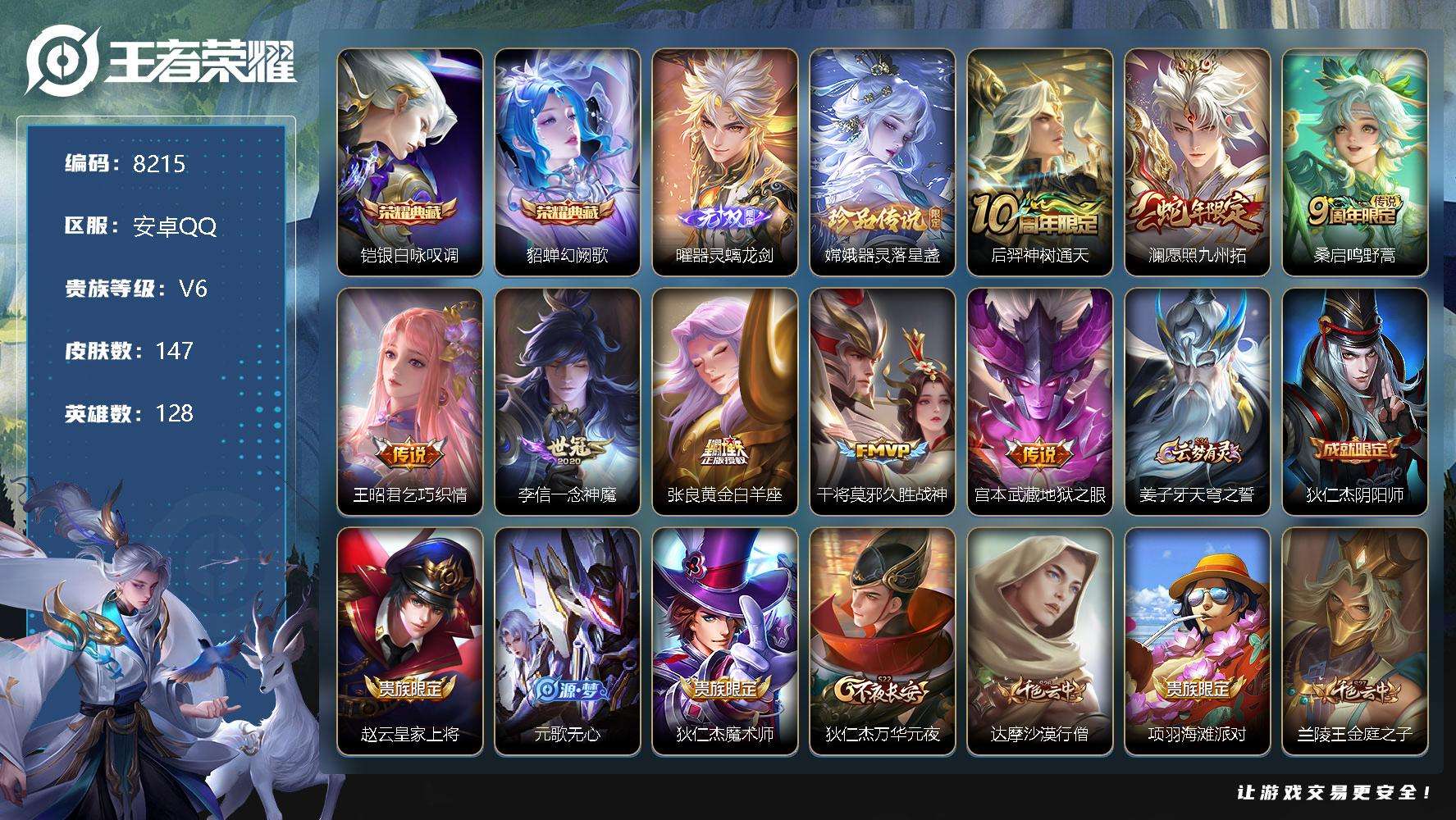 PX_2542610-可换绑,【高质量精品号·典藏花木兰·蛇限女娲司空震·浮生妄·前尘镜·520限定孙策·启示之音·太华·岱宗·】按键,2星传说,7王者印记,五级铭文100,无二次,安卓Q-V8-119皮肤-1典藏皮肤-22传说-52史诗【英雄全皮】:娜可露露全皮,夏洛特全皮,影全皮【荣耀典藏】:花木兰九霄神辉【星元皮肤】:宫本武藏幽冥之眼,孙尚香未来机甲【传说皮肤】:司空震愿照山河定,女娲愿照千秋盛,典韦战鼓燎原,夏洛特浮生妄,吕布怒海麟威,娜可露露前尘镜,马超无双飞将,孙策挚爱之约,露娜启示之音,孙策末日机甲,王昭君乞巧织情,小乔音你心动,铠绛天战甲,镜炽阳神光,虞姬启明星使,伽罗太华,张良黄金白羊座,干将莫邪久胜战神,虞姬云霓雀翎,达摩黄金狮子座,孙尚香末日机甲,宫本武藏地狱之眼【限定皮肤】:蔡文姬夏日便利店,虞姬夏日便利店,姜子牙天穹之誓,狄仁杰阴阳师,赵云皇家上将,钟无艳王者之锤,典韦岱宗,狄仁杰魔术师,项羽海滩派对,露娜启示之音,娜可露露前尘镜,虞姬启明星使,明世隐吟游魔法,伽罗太华,盾山梦圆繁星,孙策挚爱之约,上官婉儿神器万象笔,鲁班大师探海日志,夏洛特浮生妄,张良古海寻踪,高渐离燃音魔法,鬼谷子天穹祈灯,刘邦剑破天穹,镜青焰无极,项羽苍威无极,芈月浮光幕影【年限皮肤】:伽罗太华,典韦岱宗,司空震愿照山河定,女娲愿照千秋盛【赛季限定】:鲁班大师探海日志,张良古海寻踪,鬼谷子天穹祈灯,刘邦剑破天穹,姜子牙天穹之誓,牛魔星界战将,项羽九幽镇关【战令限定】:明世隐吟游魔法,高渐离燃音魔法,镜青焰无极,项羽苍威无极,蔡文姬夏日便利店,虞姬夏日便利店,亚连破空之剑,廉颇撼地雄心,孙悟空神迹守卫,孙膑茶境仙,马超访茗客,周瑜线条小狗,小乔线条小狗【史诗皮肤】:周瑜线条小狗,小乔线条小狗,项羽九幽镇关,百里玄策罗小黑战记,狂铁龙之律动,阿轲化蝶舞,白起苍鳞隐世,姬小满飞车小橘子,孙膑茶境仙,牛魔星界战将,亚连破空之剑,廉颇撼地雄心,姬小满战舞者,蔡文姬夏日便利店,芈月浮光幕影,镜青焰无极,高渐离燃音魔法,杨玉环银翎春语,上官婉儿神器万象笔,盾山梦圆繁星,明世隐吟游魔法,澜赏金猎手,夏洛特永昼,钟馗乐园奇幻夜,孙尚香时之恋人,橘右京修罗,典韦岱宗,娜可露露晚萤,狄仁杰鹰眼统帅,大乔猫狗日记,李元芳逐浪之夏,刘禅天才门将,百里守约特工魅影,亚瑟心灵战警,兰陵王暗隐猎兽者,夏侯惇乘风破浪,花木兰水晶猎龙者,张飞乱世虎臣,曹操幽灵船长,刘禅绅士熊喵,墨子金属风暴,妲己女仆咖啡,妲己魅力维加斯,孙尚香水果甜心,宫本武藏鬼剑武藏,廉颇地狱岩魂,狄仁杰魔术师,王昭君偶像歌手,甄姬冰雪圆舞曲,赵云未来纪元,赵云皇家上将,钟无艳王者之锤,鲁班七号电玩小子【其他皮肤】:影百相守梦,蒙恬苍云破阵,安琪拉糖果风暴,虞姬溯影追猎,影魅影绮裳,马超访茗客,孙悟空神迹守卫,虞姬夏日便利店,姜子牙天穹之誓,项羽苍威无极,刘邦剑破天穹,鬼谷子天穹祈灯,后羿完美运算,张良古海寻踪,姬小满零食大作战,鲁班大师探海日志,鲁班大师乓乓大师,哪吒次元突破,小乔丁香结,诸葛亮掌控之力,老夫子功夫老勺,狂铁命运角斗场,狄仁杰阴阳师,刘备万事如意,花木兰兔女郎,亚瑟死亡骑士,典韦黄金武士,姜子牙时尚教父,露娜哥特玫瑰,韩信街头霸王,项羽海滩派对,金蝉前尘,云缨赤焰之缨,曜归虚梦演,猪八戒年年有余,李信灼热之刃,沈梦溪棒球奇才,孙策海之征途,元歌午夜歌剧院,百里玄策威尼斯狂欢,刘禅英喵野望,孙悟空西部大镖客,小乔万圣前夜