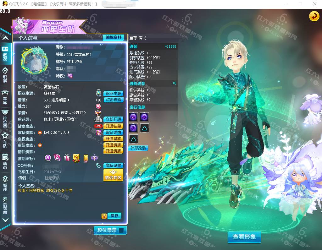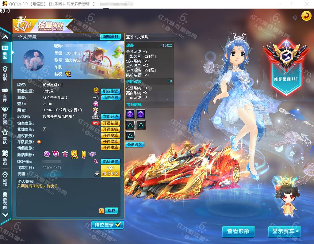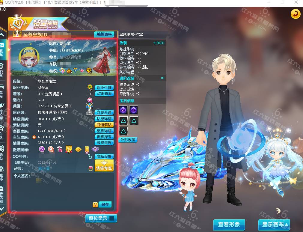 F15781,红六更号裙777584596【电信一区】红六自营,魅力5W,荣誉90w,紫钻3级,皇族3级,6S车:双四至尊玄冥/真武+29,单四至曜影虎/耀虎/X次元白虎+29,终极烈焰新星/孔明,超核玩家雷蛇,风之使者,赤道极光,T2:守护者,T1:圣剑骑士,无影之刃,超能英雄,A*11车:雷诺,HelloKitty,大圣雷诺,电玩雷诺,魔王雷诺,蓐收雷诺,地狱雷诺,骑宠2页:雪凝公主+9,超能大白+5,座椅*1,套装男6页:璀璨星芒/夜月流星/幻雪夕光,套装女9页:X次元白虎/山海碧波吟,15999R