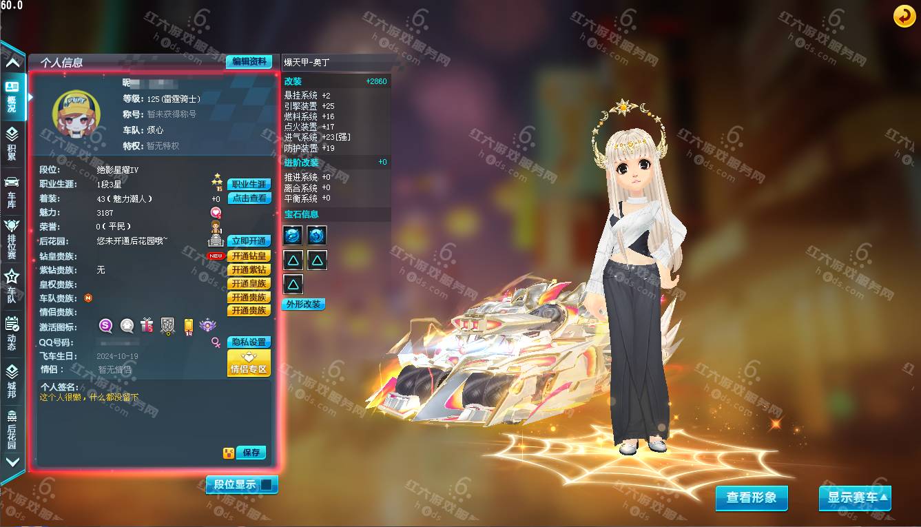 DS4161,红六更号裙762771576【电信一区】红六自营,魅力5.4w,荣誉807w,紫钻5级(2029年3月),皇族5级,19S车:首发228三四至臻爆天甲+29,三四至尊影龙/烛龙+29,双四至尊火麒麟/玉麒麟+29,至尊爆天甲/神奥丁+29,双四黑曼巴/饕鬄+29,高改爆天甲/曜影9阶/,终极爆天甲/刘备/逍遥+29,,至尊麦凯伦+29,极星之翼/芙蕾雅+29,中改阿尔法之芯/海姆达尔,终极麦凯伦/赵云/屠龙,众神之神/幽兰/麒麟4炫彩,暴风雪/极光/Remake,镇海之戟,5T2:墨影青龙/敖丙5阶+29,5T1,A车11页:天数雷诺/弑神/千机变+29,中改海神之戟/暗黑波塞冬,黄金/魔王/啸天/电玩雷诺,骑宠:甜心+10,齐天大圣+10,山海饕鬄,6座椅,套装女33页:烛龙弄焰/山海碧波吟/凌霄齐天/云茸茸/绮丽梦游发饰,套装男33页:苍穹麒麟/烛龙弄焰/山海碧波吟/凌霄齐天,44000R,
