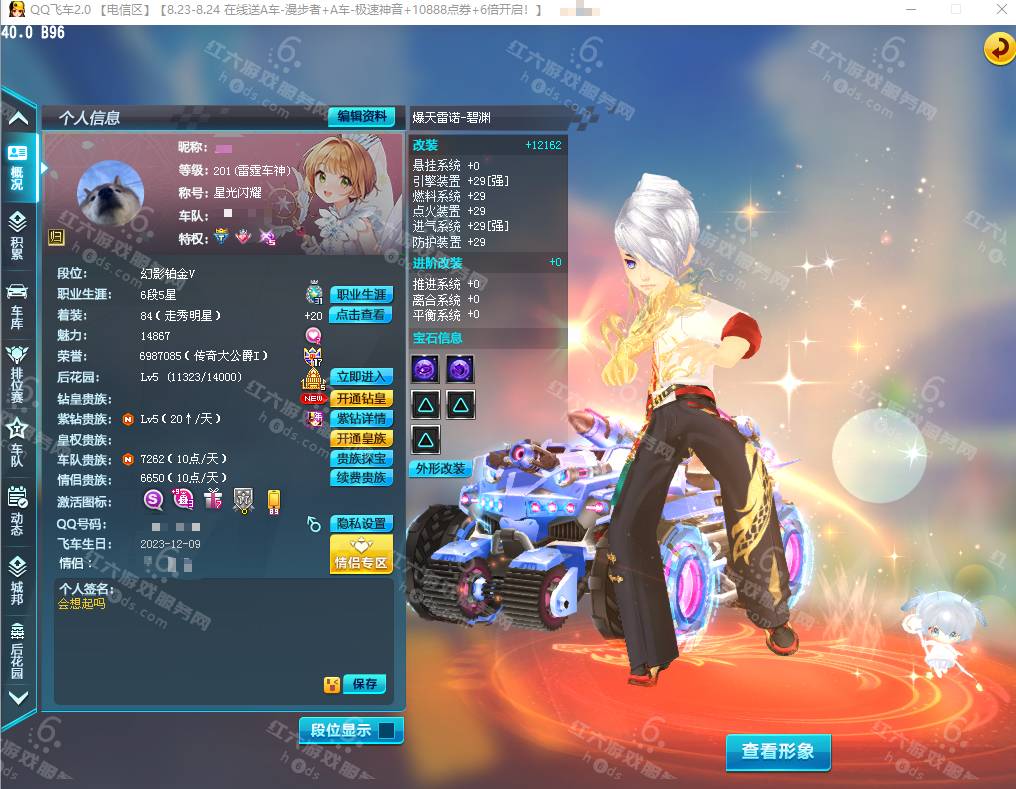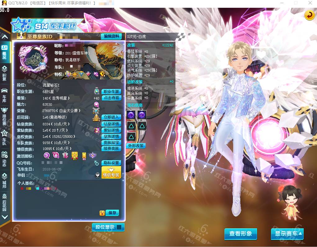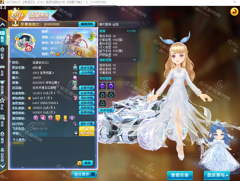 F15871,红六更号裙762771576【电信一区】红六自营,大天使翅膀男,魅力6.3W,荣誉276W,紫钻5,皇族6级,13S车:三四至尊玄冥+29,双四至曜影虎/X次元白虎+29,双四至尊火麒麟/玉麒麟+29,至尊影龙,暴风雪/极光1阶/Remake,爆天雷诺/黑金/冰蓝+29,终极针尖王者/马超,S白金剃刀/关羽/Remake,T1*5,37A车:黄金雷诺,庐山雷诺,HelloKitty,天数雷诺/幻夜3阶,先锋雷诺,骑宠5页:小贵妃+10,星河绘画师+10,座椅*7,套装男52页:天籁之声/苍穹麒麟/烛龙弄焰/夜月流星/赤焰战警/群星魔术团/凌霄齐天/璀璨星芒/绘梦天鹅/天降良缘/宫宴黑玫/炫彩金刚/白幻碟仙/圣烬红莲/星海祈愿发饰,套装女39页:沧海之心/赤焰战警/天籁之声/凌霄齐天/炫彩金刚/苍穹麒麟,男大天使翅膀/荣耀水晶2个,晶石11个,16999R,