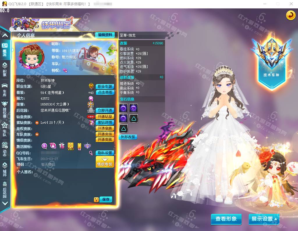 F15860,红六更号裙762771576【电信一区】,红六自营,魅力1.4W,荣誉698W,S车*1:双四爆天雷诺/碧渊+29,A车*9,骑宠4页:幻海之萤+9,座椅*2,套装男23页:龙之传人/炫彩金刚/微光幻蝶/童梦嘉年华,套装女19页:龙之传人/炫彩金刚/微光幻蝶/童梦嘉年华,2088R,